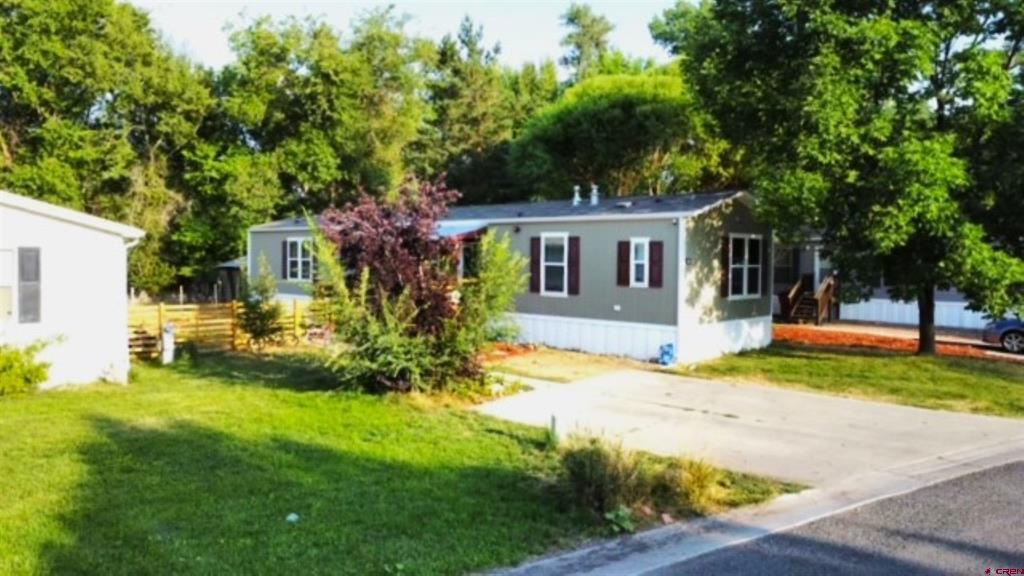 Welcome home to the lovely River Meadows community. This 2019 manufactured home is just adorable. Feels like stepping into a brand new home. Enjoy the lovely yard which backs up to Uncompahgre River with walking trails for you to enjoy. Great playground in the neighborhood and a community center that is available to the homeowners. There is a ton of mature trees for shade in the summer while you enjoy your outdoor activities. This home is in a prime location within the sudivision, no neighbors behind you, just a gorgeous river and wooded area and literally within a couple minutes to the Montrose Regional Airport. Location, location location and convenient easy living. Lot rent is currently $597.00. Hurry and schedule your showing today and let's make this your NextHome.