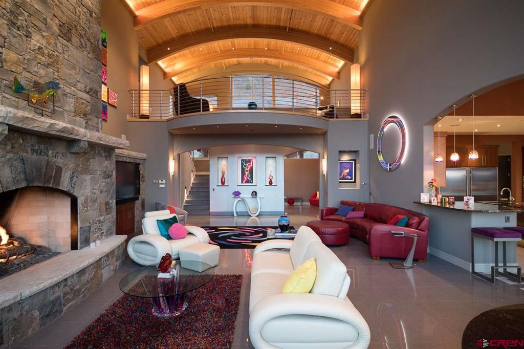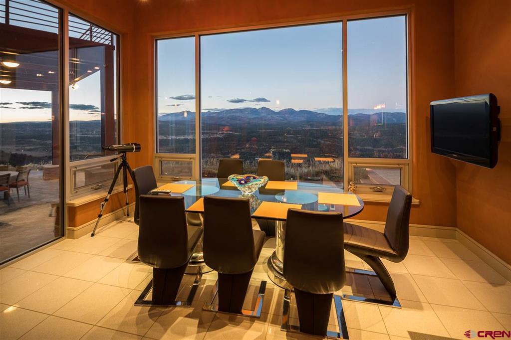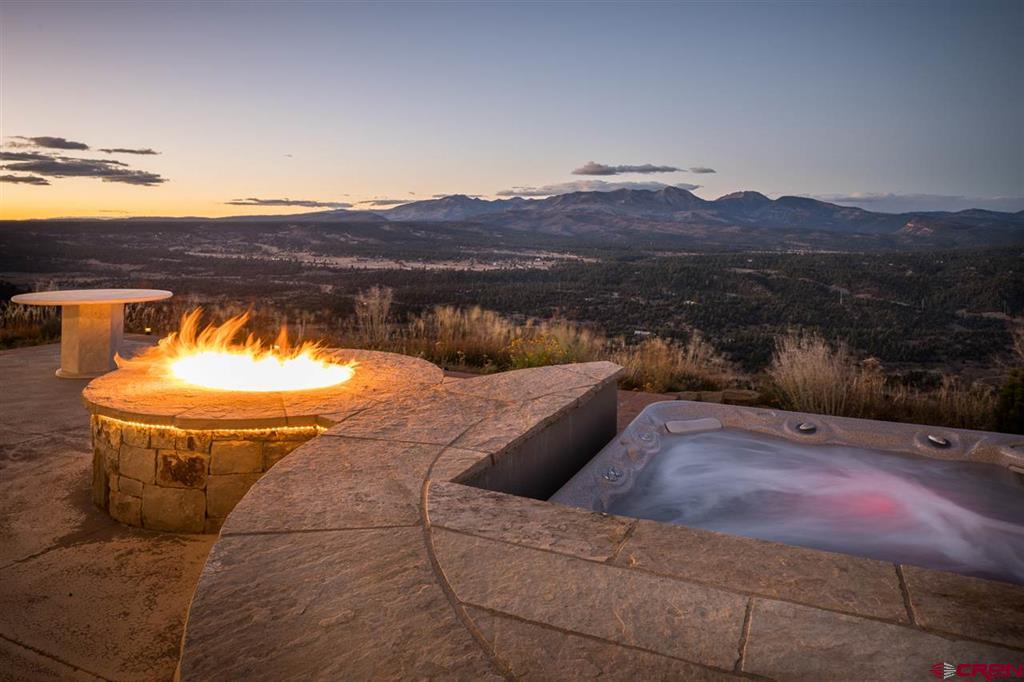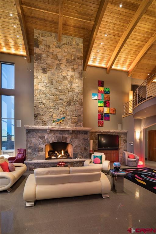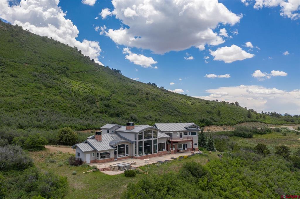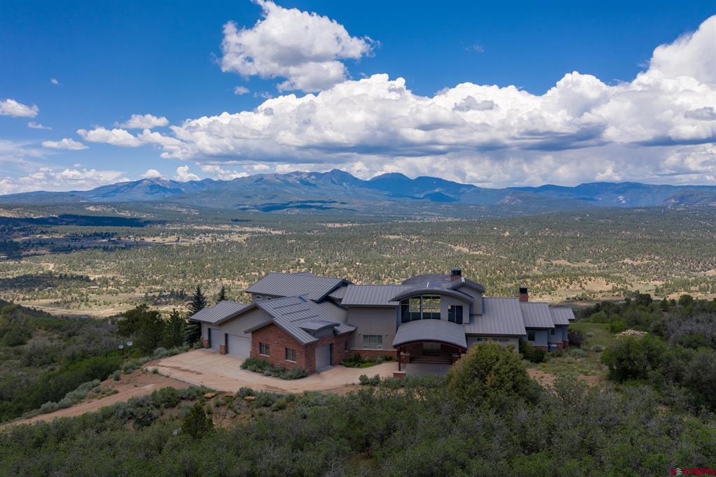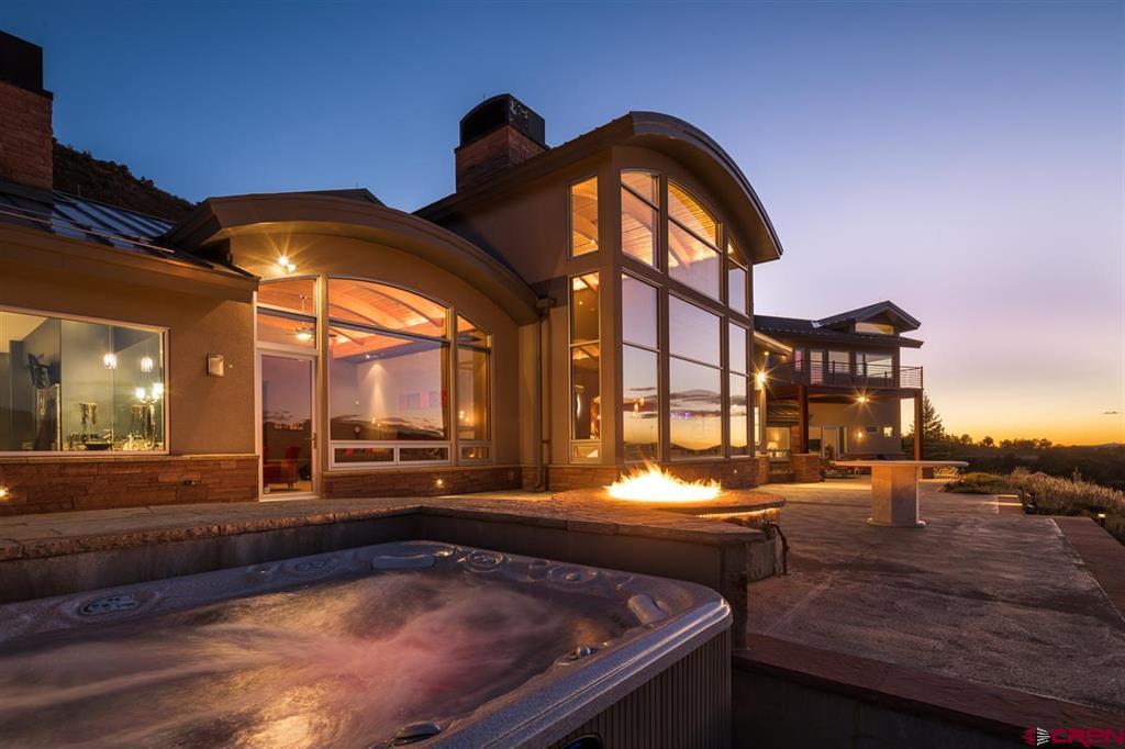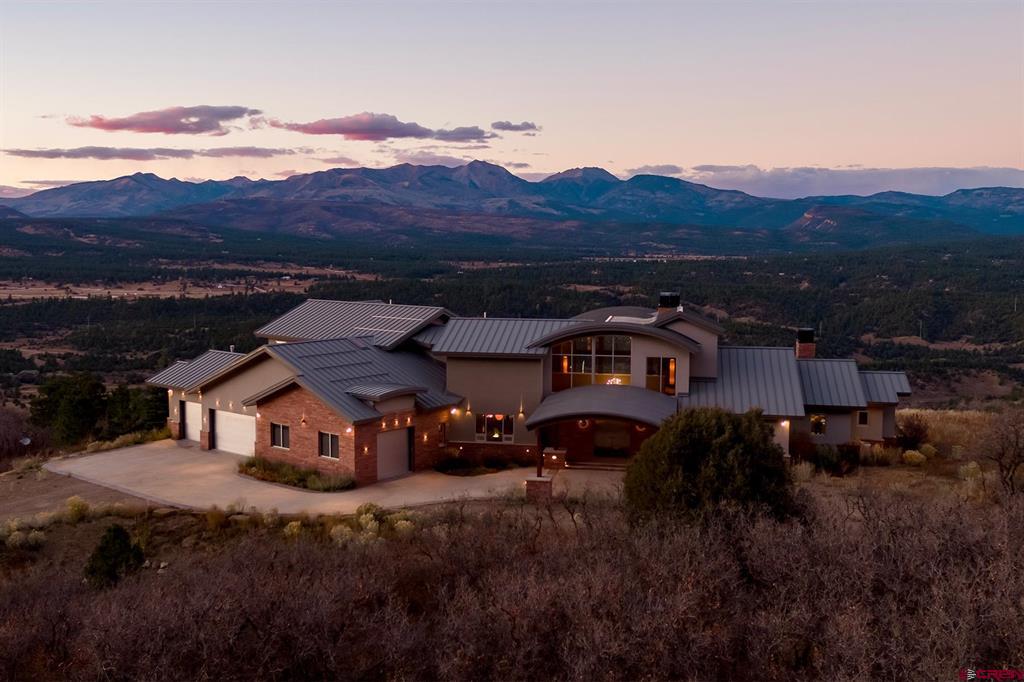 Stunning Colorado Mountain Contemporary sitting on an expansive 45.27 acres in the prestigious Estate at Trappers Crossing. Located minutes from downtown Durango, approximately 4 miles from lake Nighthorse and approximately 45 minutes to Purgatory Ski Resort. Built on a mountain step with breathtaking views of the La Plata Mountains, this 7,279 SF home exudes urban elegance with 5 bedrooms, 5.5 baths, multiple living areas, gym, study, media room, two master suites on the main floor, and a 4-car garage with high ceilings for sports and boating storage. The exterior boasts a stucco and Colorado natural stone façade, porte-cochere, balconies and terraces. The terrace off the great room is approximately 2,400 SF with a hot tub, built-in gas fire pit, and spectacular mountain views. The home features include sparkling Technistone and wood flooring, state of the art custom low voltage fiber optic lighting, beamed arched tongue-and-groove ceilings, standing seam metal roof, 5 gas fireplaces, 4-zone heating/air conditioning, and an elevator. HugesNet Gen5 satellite, for exceptional internet, large data and wifi speed.