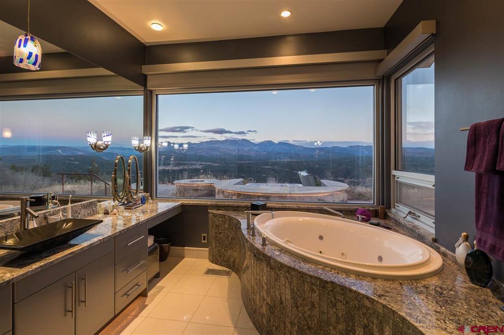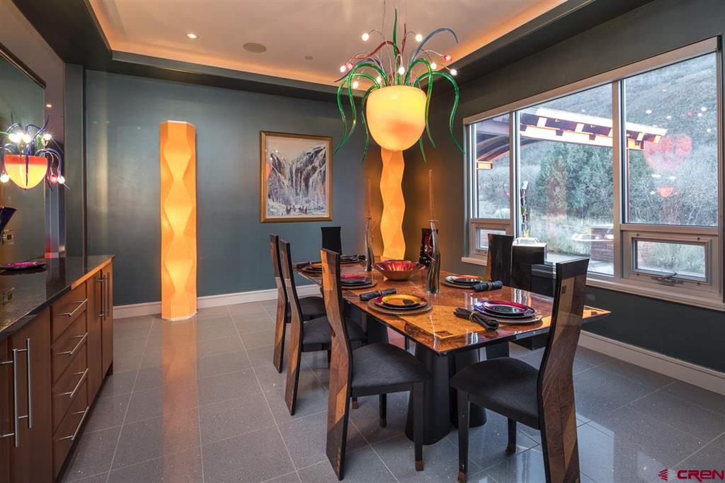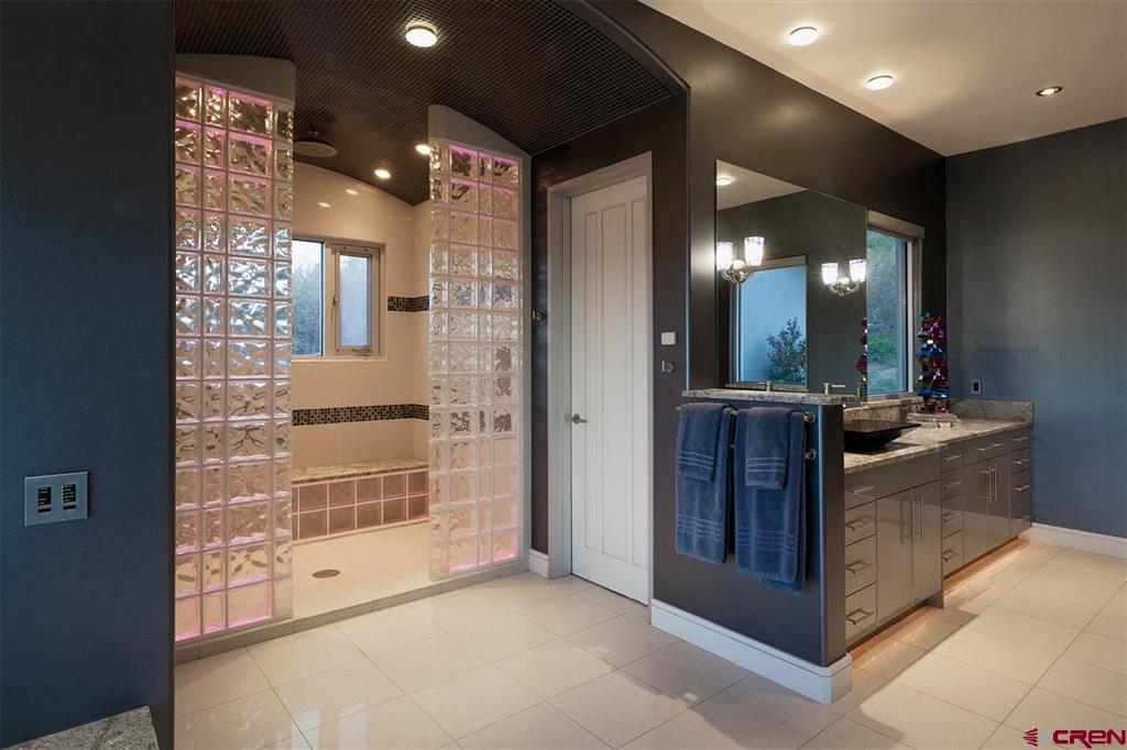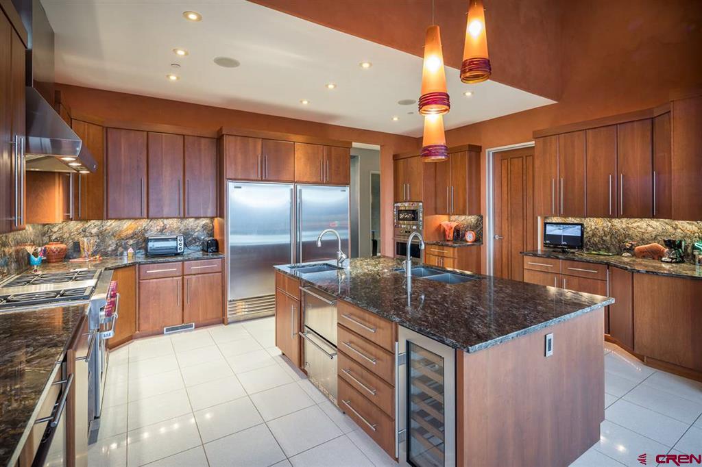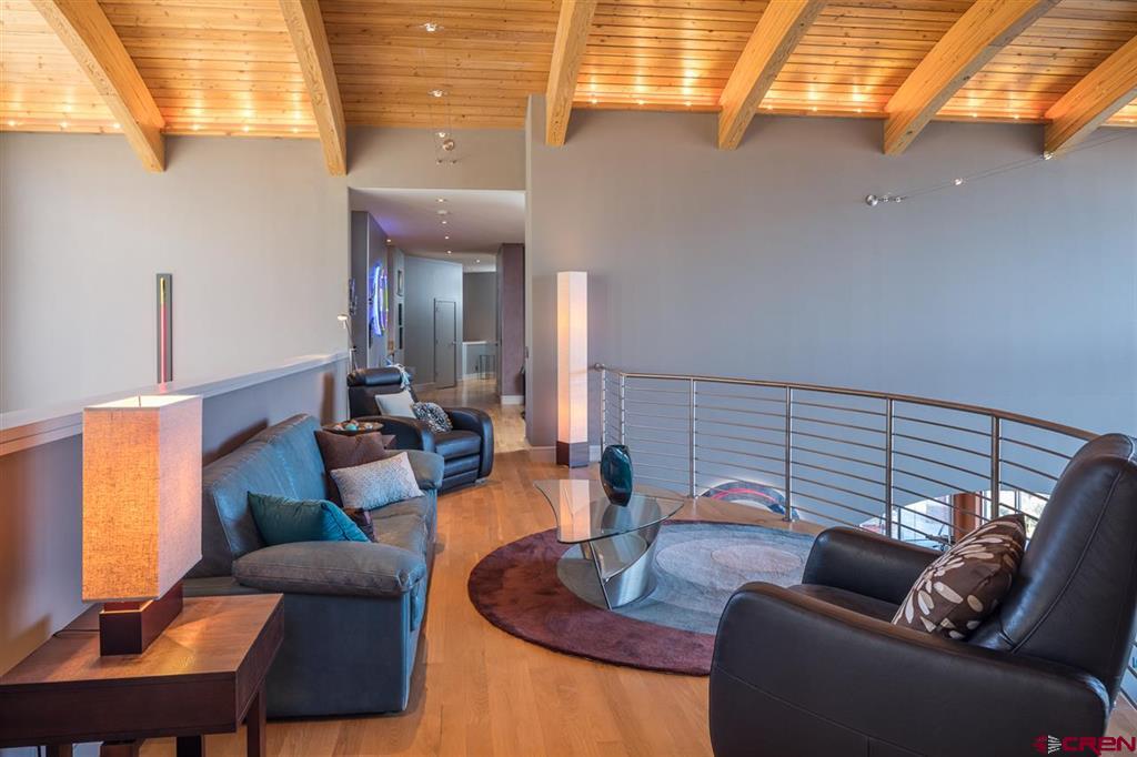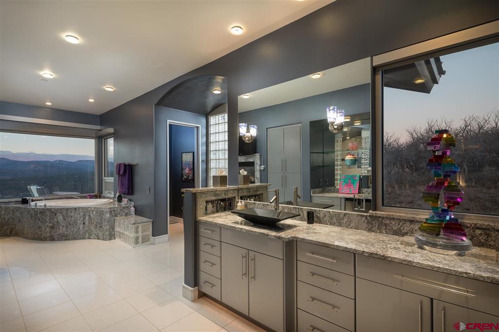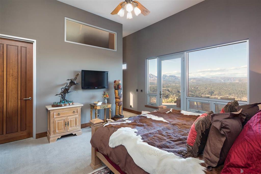 Stunning Colorado Mountain Contemporary sitting on an expansive 45.27 acres in the prestigious Estate at Trappers Crossing. Located minutes from downtown Durango, approximately 4 miles from lake Nighthorse and approximately 45 minutes to Purgatory Ski Resort. Built on a mountain step with breathtaking views of the La Plata Mountains, this 7,279 SF home exudes urban elegance with 5 bedrooms, 5.5 baths, multiple living areas, gym, study, media room, two master suites on the main floor, and a 4-car garage with high ceilings for sports and boating storage. The exterior boasts a stucco and Colorado natural stone façade, porte-cochere, balconies and terraces. The terrace off the great room is approximately 2,400 SF with a hot tub, built-in gas fire pit, and spectacular mountain views. The home features include sparkling Technistone and wood flooring, state of the art custom low voltage fiber optic lighting, beamed arched tongue-and-groove ceilings, standing seam metal roof, 5 gas fireplaces, 4-zone heating/air conditioning, and an elevator. HugesNet Gen5 satellite, for exceptional internet, large data and wifi speed.
