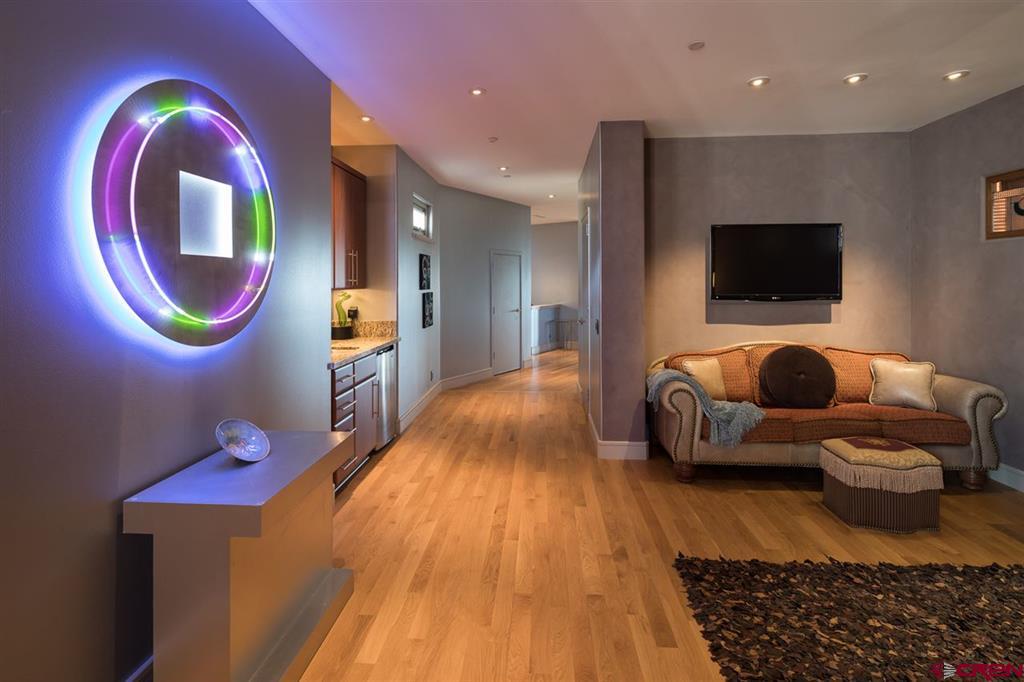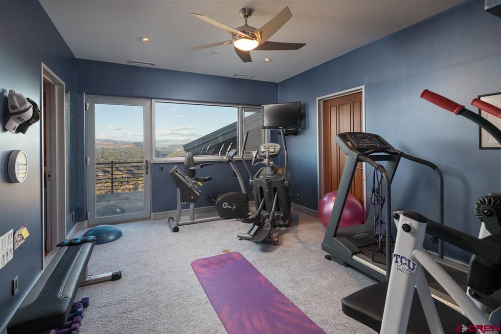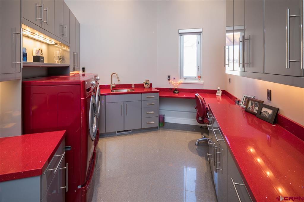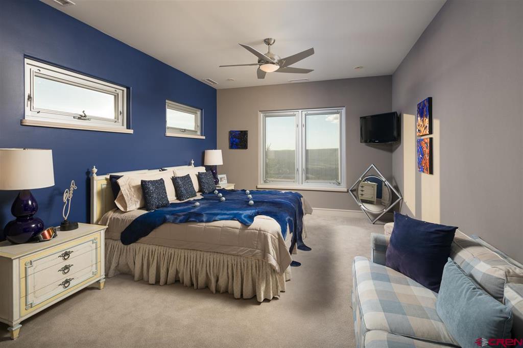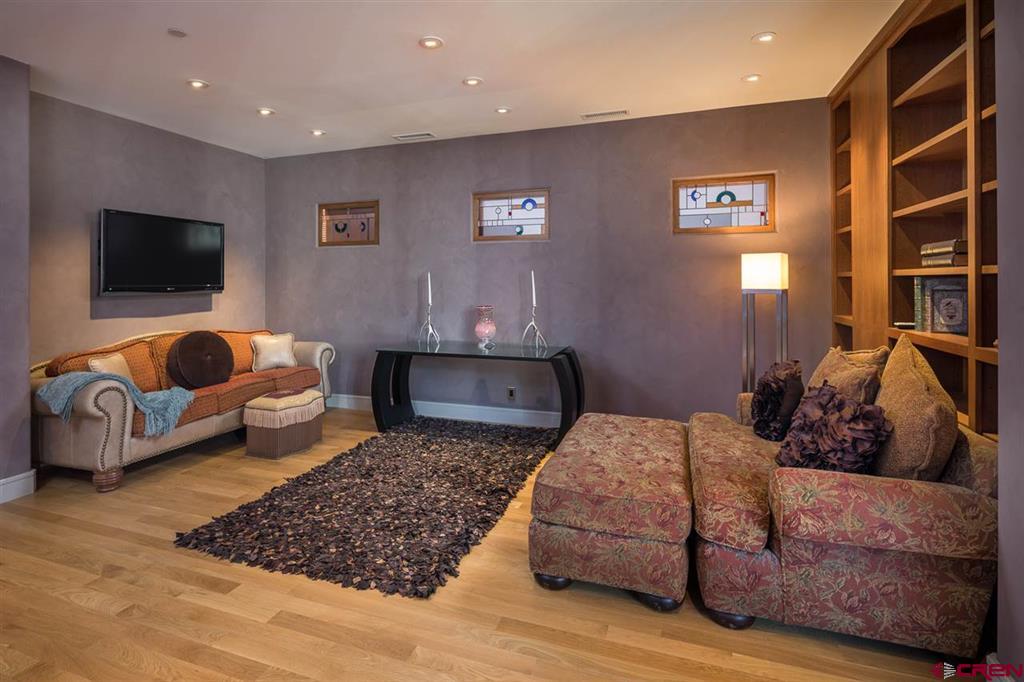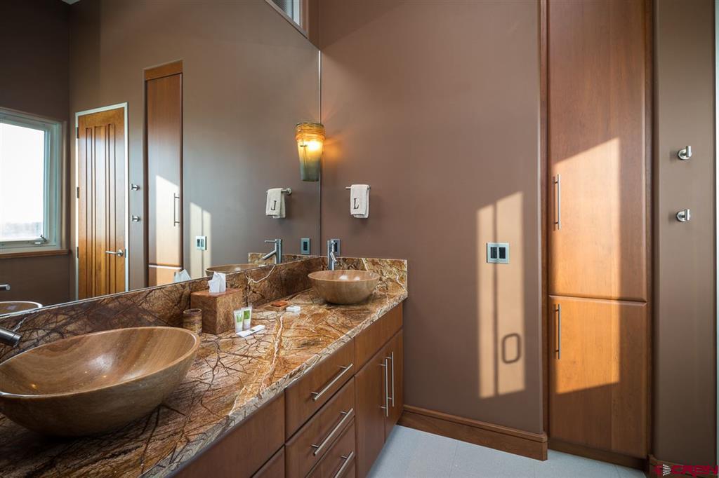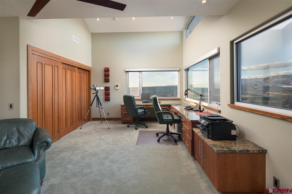 Stunning Colorado Mountain Contemporary sitting on an expansive 45.27 acres in the prestigious Estate at Trappers Crossing. Located minutes from downtown Durango, approximately 4 miles from lake Nighthorse and approximately 45 minutes to Purgatory Ski Resort. Built on a mountain step with breathtaking views of the La Plata Mountains, this 7,279 SF home exudes urban elegance with 5 bedrooms, 5.5 baths, multiple living areas, gym, study, media room, two master suites on the main floor, and a 4-car garage with high ceilings for sports and boating storage. The exterior boasts a stucco and Colorado natural stone façade, porte-cochere, balconies and terraces. The terrace off the great room is approximately 2,400 SF with a hot tub, built-in gas fire pit, and spectacular mountain views. The home features include sparkling Technistone and wood flooring, state of the art custom low voltage fiber optic lighting, beamed arched tongue-and-groove ceilings, standing seam metal roof, 5 gas fireplaces, 4-zone heating/air conditioning, and an elevator. HugesNet Gen5 satellite, for exceptional internet, large data and wifi speed.