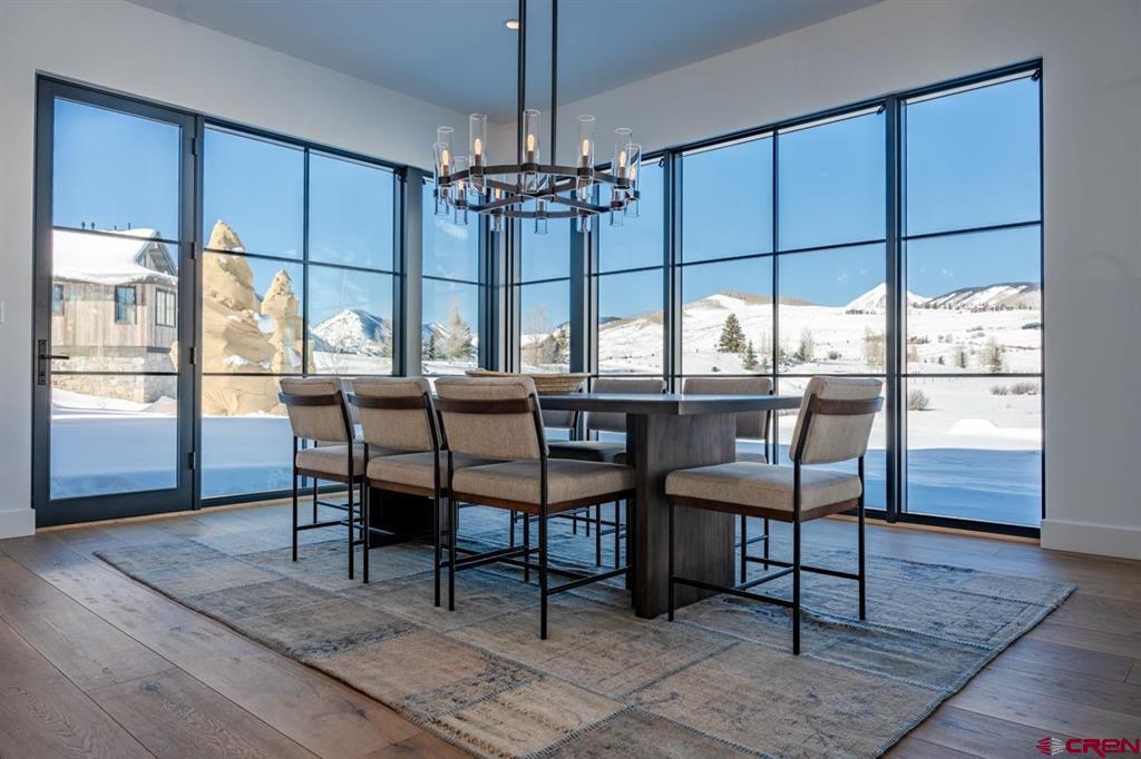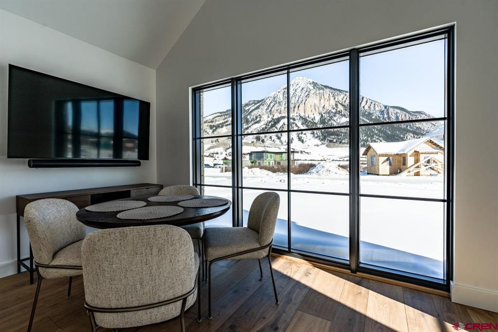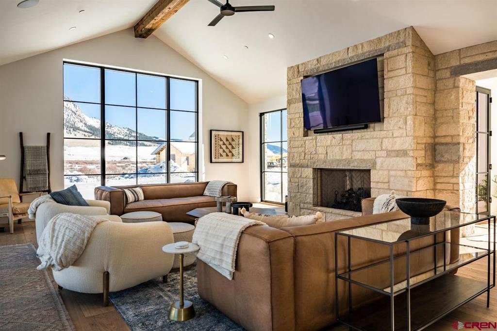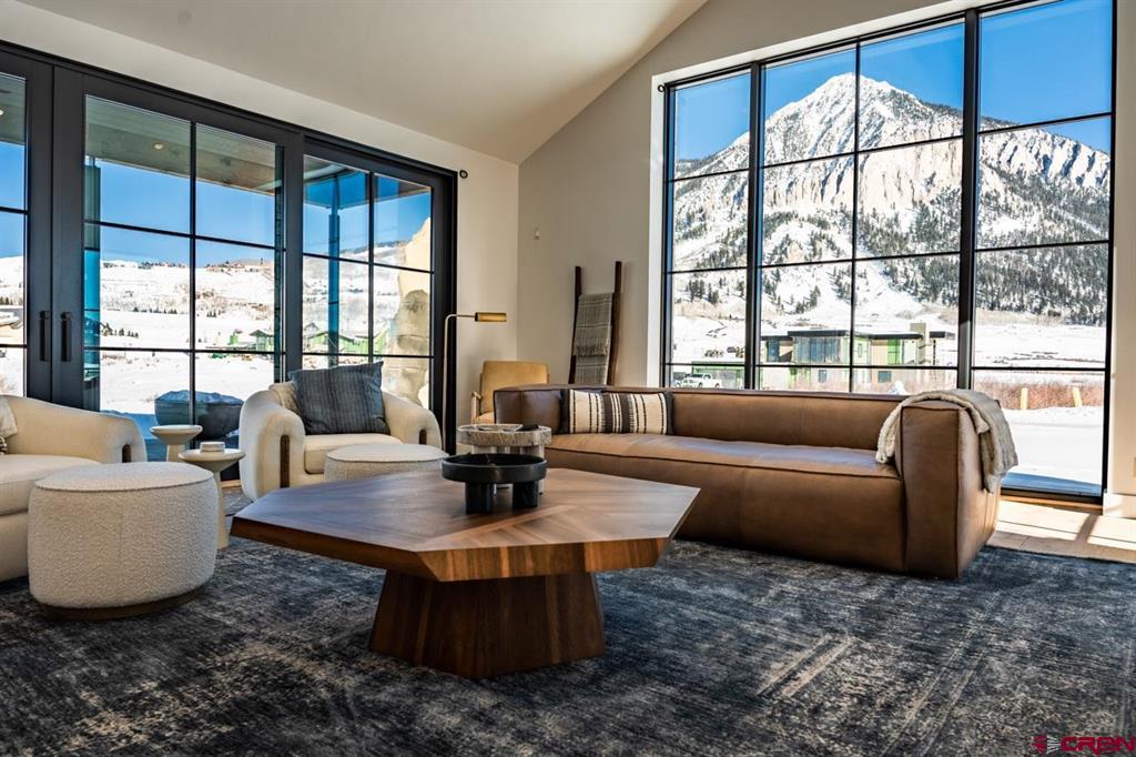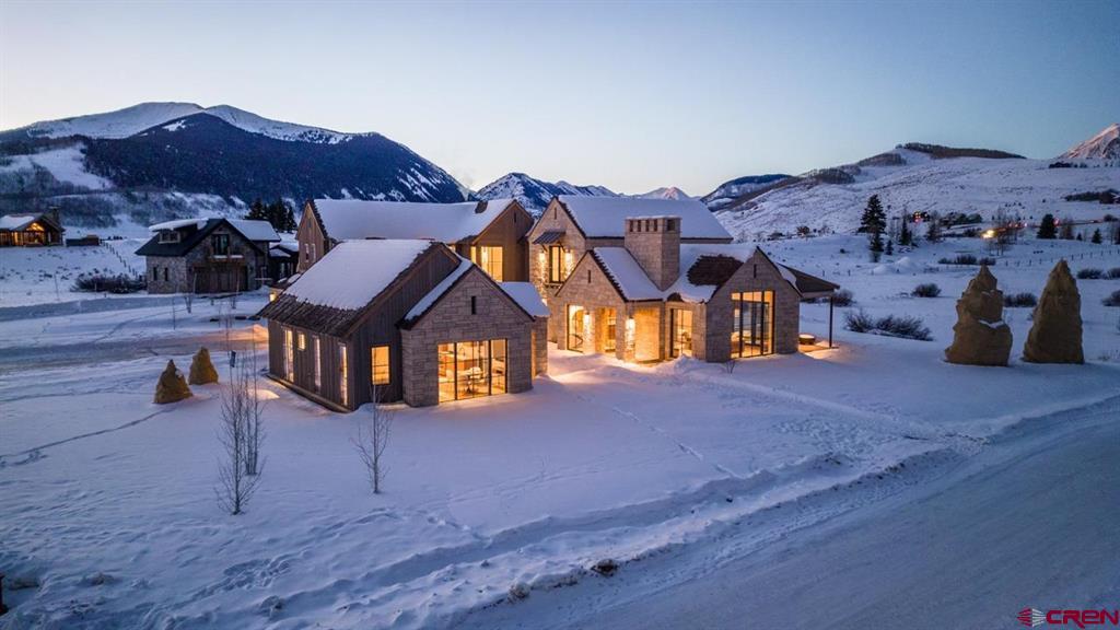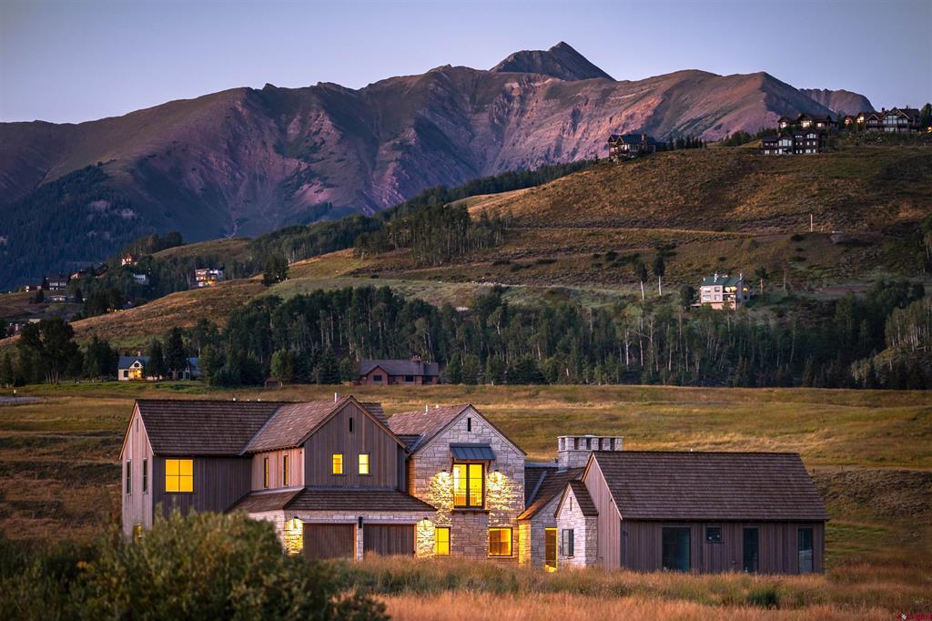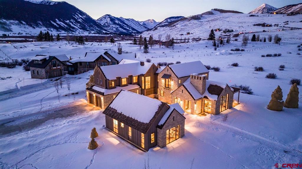 An amazing location at Aperture and adjacent to the historic town of Crested Butte, private Slate River access and stunning mountain views make this fully furnished mountain modern at 33 Aperture one of Crested Butte's finest offerings. Architected by SHM Architects with interior design by Niki O'Connor of CB Spaces and built by Michael Weil Custom Homes, the recently completed property comprises 5,393 SF and rests on a flat 1/2 acre parcel that sits against permanent open space. The main house enjoys a traditional floor plan with the kitchen, dining room, great room and the primary bedroom suite on the 1st floor. Upstairs there are three guest suites and a comfortable media room. The views from the upstairs suites are awesome too! The great room is anchored by a gorgeous floor-to-ceiling stone fireplace and features vaulted ceilings and picture windows that expertly capture the mountain views. When friends and family visit they will enjoy their own special retreat in the guest house. The guest house includes a vaulted living area with a picture frame view of Mt Crested Butte, a full kitchen and bath and a spacious bedroom. Throughout the property, designer lighting and hardware compliment the solid white oak doors, the white oak wide plank flooring, the Ann Sacks tile treatments and the Pete Peacock custom built cabinetry. Deborah Walker of Dallas selected all of the plumbing fixtures. The well appointed Wolf-SubZero kitchen features gorgeous natural stone tops and there is a covered steel beam and stone porch set up for alfresco dining and relaxing outside! The home includes a distributed audio and visual system and the whole house lighting is powered by Lutron. The two-car, 462 SF heated garage will accommodate large vehicles with room for the skis, bikes and paddle boards. The home is offered fully furnished and ready to go for your next Colorado adventure.
