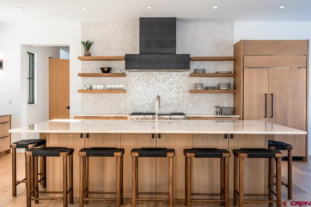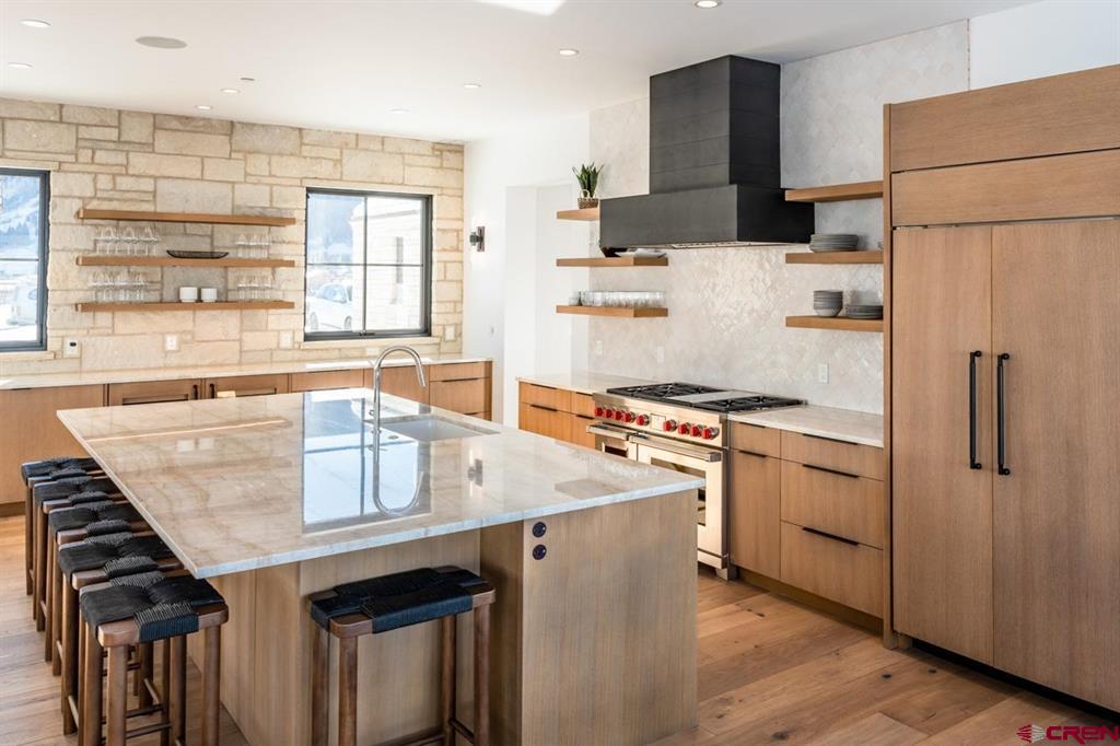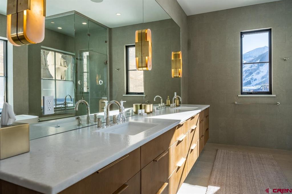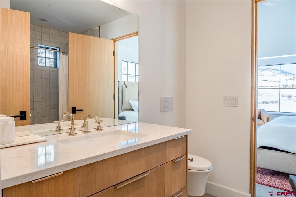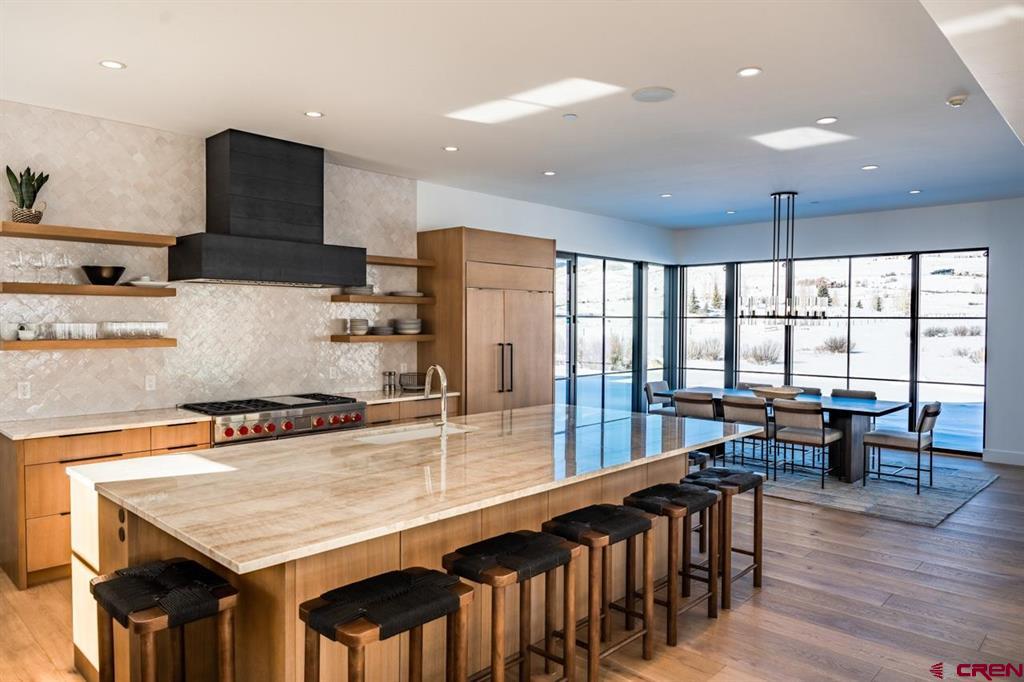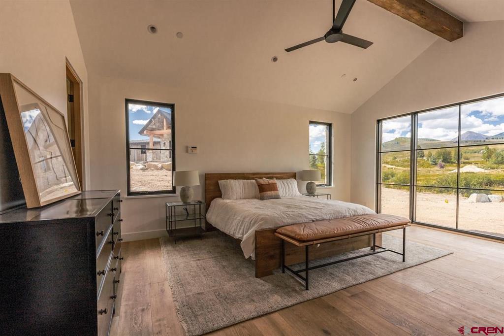An amazing location at Aperture and adjacent to the historic town of Crested Butte, private Slate River access and stunning mountain views make this fully furnished mountain modern at 33 Aperture one of Crested Butte's finest offerings. Architected by SHM Architects with interior design by Niki O'Connor of CB Spaces and built by Michael Weil Custom Homes, the recently completed property comprises 5,393 SF and rests on a flat 1/2 acre parcel that sits against permanent open space. The main house enjoys a traditional floor plan with the kitchen, dining room, great room and the primary bedroom suite on the 1st floor. Upstairs there are three guest suites and a comfortable media room. The views from the upstairs suites are awesome too! The great room is anchored by a gorgeous floor-to-ceiling stone fireplace and features vaulted ceilings and picture windows that expertly capture the mountain views. When friends and family visit they will enjoy their own special retreat in the guest house. The guest house includes a vaulted living area with a picture frame view of Mt Crested Butte, a full kitchen and bath and a spacious bedroom. Throughout the property, designer lighting and hardware compliment the solid white oak doors, the white oak wide plank flooring, the Ann Sacks tile treatments and the Pete Peacock custom built cabinetry. Deborah Walker of Dallas selected all of the plumbing fixtures. The well appointed Wolf-SubZero kitchen features gorgeous natural stone tops and there is a covered steel beam and stone porch set up for alfresco dining and relaxing outside! The home includes a distributed audio and visual system and the whole house lighting is powered by Lutron. The two-car, 462 SF heated garage will accommodate large vehicles with room for the skis, bikes and paddle boards. The home is offered fully furnished and ready to go for your next Colorado adventure.
