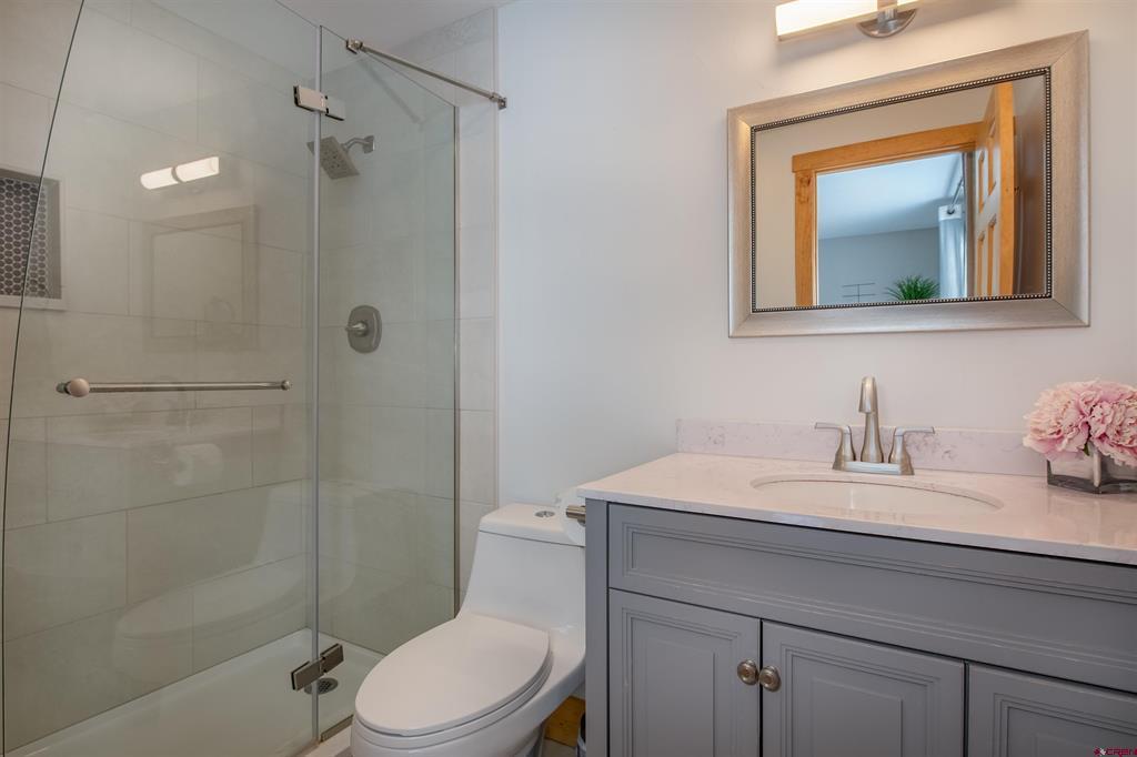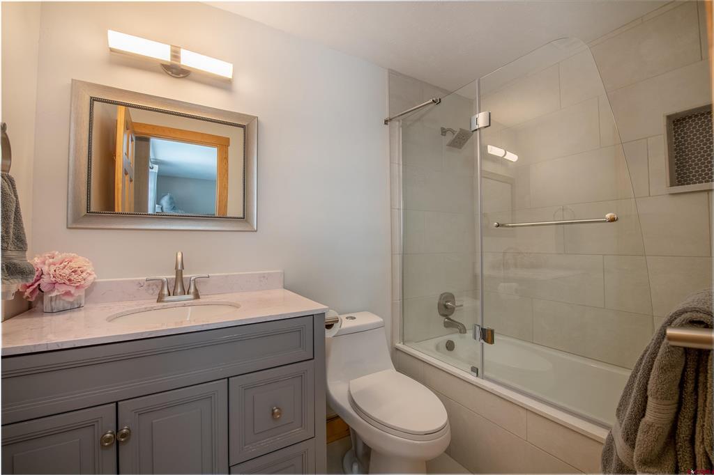 Gorgeous, Fully Renovated, Turn-Key Rental, Primary or Second Home is ready for you to move in with just your Skis/Board& Bike. This third-floor condo with MT CB views was fully renovated from top to bottom in 2019. The well-appointed kitchen features refreshing gray shaker cabinets with multiple locked owner sections, beautiful, veined quartz slab countertops, and a new high-end LG appliance package in Designer Slate. Clever space planning has allowed the new large capacity LG stacked washer and dryer in the kitchen and the new Rheem water heater moved to the master closet. The open concept living and dining, kitchen allow easy flow throughout the unit, so all guests are included in the fun. The huge wall mounted 55" TV and comfy couches are the perfect place to watch the big game or enjoy unforgettable evenings. Cozy up in front of the updated, stacked stone wood-burning fireplace, with FREE firewood courtesy of the HOA-stocked wood closet on the first floor. Eight or more guests can easily enjoy the assorted bedding arrangement of king, queen, and two sets of bunk beds. Due to the clever lock-off floorplan, the three-bedroom unit can be divided into numerous types of rental arrangements including a studio, one, two or three-bedroom. The spacious primary bedroom and west bedroom boast an exterior exit door to allow for separate access from the main kitchen and living areas. Each bedroom has its own wall-mounted Samsung Smart TV. All three bedrooms enjoy ensuite bathrooms with sparkling new tubs/showers, tall vanities, and glass shower doors. The complex has one of only 3 outside heated pools on the mountain as well as a hot tub and two saunas. The covered BBQ area with multiple grills and picnic areas is a huge hit with everyone all year round for cooking out and soaking up some MT sun. The fully renovated Clubhouse Kitchen is a wonderful meeting space for Guests to rent for private parties. Workout machines, private meeting spaces, and off-season bike storage are also some options available to Owners. The free, seasonal shuttle stops every 30 minutes just steps from the building and will easily deposit you at the Base Area with your skis or board or transfer you to the Town of CB Bus for a night out. Guests can also just walk a few short minutes down the well-lit and paved path. Once you arrive at the condo, you will never have to drive again during your vacation. Don't miss this exceptional Investment Opportunity.