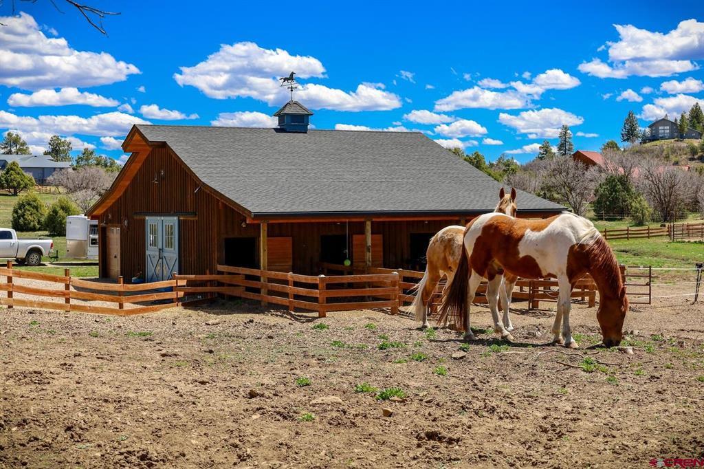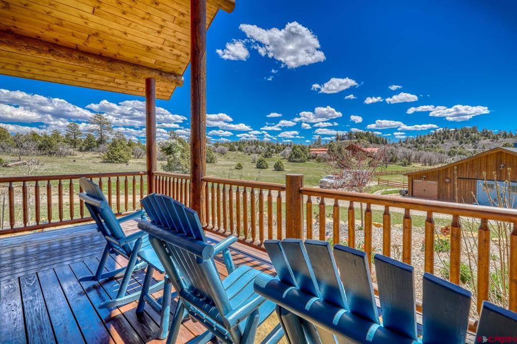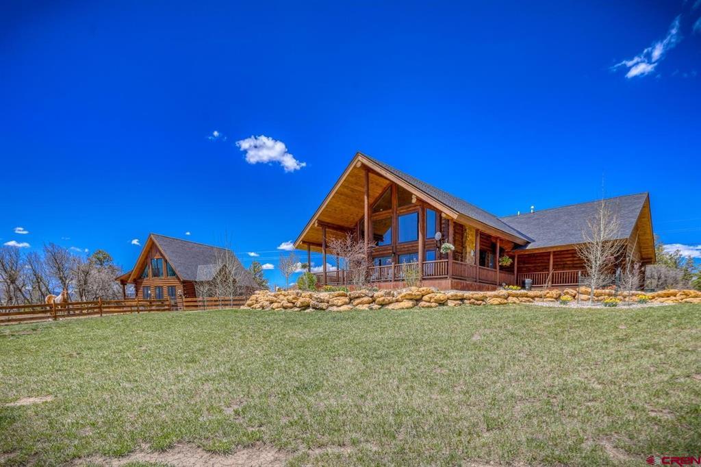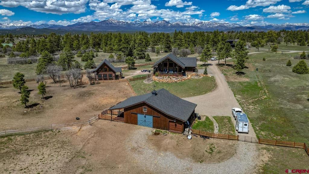 Looking for your own “Heart Land” in beautiful Pagosa Springs, Colorado? You've found it in one of the most coveted subdivisions - Colorado Timber Ridge! This property offers two beautiful log homes! One is a 3 bedroom 2.5 bath with 2203 Sq ft and the other is 2 bedroom 2.5 bath with 1104 Sq ft Plenty of room for family and friends in these gorgeous custom homes with all city services! Enjoy being 5 minutes from town but the feel of living in your mountain log home. This property sits on 5.22 acres and is just off paved roads, saddle a horse and head out for a trail ride right from your custom barn. Your horses will be living in style in the large 1728 Sq ft, insulated horse barn with 3 stalls and heated self-flowing water systems, heated wash rack, tack room, cement floors and a turnout area! There is a custom riding arena with a sand footing that was specially added for the Hunter Jumping equipment! A 50ft round pen with the same sand footing for exercising your horses! Sit out under the stars at night on the open patio in your hot tub and enjoy the cool evenings of the San Juan Mountains. So many extras and upgrades that you have to see to believe! Colorado Timber Ridge is a one-of-a-kind equestrian community! Enjoy paved roads, a maintained 3-mile trail system for horseback riding, hiking, mountain biking and snow shoeing! In the winter months you are 30-minutes away from some of the best snow in Colorado at Wolf Creek Ski area along with snow shoeing and cross-country skiing right out your front door. Pagosa has a private airport 10 minutes from this dream location, or you can fly in and out of the Durango commercial airport just 50 min away. Schedule a time to see this unique mountain property and start living the mountain lifestyle today!