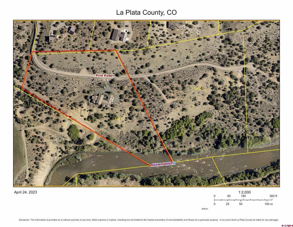 Awesome building site out of the flood plain on this 11+ acre lot bordering and overlooking the Animas River. Only three river frontage lots in the exclusive Adobe Cliff's subdivision with fishing rights on a portion of the other two lots. Just down La Posta Road and very close to the Durango City Limits. Can be purchased with the home on the lot contiguous at list price of $3.4M