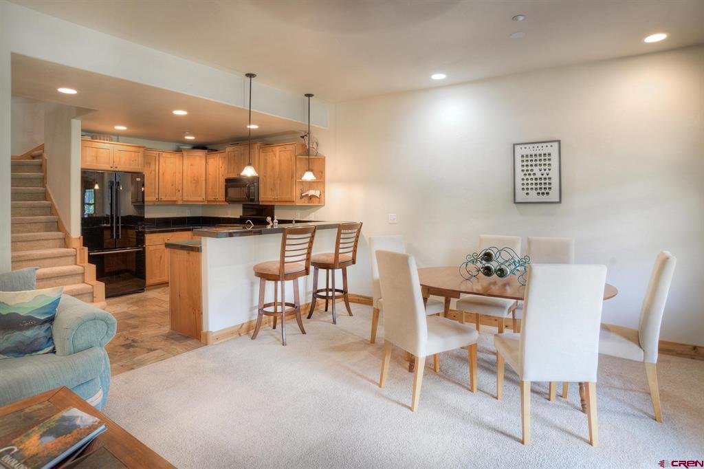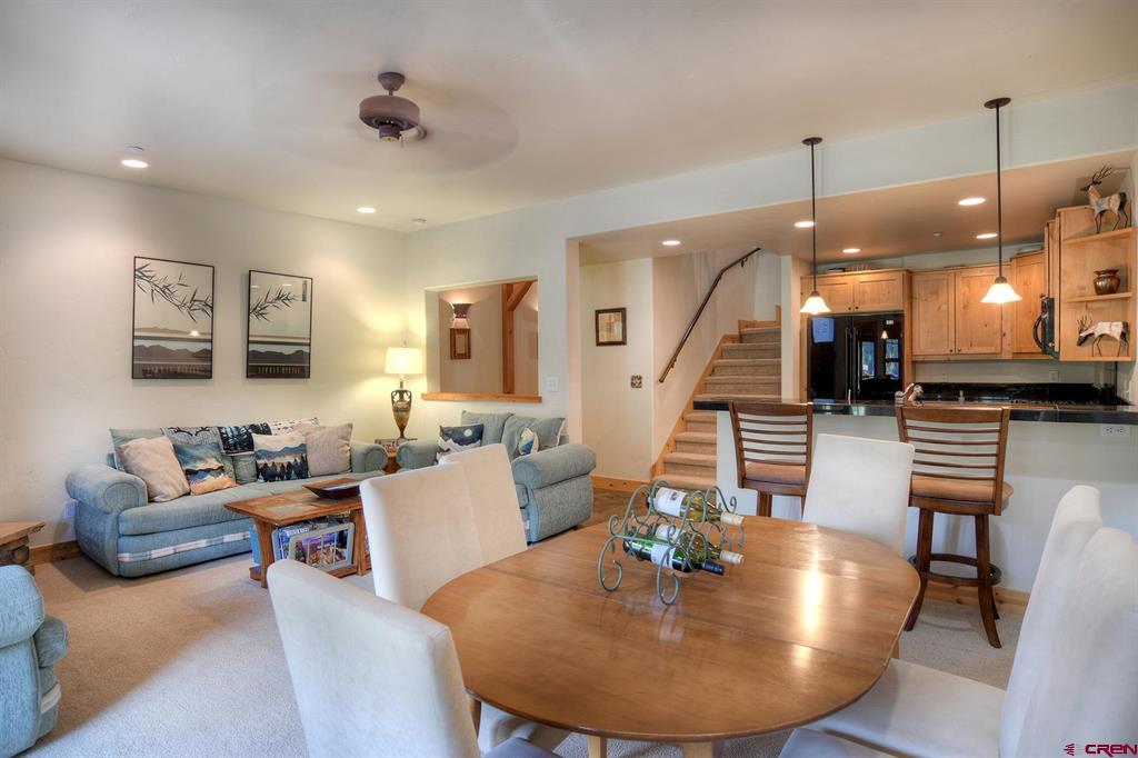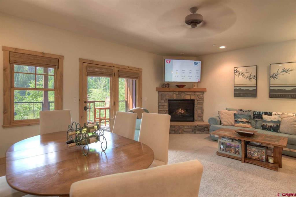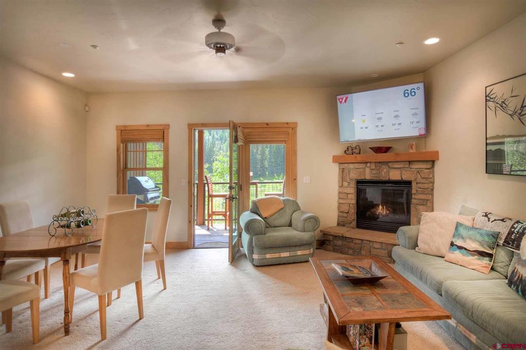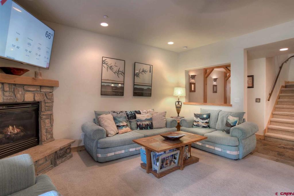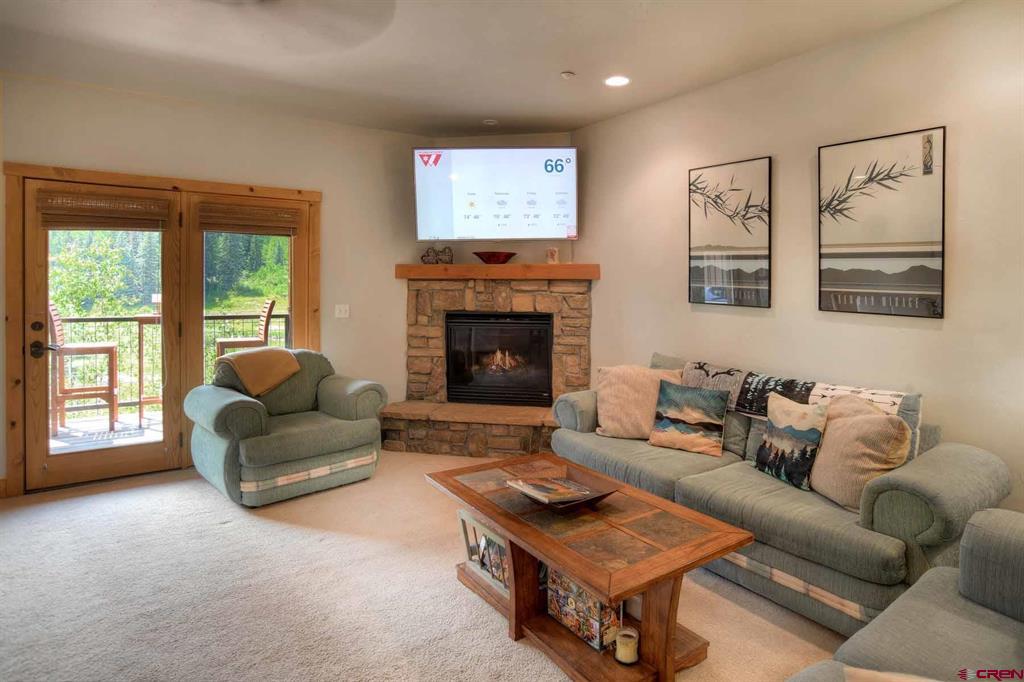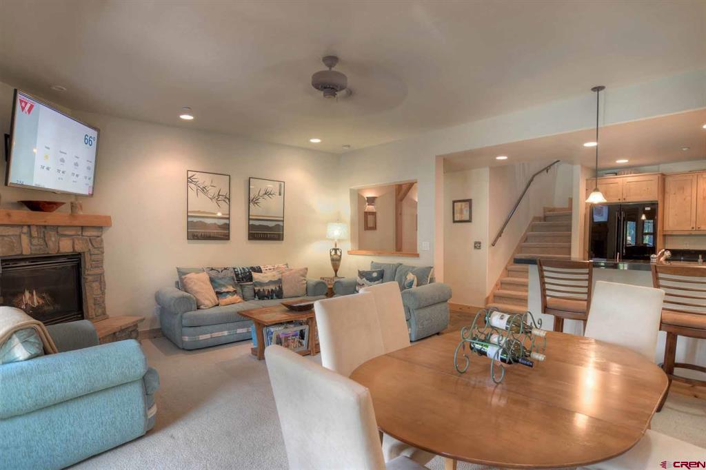• INCREDIBLE RESORT/MOUNTAIN VIEWS • EXCELLENT RENTAL INCOME POTENTIAL • CUSTOM HOME FEATURES • WALK TO HIKING, FISHING ACCESS Rare chance to own a gorgeous Black Bear TH. Offered furnished and ready to enjoy. This unit grossed $25,000+ annual income renting over peak holiday weeks. These cozy, family-sized homes warmly tucked close together across from the resort are a long-time favorite of repeat rental guests. Enjoy spectacular, unobstructed views of surrounding mountains, ski resort, lower slopes, sledding hill, and pond across the way. Listen carefully and you may hear frogs singing at night!! Only a few minutes’ walk down the road to beautiful Twilight Lake, with catch-and-release fishing and kayak/wakeboard rentals, as well as the Purgatory Flats trailhead. Unlike some newer builds, no corners cut, from the beautiful cabinetry, tile flooring, and custom metal railings to the two stone fireplaces and higher ceilings. As a DMMA resort member property (2% due at closing), you and your guests receive access to the resort’s amenities, including heated pool, hot tub, workout facility, and free on-demand shuttle. All exterior of home and property, including snow removal, maintained by HOA (new roofing installed 2018, deck/balcony recently stained 2022). HOA dues currently much lower than most of the other resort associations. Plenty of days remain in this summer/fall season. What are you waiting for??!!