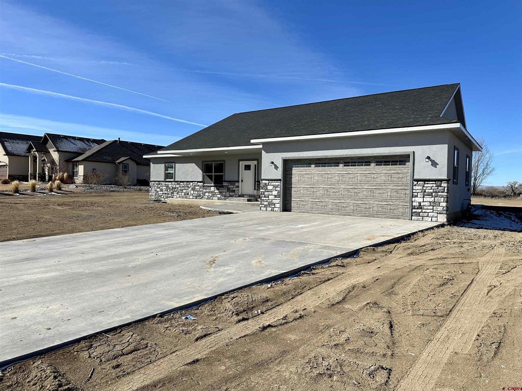 This fabulous new construction is underway! Located in the coveted Roubideau Reserve, this beautiful new home is situated on 0.73 acres. The lot backs up to a hay field, and the westerly sunsets over this bucolic scene are what Colorado living is made for! Enjoy the massive covered concrete back patio, or sip coffee in the mornings on the east-facing front porch. The home has 3 bedrooms, 2 bathrooms, and a split floor plan. Single level and low maintenance! Custom cabinetry and granite throughout. An oversized attached garage has been designed to fit even the largest pickup truck, and there is irrigation water in this subdivision to keep everyones landscaping looking great. There is still time for a buyer to pick some finishes- call for more details! Don't miss it!