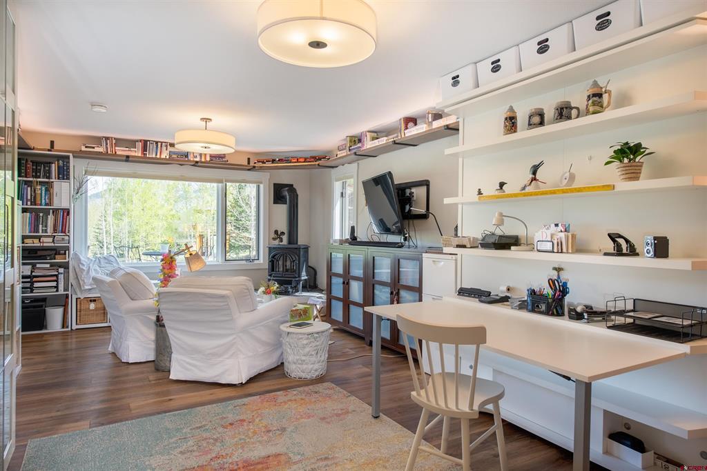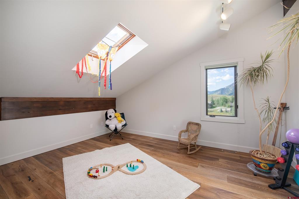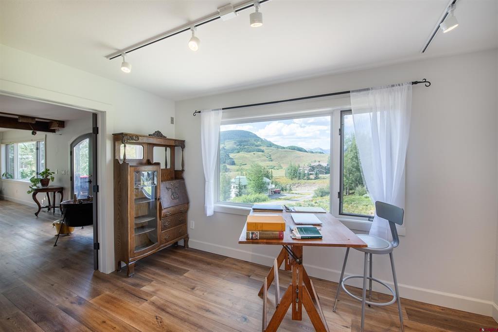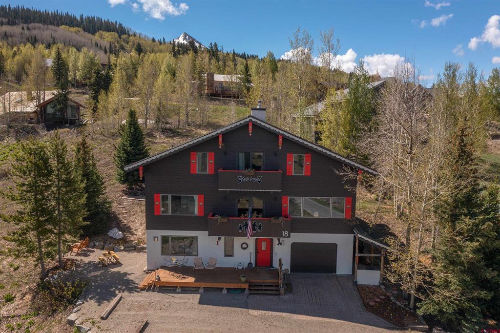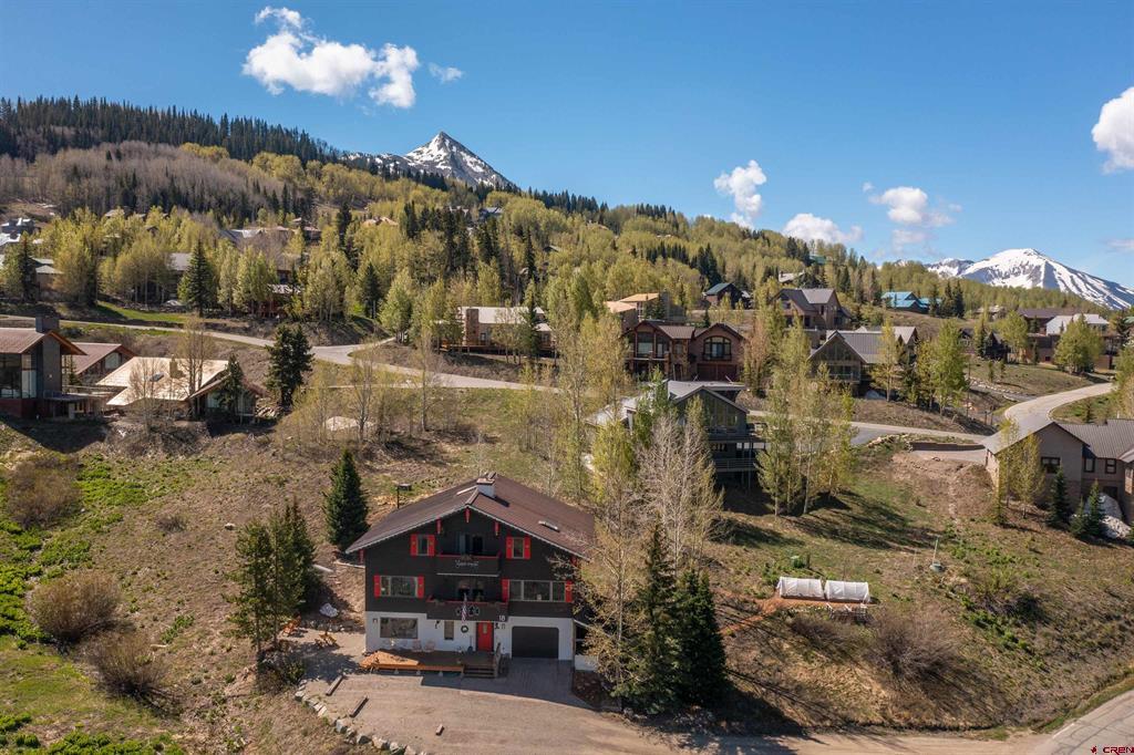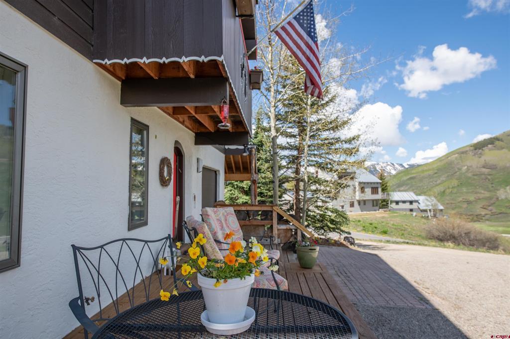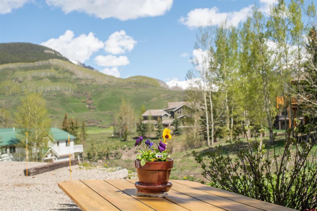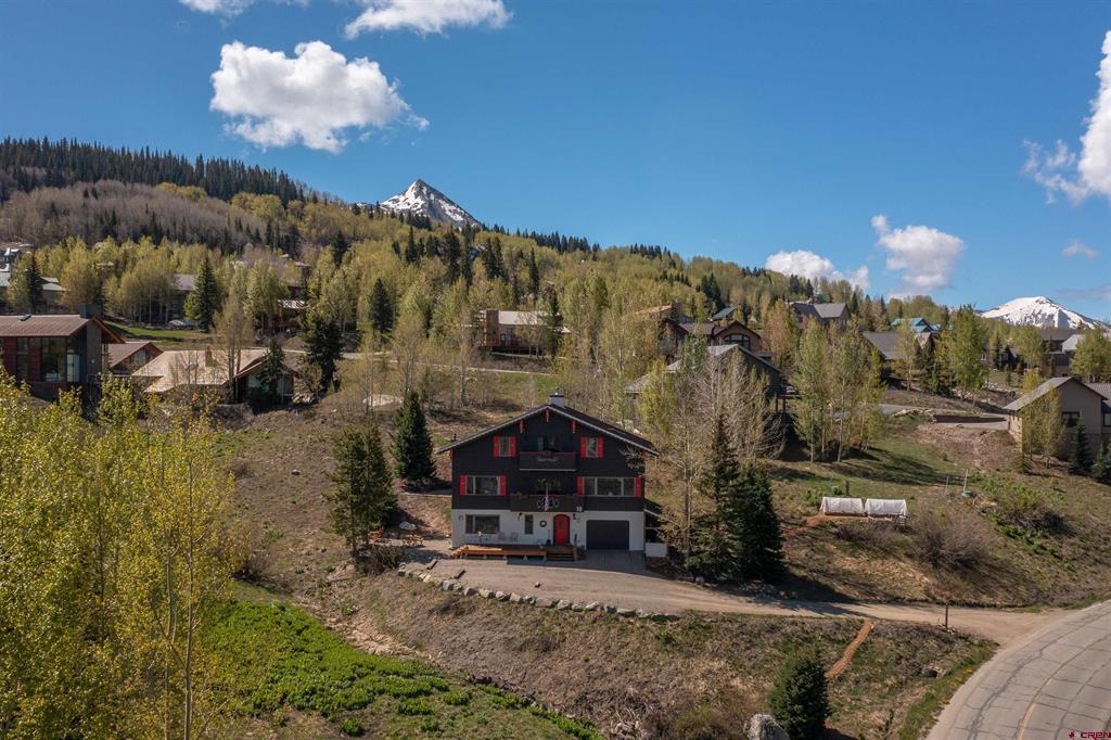This Swiss ski home in Mt. Crested Butte is truly captivating and impossible to miss. The exterior boasts a charming mountain Swiss design while the interior has been updated to a modern style. The home is perched on an elevated site, providing breathtaking mountain views from every window. Upon entering the home, you will be greeted with a delightful studio apartment that has a separate entrance and was newly renovated in 2019. Moving up to the second floor, an open floor plan awaits that is perfect for gatherings with family and friends. Off the living room, there is a bedroom, full bathroom, and an office/bedroom. The third floor includes two additional bedrooms, a full bathroom, and a versatile room that could be used as a bedroom or flex space. The owners have made numerous updates to the home, including quartz countertops and new appliances in the kitchen, engineered wood floors throughout, fresh paint, and a cozy gas stove. During the summer months, the back deck is the perfect spot to relax amidst beautiful flowers and mature landscaping. You can also enjoy the morning sun outside the studio apartment. Plus, you can ski right to your home off the homeowners trail and enjoy the open space adjacent to the property, which was purchased by the neighbor for view protection.