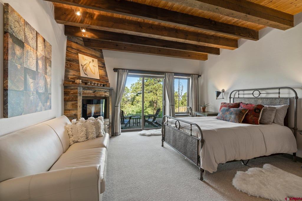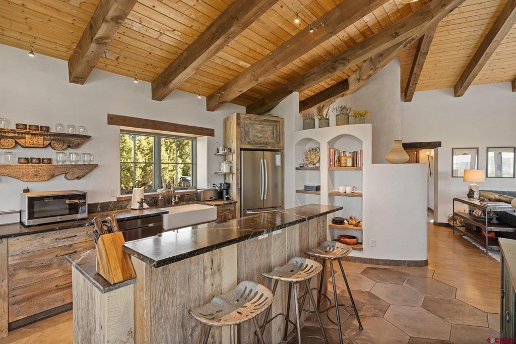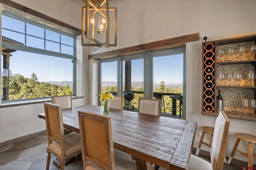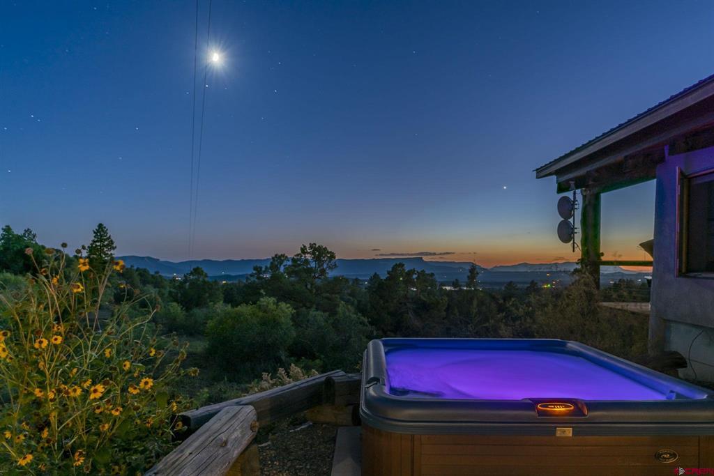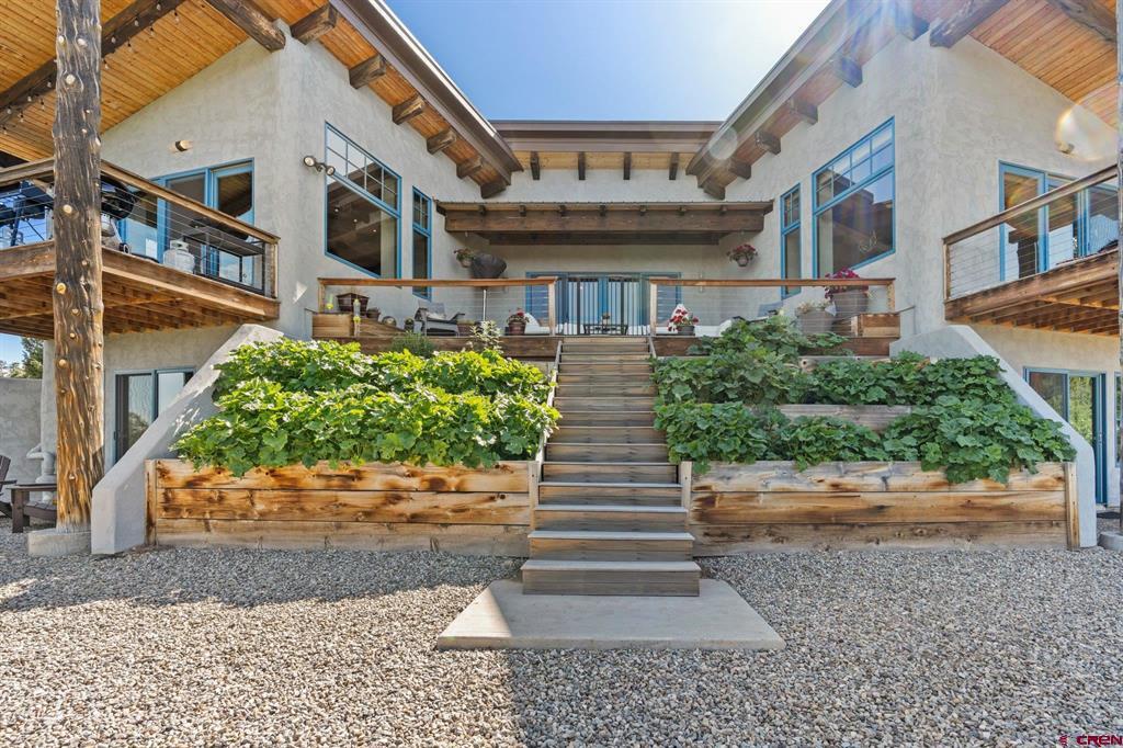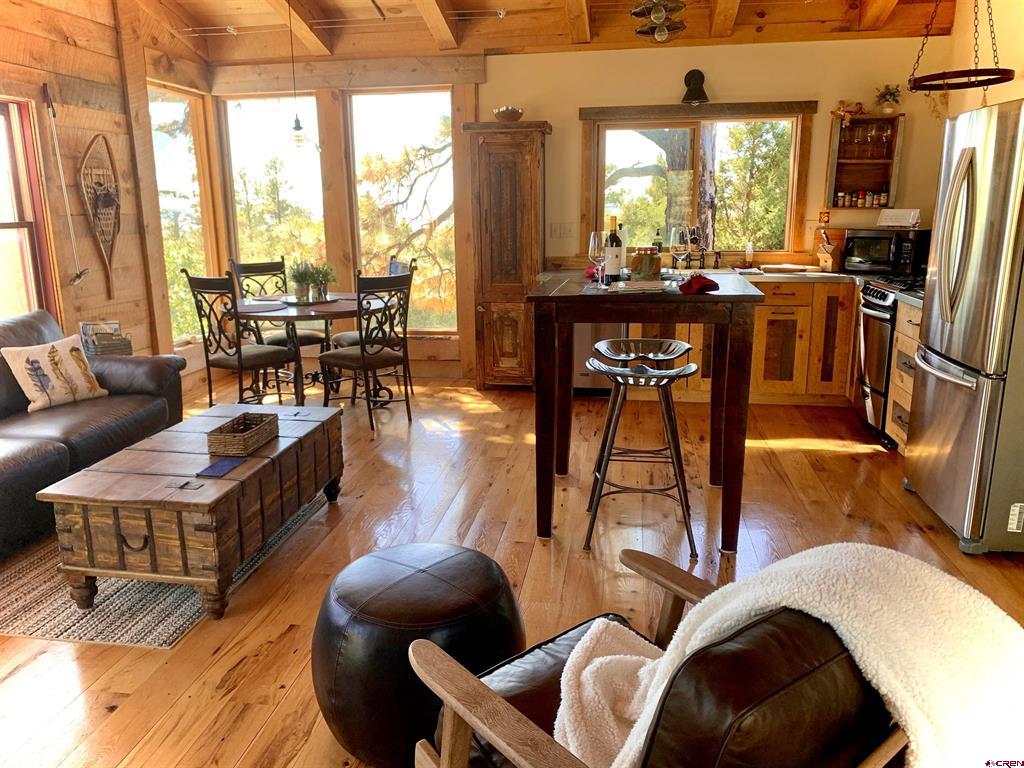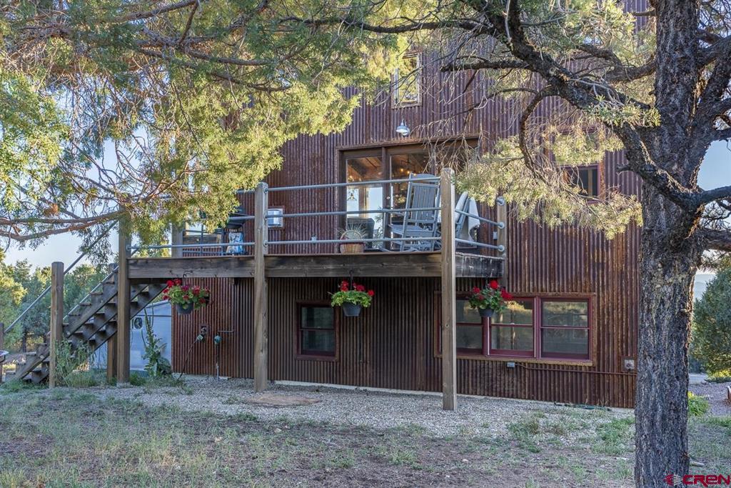 Nestled within tall Pines and breathtaking views of Bauer Lake, Mesa Verde and Sleeping Ute Mountain this artfully designed 3 bedroom, 3 bath, 3000 sq. ft. home along with a two unit, 2000 sq. ft. guest house is captivating. Huge windows bring in the views and provide plenty of natural light. Vaulted ceilings, curved archways, exposed beams, thick wood window sills and antique doors from around the world are just a few of the artistic touches that is warm and inviting. The living room has a gas kiva fireplace and a warm wood floor opens to the kitchen and dining area. A deck off the living room is perfect for entertaining and sunsets. The kitchen has a Tuscan flare with open shelves, large windows, reclaimed barn wood cabinetry and a Bosch chef stove/oven and dishwasher. A small outdoor cooking deck located just off the kitchen is perfect for grills & smokers. The main suite features a private deck, walk-in custom closet, and a luxurious bathroom sheathed in Italian tile, marble counters, a stone shower along with a deep soaking tub. An in wall Modern Flames fireplace panel provides extra warmth and ambience. On the lower level is a kiva lounge with a fireplace, providing a cozy place to read or watch a movie. Two more bedrooms are downstairs, each with their own patios and a shared bathroom, plus an exercise/yoga room. The outdoor hot tub is perfect for stargazing. The 2 story guest house has two separate units. The downstairs one bedroom unit was completely renovated in 2022 with live edge wood doors, granite counter tops, live-edge wood slab shelves and bar, gas heater and stove. It has a private outdoor patio. The upper 1 bedroom +loft unit features high ceilings with 360 degree views, wood plank interior walls and hardwood floors. The open design full kitchen has stainless steel appliances, and ample beautiful blue pine wood kitchen cabinetry, adjacent to an ample yet cozy living area that opens to a deck. The guest home also has an attached heated greenhouse with automated irrigation. These units can be for extra guests, caretaker, or income rental potential of >$2,500 per month. The property has 2 pastures, a 4-stall, 3-sided carport/barn which has plenty of room for lake toys and bikes, a 20 ft. x 20 ft. platform perfect for yoga and group gatherings and fenced garden area. Jackson Lake and the San Juan National Forest are just 1/2 mile away for fishing, paddle boarding, and endless trails for hiking, biking and horse riding. No restrictions or HOA. The home is a Smart Home: locks, lights, and heat can be operated remotely. There is a Simply Safe security system at both the main and guest house. Two Mancos Rural water taps and two high speed internet systems using Starlink are included. This luxurious property with exquisite furnishings and every modern amenity at your fingertips, means you can start living your dream lifestyle as soon as you step inside. 4 miles to Mancos, and 35 minutes to Durango.