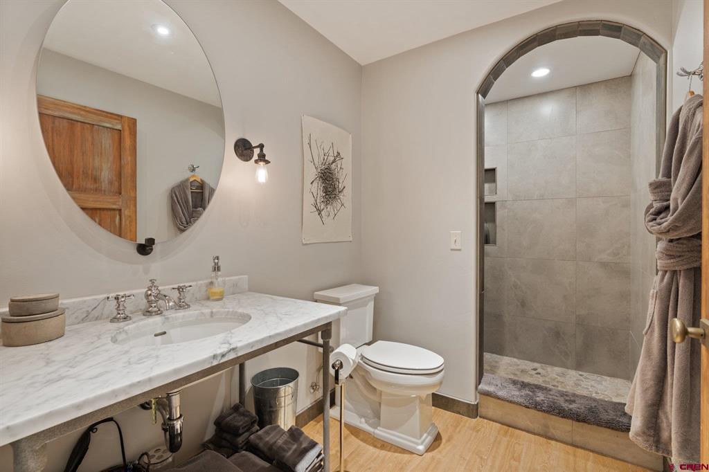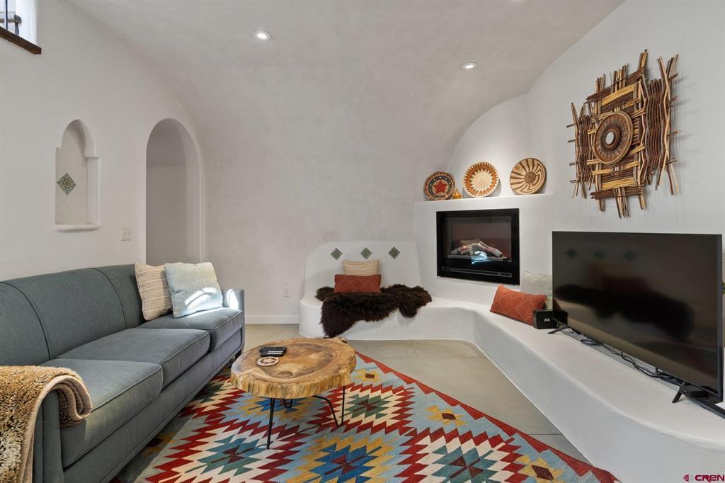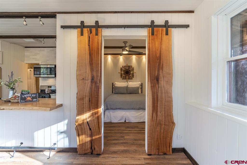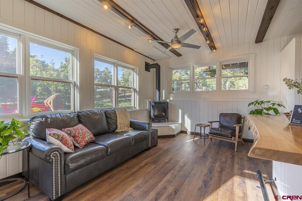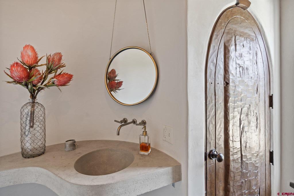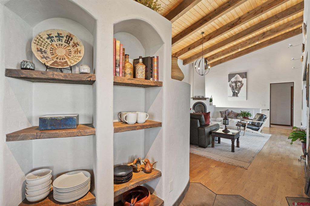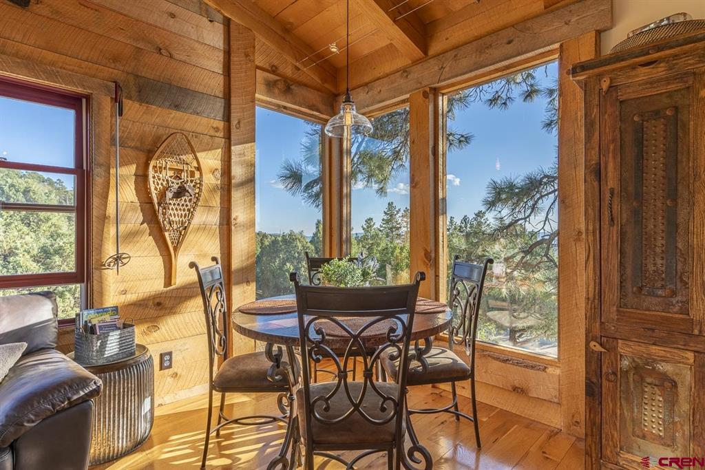 Nestled within tall Pines and breathtaking views of Bauer Lake, Mesa Verde and Sleeping Ute Mountain this artfully designed 3 bedroom, 3 bath, 3000 sq. ft. home along with a two unit, 2000 sq. ft. guest house is captivating. Huge windows bring in the views and provide plenty of natural light. Vaulted ceilings, curved archways, exposed beams, thick wood window sills and antique doors from around the world are just a few of the artistic touches that is warm and inviting. The living room has a gas kiva fireplace and a warm wood floor opens to the kitchen and dining area. A deck off the living room is perfect for entertaining and sunsets. The kitchen has a Tuscan flare with open shelves, large windows, reclaimed barn wood cabinetry and a Bosch chef stove/oven and dishwasher. A small outdoor cooking deck located just off the kitchen is perfect for grills & smokers. The main suite features a private deck, walk-in custom closet, and a luxurious bathroom sheathed in Italian tile, marble counters, a stone shower along with a deep soaking tub. An in wall Modern Flames fireplace panel provides extra warmth and ambience. On the lower level is a kiva lounge with a fireplace, providing a cozy place to read or watch a movie. Two more bedrooms are downstairs, each with their own patios and a shared bathroom, plus an exercise/yoga room. The outdoor hot tub is perfect for stargazing. The 2 story guest house has two separate units. The downstairs one bedroom unit was completely renovated in 2022 with live edge wood doors, granite counter tops, live-edge wood slab shelves and bar, gas heater and stove. It has a private outdoor patio. The upper 1 bedroom +loft unit features high ceilings with 360 degree views, wood plank interior walls and hardwood floors. The open design full kitchen has stainless steel appliances, and ample beautiful blue pine wood kitchen cabinetry, adjacent to an ample yet cozy living area that opens to a deck. The guest home also has an attached heated greenhouse with automated irrigation. These units can be for extra guests, caretaker, or income rental potential of >$2,500 per month. The property has 2 pastures, a 4-stall, 3-sided carport/barn which has plenty of room for lake toys and bikes, a 20 ft. x 20 ft. platform perfect for yoga and group gatherings and fenced garden area. Jackson Lake and the San Juan National Forest are just 1/2 mile away for fishing, paddle boarding, and endless trails for hiking, biking and horse riding. No restrictions or HOA. The home is a Smart Home: locks, lights, and heat can be operated remotely. There is a Simply Safe security system at both the main and guest house. Two Mancos Rural water taps and two high speed internet systems using Starlink are included. This luxurious property with exquisite furnishings and every modern amenity at your fingertips, means you can start living your dream lifestyle as soon as you step inside. 4 miles to Mancos, and 35 minutes to Durango.
