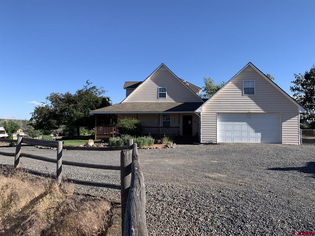 Nestled above the town of Cedaredge with sweeping views of the San Juans and Grand Mesa, this lovely home on 1.74 acres has much to offer! The 3 bedroom, 2 1/2 bath contemporary home boasts a main level Bedroom Suite with 5-piece bath and walk in closet, separate Dining Room plus an eat-in Kitchen, and a spacious Living Room with a cozy freestanding fireplace. The Kitchen with it's handsome custom cabinetry also offers an island with breakfast bar and a new gas range. Two huge bedrooms upstairs equipped with 3 closets each, and a 3/4 bath with double vanity. Above the garage space is tucked a finished 21'7 x 13'10 Bonus Room (no heat source). Amazing storage spaces everywhere! Front lawn with sprinkler system, various fruit trees, blue spruce, aspen and more on drip systems, plus a fenced back yard. Covered L-shape porch and a large back deck overlook all the lovely views. Charming detached shop and equipment shed with woodstove. Room for all your toys and furry pals. Welcome home! **Seller is offering a 14-mo Blue Ribbon Home Warranty for appliances.