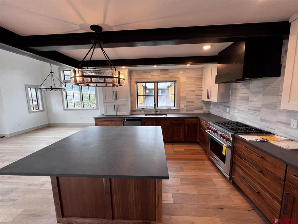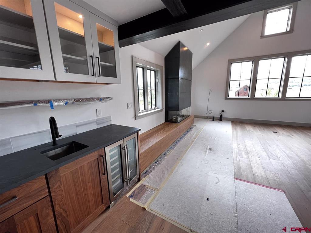 The building codes changed dramatically in town and 918 Belleview is one of only a few remaining new builds in Crested Butte that features whole house natural gas in-floor radiant heat, a detached and heated accessory studio with a 1/2 bath and a detached and heated 786 SF garage with tons of storage. The floor plan on this well designed home offers second floor living, kitchen and dining areas that capture the dramatic views of our surrounding mountains. The huge south facing deck is covered and enjoys incredible views. Three spacious bedroom suites, a mud room and a utility room grace the lower level, a fourth bedroom sits on the second level and a fifth bedroom suite occupies the top floor of this amazing home. Interior highlights include an incredible steel and oak staircase, a Wolf-Subzero kitchen decked out in walnut and granite, white oak wide plank flooring throughout, impressive steel beams, a butler's pantry in walnut and a very cool gas fireplace with oak surround in the living room. Outside you'll find a hot tub with a stone patio and beautiful landscaping. Andrew Hadley Architect designed this beauty, Interior Visions did the interiors and David Gross General Contractor is the builder. The home's completion date is set for August 2023.