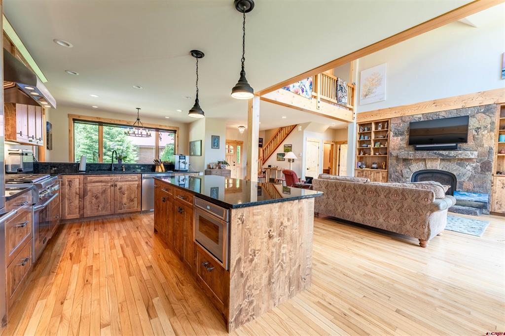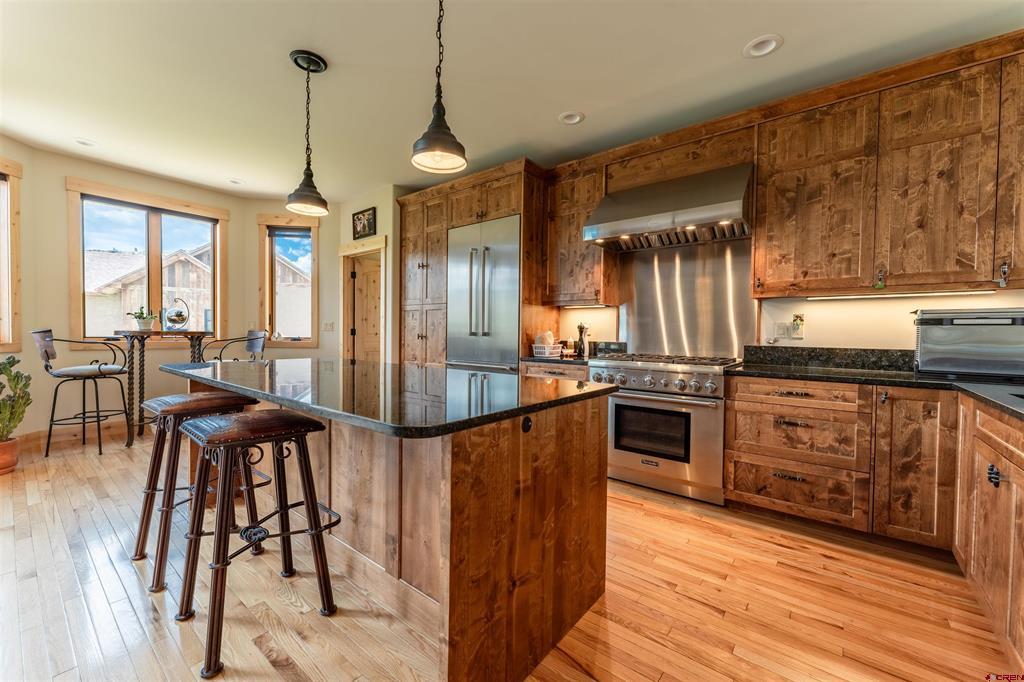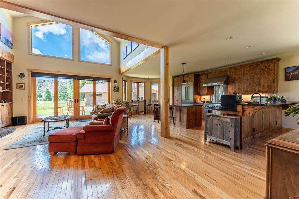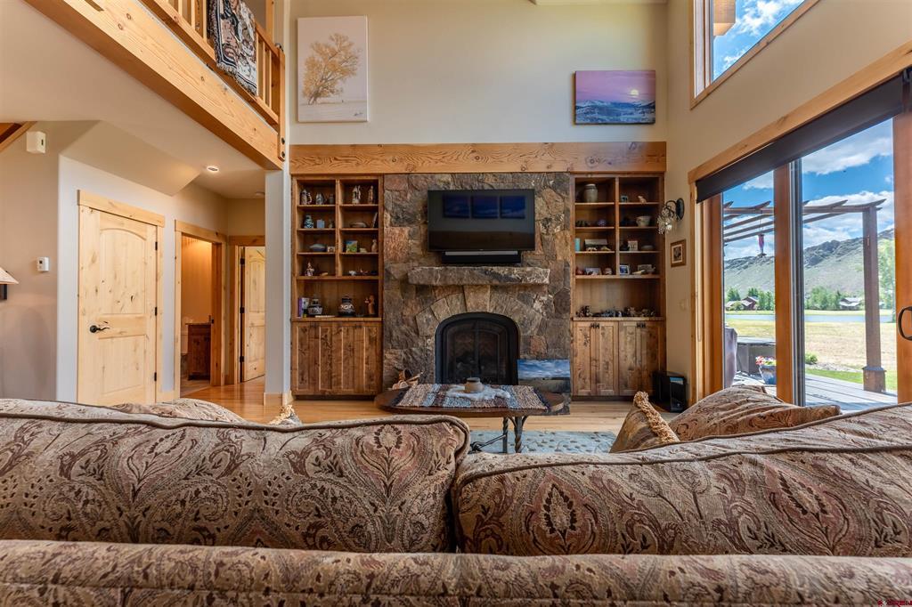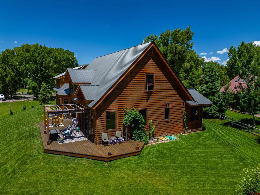 A treasure on the golf course! This home is built with Douglas Fir Post and Beam construction which accentuates its beautiful two story Craftsman Mountain style that is built with impeccable quality. Ample room for family and friends featuring 4 bedrooms and 3 1/2 baths located on the 17th tee of the Dos Rios Golf Club. Enjoy unobstructed views overlooking the course, ponds, and Hartman Rocks area. The main level consists of a Master Suite, Great Room, Kitchen, Dining area along with a south facing breakfast nook. Solid hardwood flooring covers the living area. The Great Room has a large full faced arched gas fireplace set in dry stacked moss rock. An integrated TV mount is located above the mantle. Stereo and electronics cabinets are provided in the custom built-in bookcases to either side of the fireplace. Large double French sliding doors on the south side of the home exit out of the Great Room and Master Suite onto a wrap-around deck with uninterrupted views of the beautiful open space! The Master Suite has a private bathroom with double vanity, Jacuzzi tub, shower w/bench, water closet and walk in closet. The home is trimmed in high quality Alder, with locally custom built high quality Alder doors and cabinetry. The counter tops are solid slab granite with under mount sinks. A Second Primary suite bedroom is located above the heated garage with vaulted ceilings, a full bath and walk in closet. The second level of the home has a loft area over the Great Room and the two large bedrooms along with a full bath with double sinks in the vanity. Generous attic space off the upstairs bedrooms provides for extra storage. The Second bedroom suite would also make an excellent office or entertainment/workout room. The home has cedar siding and a metal roof, paved drive and extensive flower beds and grassy lawn. Tomichi Trail is highly desirable as this location is a quiet neighborhood, 5 minutes from Gunnison and the airport for ease of travel. Enjoy 4 beautiful seasons on the Western Slope of Colorado to hunt, fish, ski, golf and just relax in the Colorado mountains. Seller would consider a furniture inclusions list, please request information if desired.
