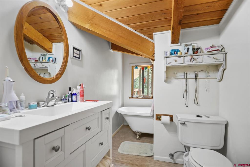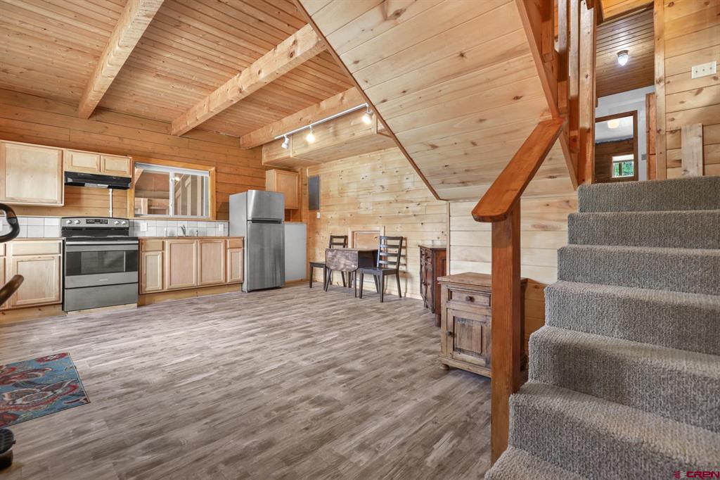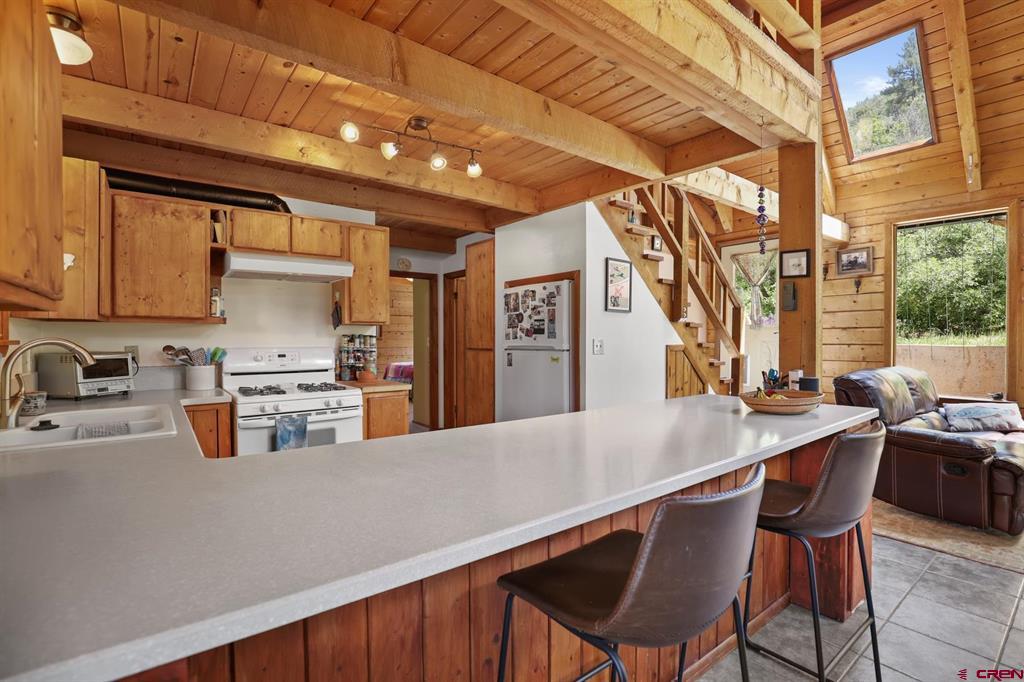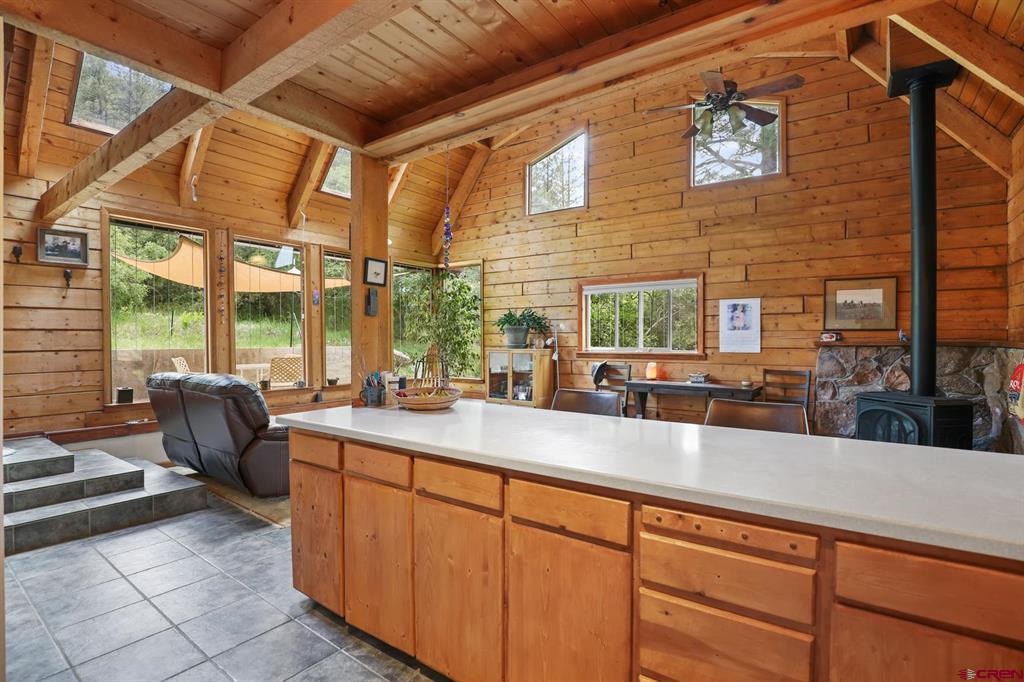 In-town Dolores but feels like you're out of Town! What a setting!! Beautiful custom log home on Merritt Way overlooking the town of Dolores and the Dolores River. Remodeled over the years top to bottom with upgraded kitchen, new baths, Mother in Laws unit, new carpet, newer windows, new back deck and much more. Everything is complete, just Enjoy! Unique layout with tons of natural light from the big skylights in the living room/kitchen area, you'll hardly need to turn on the lights. The home sits on a big 1.6 acre lot with a nice mix of lawn and manicured forest that is filled with tall Pines and Gamble Oak. You'll love the forest feel! Large detached log garage with room for expansion and additional lean to off the house for equipment storage. Inventory is very tight, so don't miss this one of kind Home and property in Dolores!