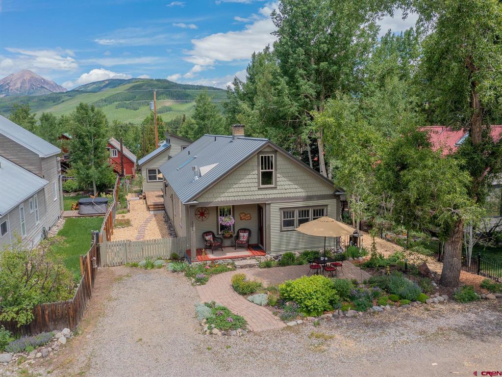 Welcome to the fashionable west end of Crested Butte and the Historic Pasic Cabin! The Pasics were the original residents of the home, which was constructed by the Colorado Fuel & Iron Company in 1926. Gothic is a quiet cul-de-sac style street just two blocks from the Elk Avenue business district. Within minutes, you can walk to the Lower Loop, the Woods Walk and other glorious trails leading to the various peaks of the Upper East River Valley. The 19-room Elk Mountain Lodge is situated a half-block away serving your guest overflow needs. The front porch and patio of the Historic Pasic Cabin face south from the sunny side of the Gothic providing plenty of vitamin D. The property has been lovingly maintained and history protected by its 32-year owners, from the wood floors, the twisting masonry chimney, original windows and other charming details. The main house consists of 2 living areas, 3 bedrooms and 2 bathrooms on 2 floors in 1,772 square feet. The “sleeping porch” is an additional unconditioned square footage that could easily be heated by extending the existing system. The 1 bed/1 bath, 721 square foot alley cottage was constructed in 1981 and is not deed restricted in any way. This space was just remodeled with new flooring, cabinets, back splash, sinks, appliances, shower and ceiling fan. Additional outdoor living lies between the two structures with the connecting deck and fenced side yard areas. The historic shed houses the original outhouse and has been carefully restored serving as storage for your seasonal toys and tools. The Historic Pasic Cabin offering represents a rare opportunity to own a piece of Crested Butte's storied history and to live the life that you and your family love in the picturesque Upper East River Valley.