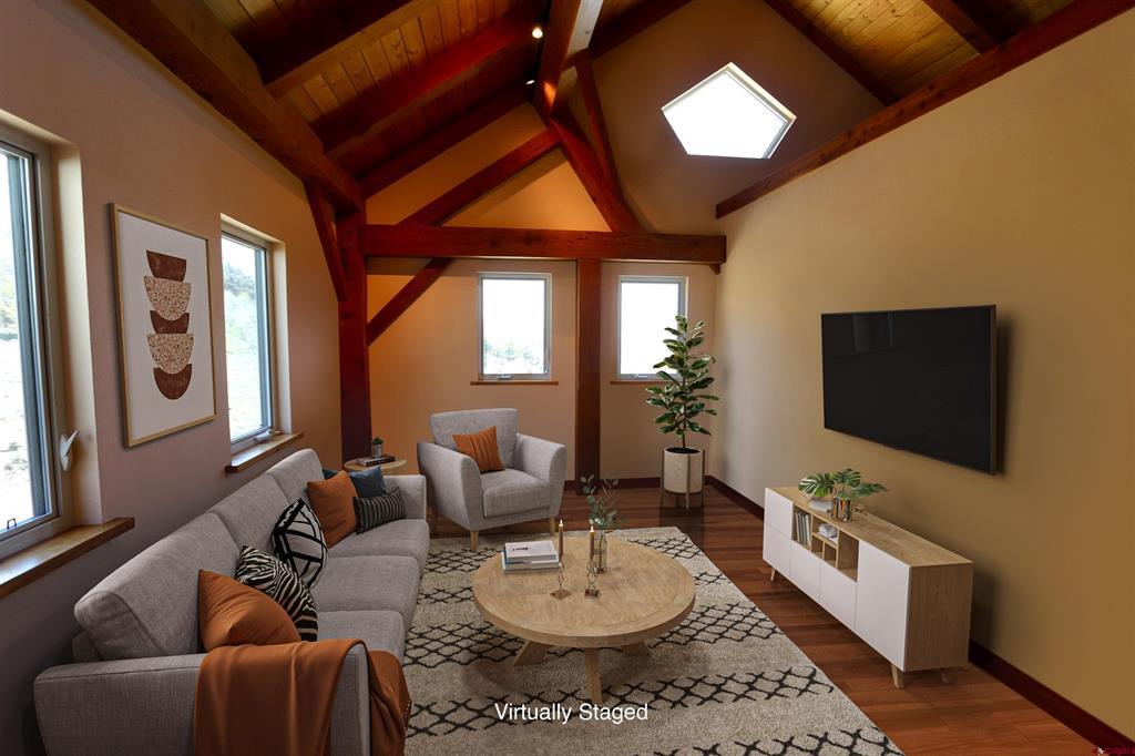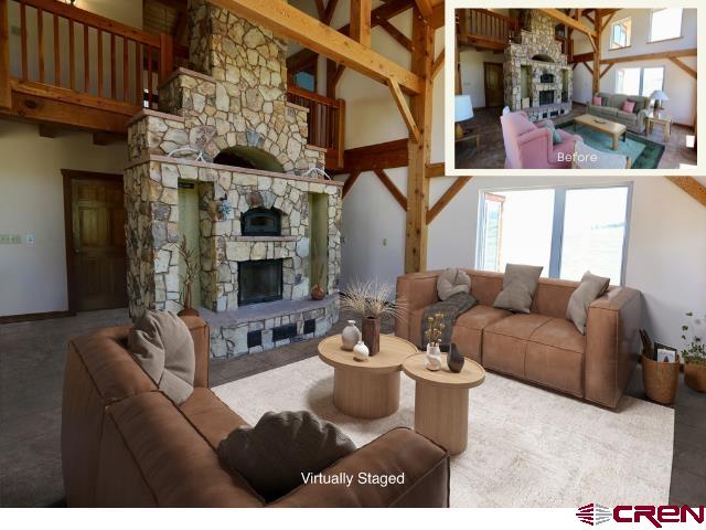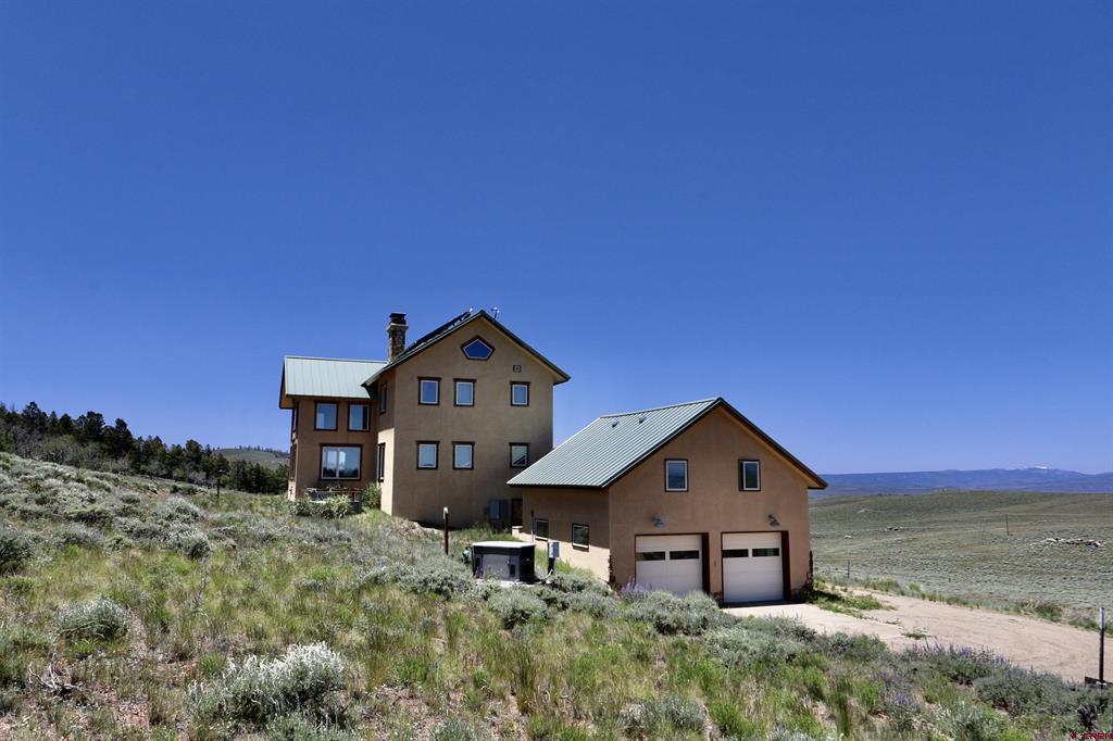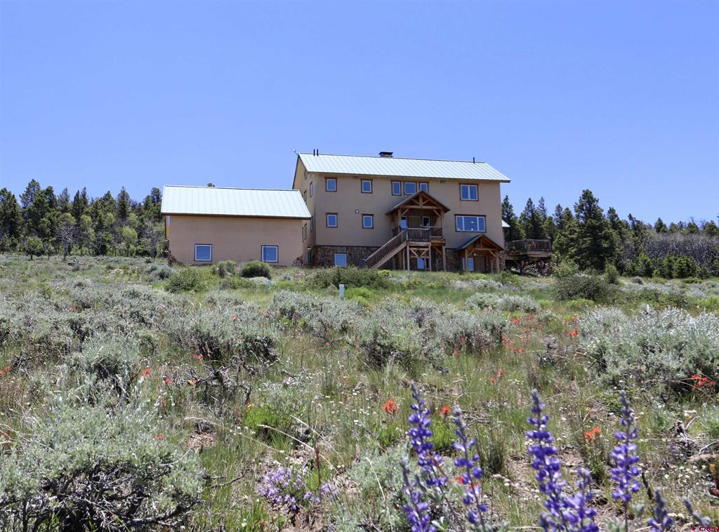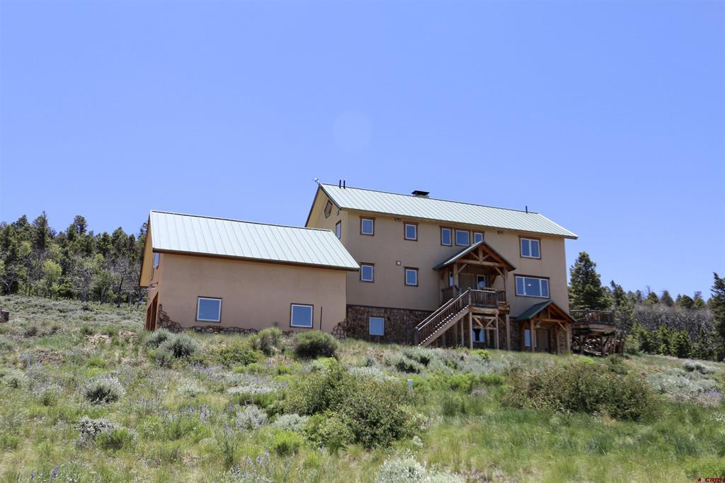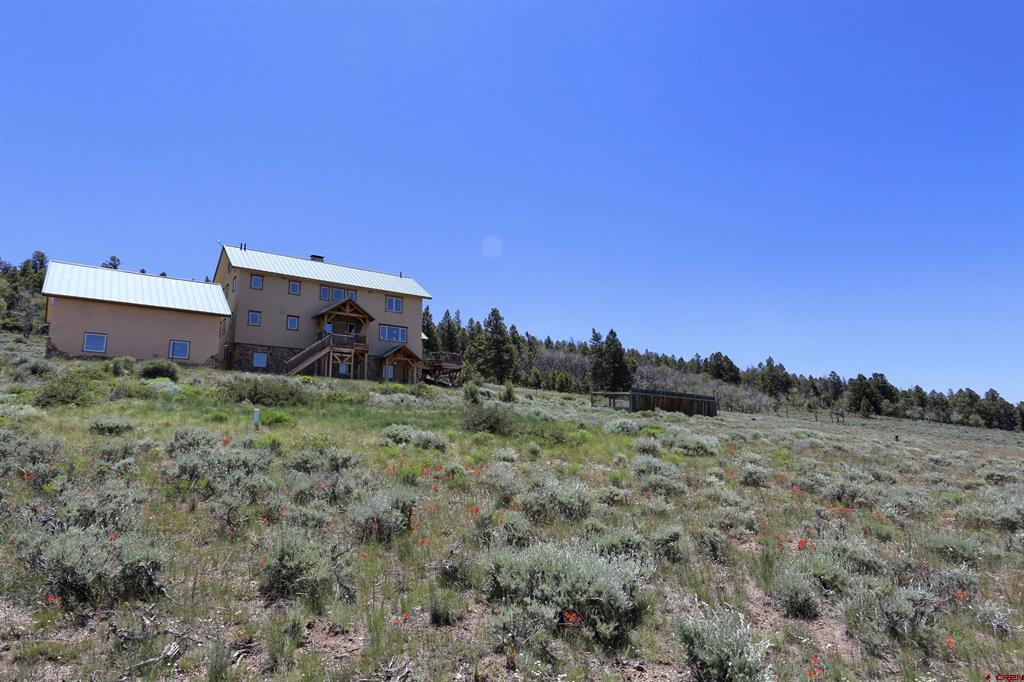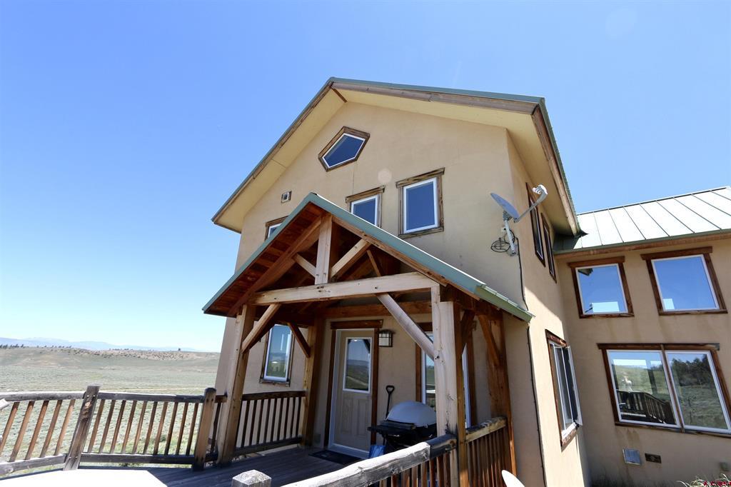 Welcome to the breathtaking property located just 10 miles from the Blue Mesa Reservoir and the IOLA boat ramp, offering a remarkable living experience like no other. This exceptional home, designed and assembled by one of the originators of the Timber Framers Guild, stands on an expansive 40-acre lot, providing a perfect blend of natural beauty and masterful craftsmanship. As you step inside, you'll immediately be captivated by the exquisite timber frame construction that sets this residence apart. The use of polyurethane SIPS ensures superior insulation, while the triple pane windows invite abundant natural light and picturesque views of the surrounding landscape. You'll also appreciate the added warmth in the winter from the in-floor radiant heat system. The walkout basement is constructed of insulated concrete forms (ICF), providing a warm and dry space. The integration of solar panels showcases a commitment to sustainability, reducing energy costs and minimizing environmental impact. A central highlight of this home is the stunning masonry fireplace, serving as a major feature and focal point. Its grandeur adds warmth and charm to the living space, creating an inviting atmosphere for relaxation and gatherings. The attention to detail and quality of construction make this property one of the finest constructed homes in Gunnison County. For nature enthusiasts and avid hunters, this home's location in the Big Game Hunting Unit, GMU 66, presents an unparalleled opportunity. Whether you envision it as your private hunting lodge or as a base for exploring the great outdoors, this property caters to your adventurous spirit. The layout of the residence offers versatility and potential for various living arrangements. With three spacious bedrooms, each featuring private bathrooms and large closets, comfort and privacy are ensured. The walkout basement/lock-off area boasts two private entrances, providing separate living quarters with a generous bedroom space, a living area, and its own masonry fireplace. In addition to the main house, the property includes a two-car garage with unfinished space above. This area presents endless possibilities, allowing you to transform it into a gym, office, recreation room, or even another rental unit. The potential for customization and expansion is truly limitless. Imagine waking up to the serenity of nature, embarking on thrilling hunting expeditions, and retreating to the comfort of this remarkable home. Don't miss the chance to make this property your own and create unforgettable memories in this idyllic corner of Powderhorn, CO.
