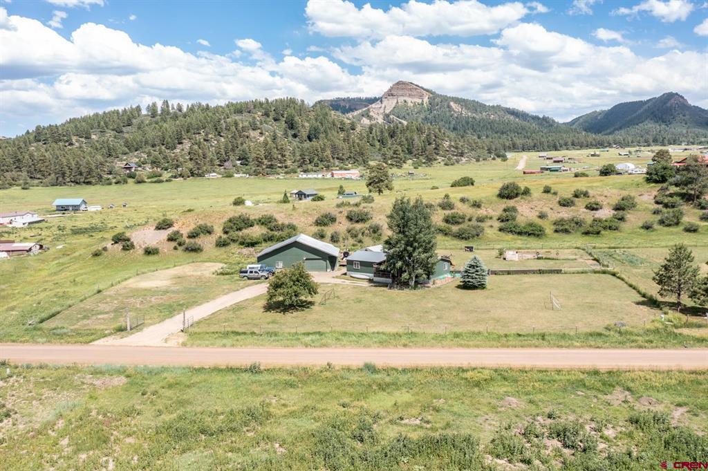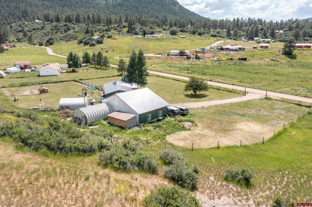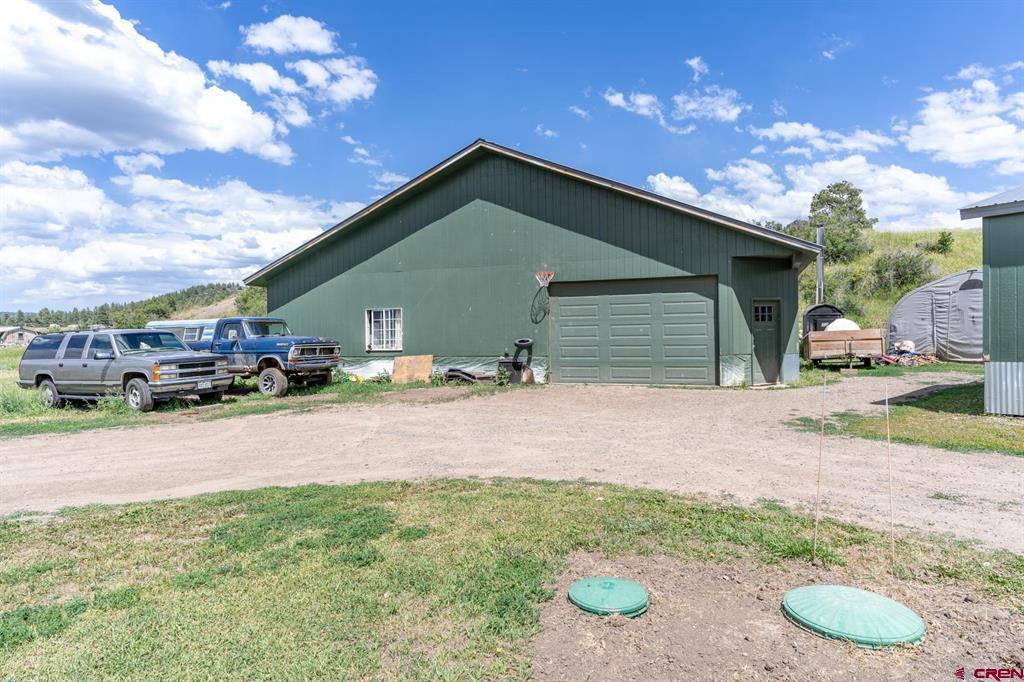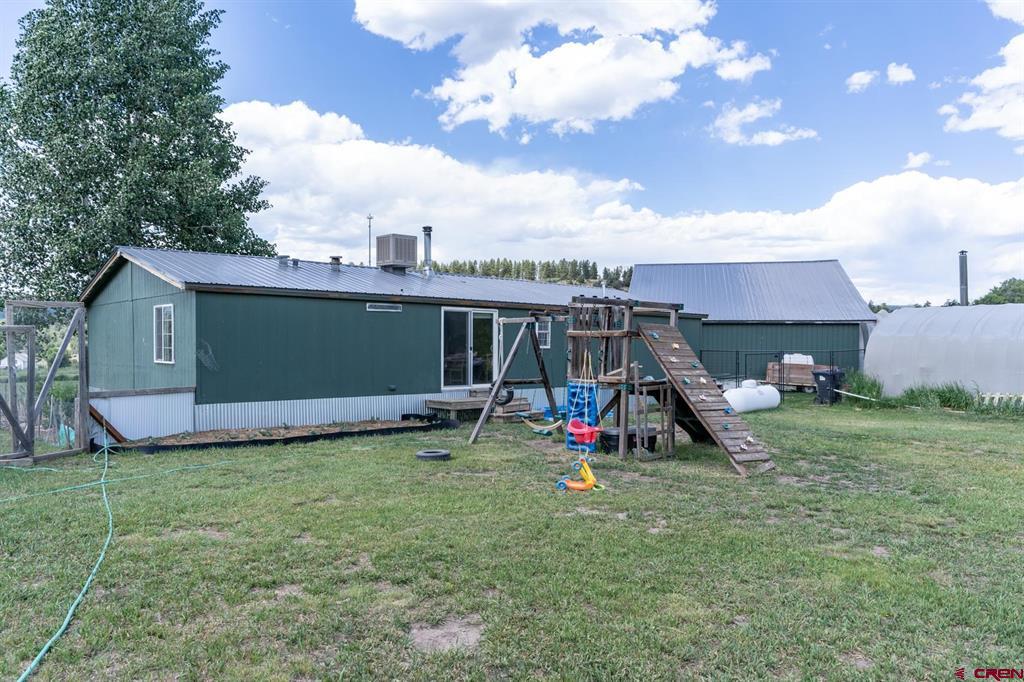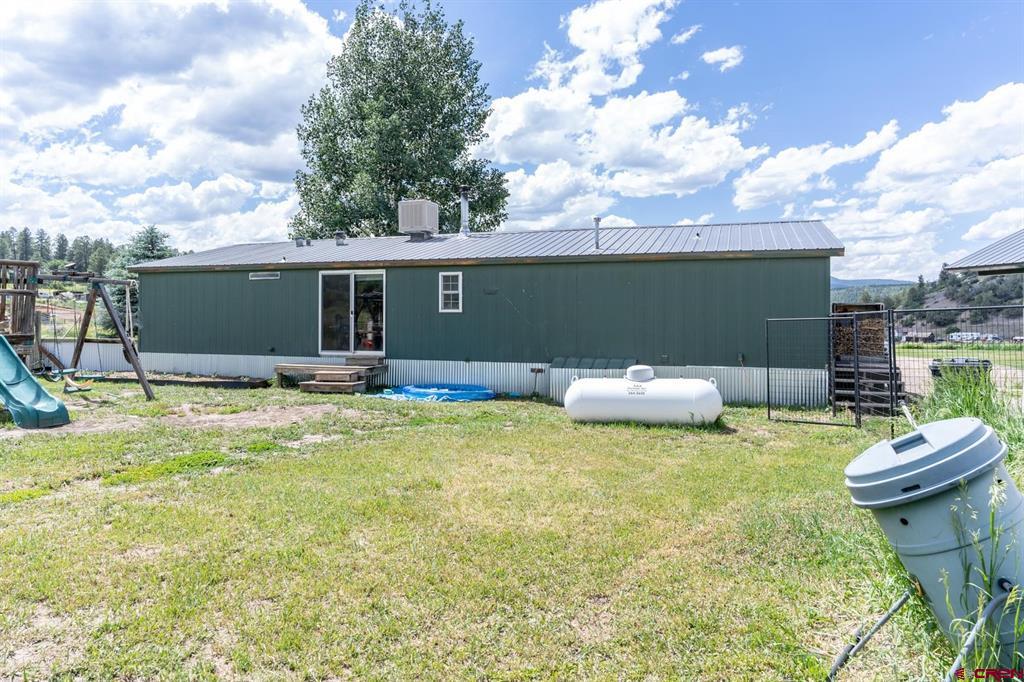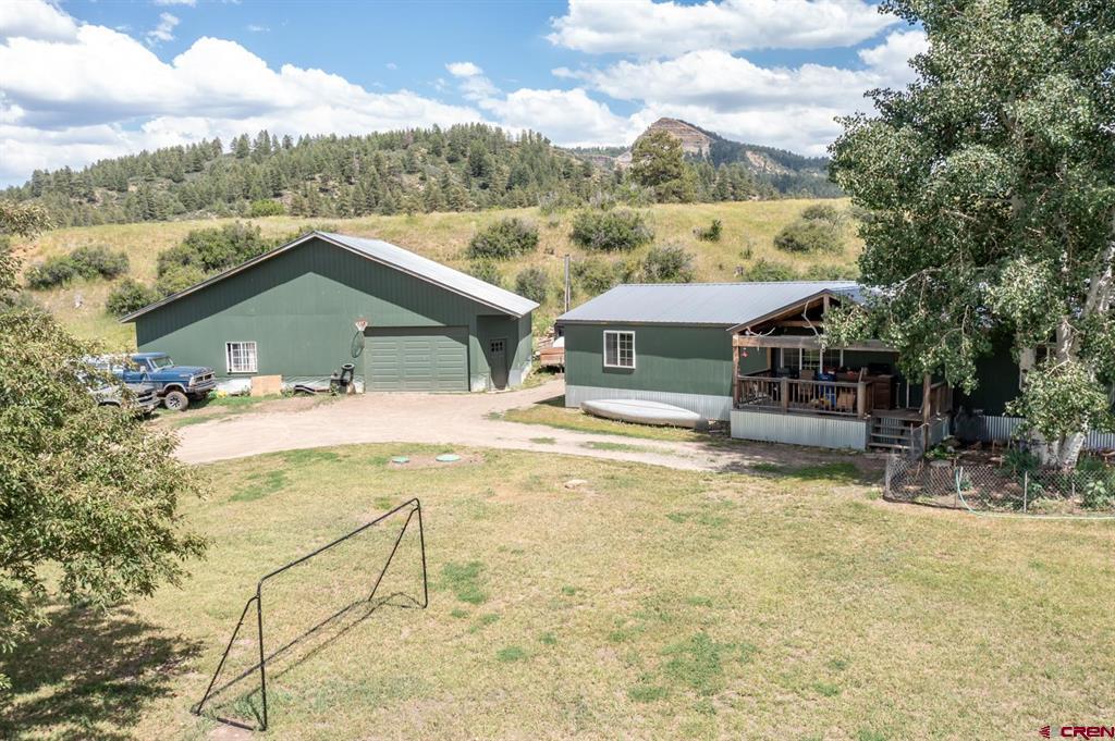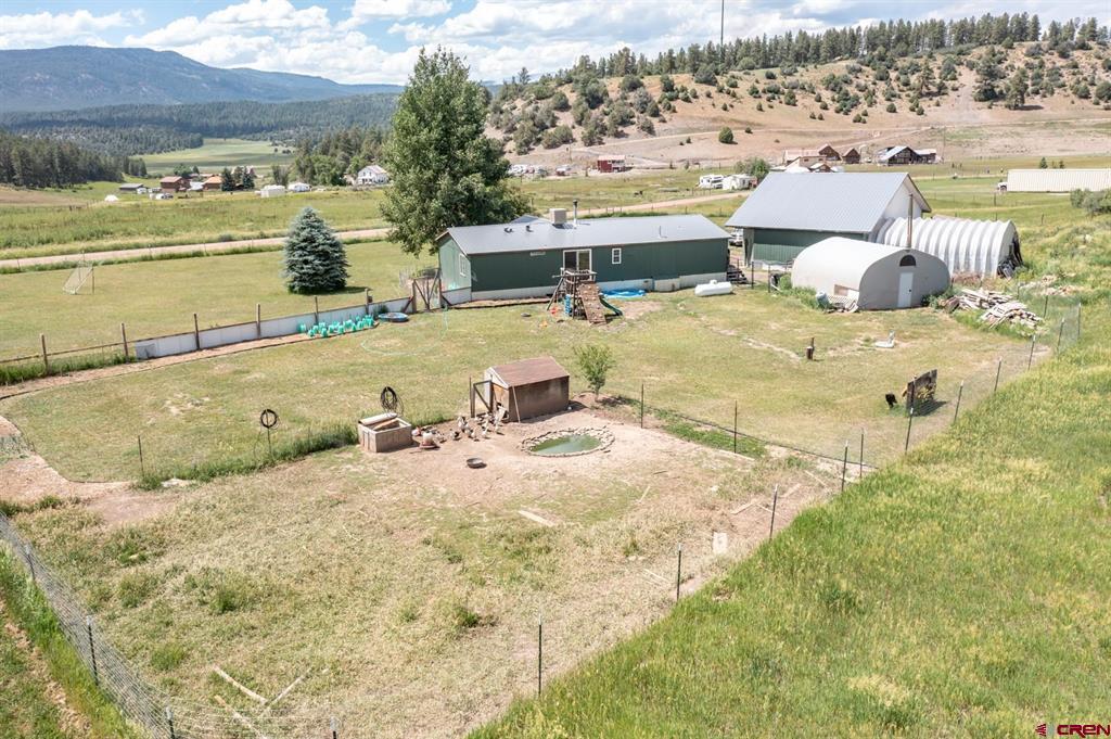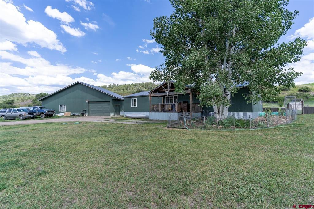 Views, room to stretch out, and a shop of your dreams! All right here in the Aspen Springs subdivision in Pagosa Springs. The location is the perfect spot, just minutes from downtown Pagosa and yet only 30 minutes to Bayfield. The views of the valley are endless. As you pull in to this property, you will notice the large, manicured, fenced in lawn with trees, gardens, and a fenced in play area for the kids or pets. Don't forget the area for the dogs and the coop for the chickens (or ducks!) You will also be impressed with the huge shop that is heated and ready for your work, storage, or hobbies! Inside the house, you will be greeted by a large living room, dining area, and kitchen. Notice the impressive wood stove that you can use to heat the house, cook on the stovetop or cook in the oven. It keeps the whole house warm! There are two bedrooms with a shared bathroom on one end of the home and the main bedroom at the other wing of the house has an ensuite bathroom. The home is supplied by a well, which pumps into a 1,300 gallon cistern for storage, then pumps to the house.