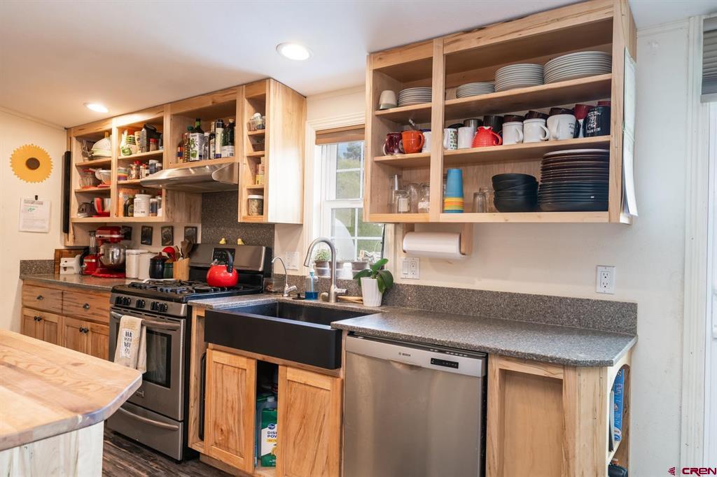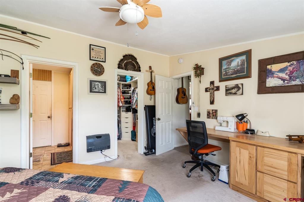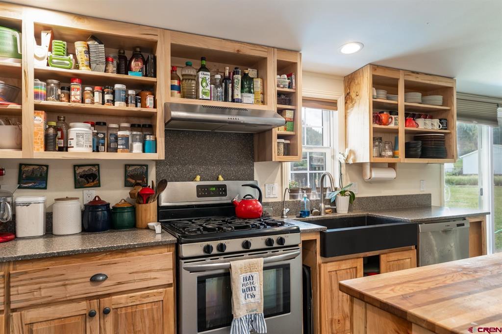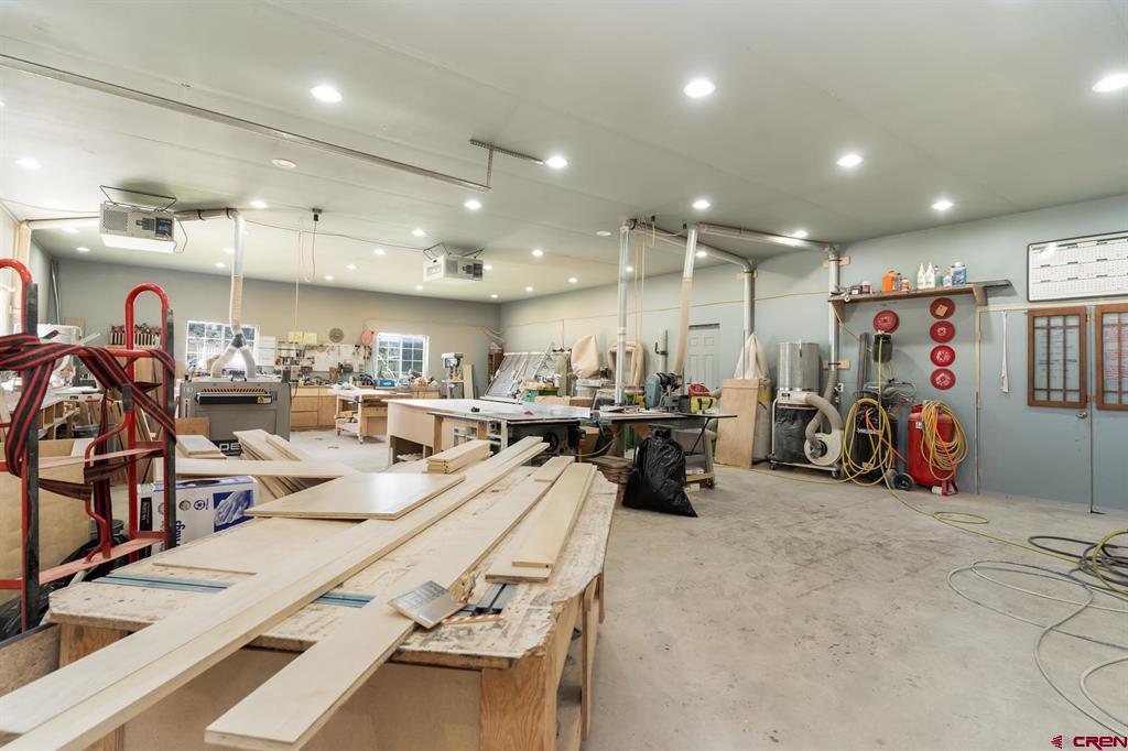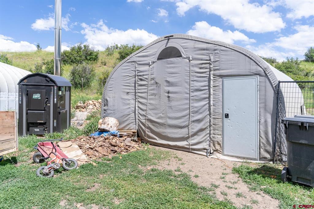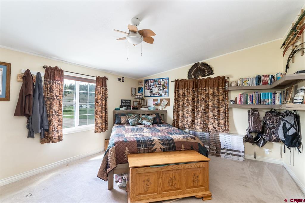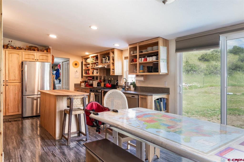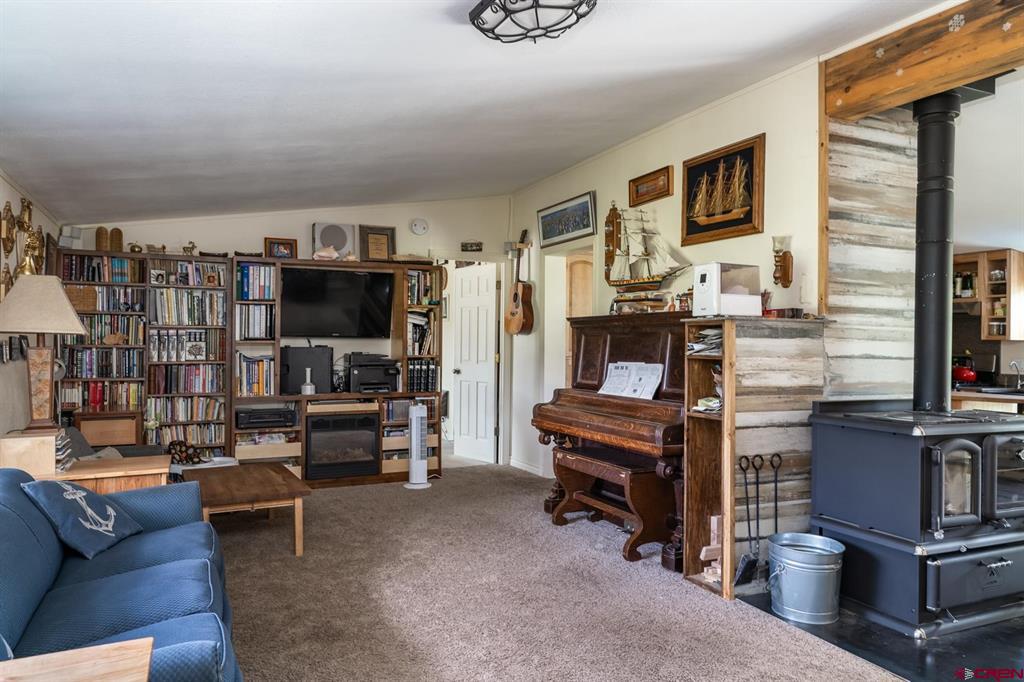 Views, room to stretch out, and a shop of your dreams! All right here in the Aspen Springs subdivision in Pagosa Springs. The location is the perfect spot, just minutes from downtown Pagosa and yet only 30 minutes to Bayfield. The views of the valley are endless. As you pull in to this property, you will notice the large, manicured, fenced in lawn with trees, gardens, and a fenced in play area for the kids or pets. Don't forget the area for the dogs and the coop for the chickens (or ducks!) You will also be impressed with the huge shop that is heated and ready for your work, storage, or hobbies! Inside the house, you will be greeted by a large living room, dining area, and kitchen. Notice the impressive wood stove that you can use to heat the house, cook on the stovetop or cook in the oven. It keeps the whole house warm! There are two bedrooms with a shared bathroom on one end of the home and the main bedroom at the other wing of the house has an ensuite bathroom. The home is supplied by a well, which pumps into a 1,300 gallon cistern for storage, then pumps to the house.