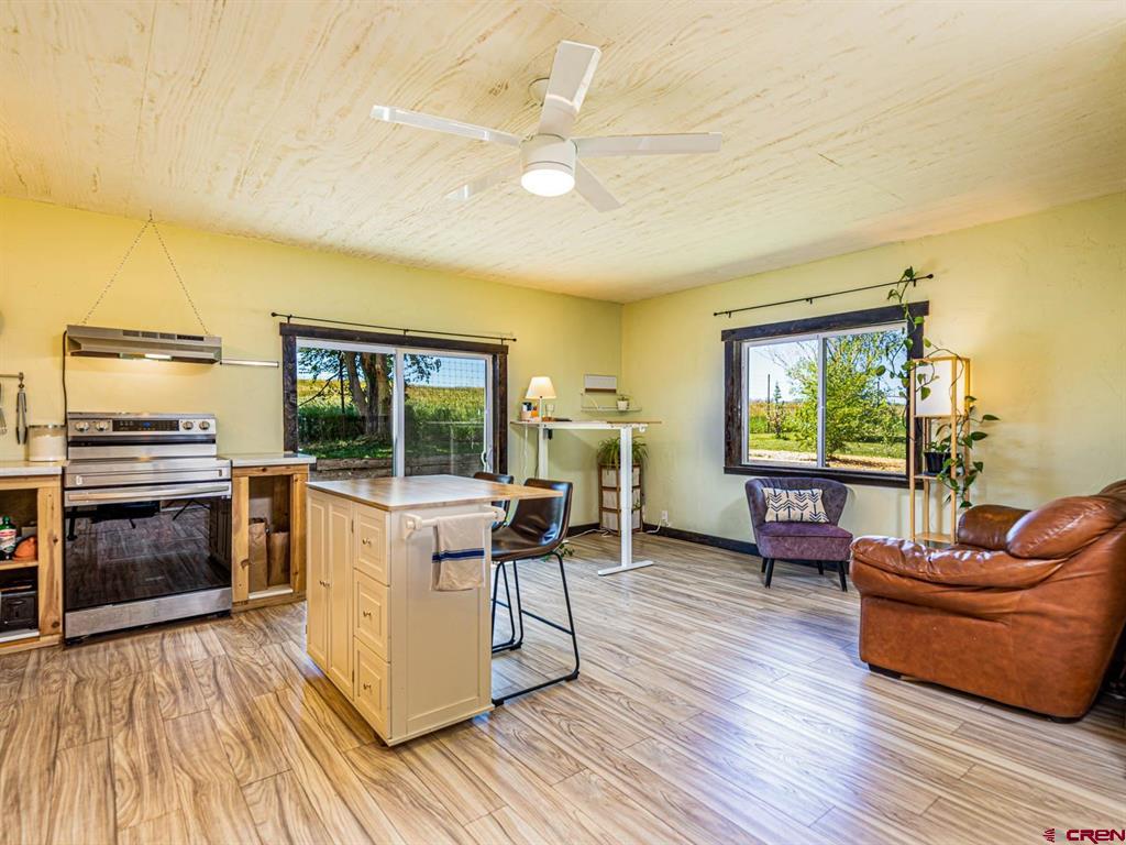 Welcome to this traditional 1-story home located near the beautiful town of Crawford, Colorado. With its 3 bedrooms and 2 bathrooms, this home has plenty of space for the whole family. One of the standout features of this property is the master bedroom suite, which has additional living space including a 2nd kitchen and could be separated and rented separately, making it a fantastic income property opportunity. The interior of the home is equally impressive, featuring an island L-shaped kitchen with stainless appliances and an open floor plan with vaulted ceilings. Additionally, the living room boasts a wood-burning stove, perfect for cozy evenings in. Exterior highlights of this home include a stunning shaded porches and patios, perfect for enjoying the picturesque views of the West Elk Mountains. The spacious yard is beautifully landscaped with shade trees, and there is even a garden area for those with a green thumb. The property also includes irrigation water, a greenhouse, tool shed, additional out buildings and animal shelters and pens, making it an ideal space for those who love gardening or keeping animals. The 2-car attached garage provides ample parking and storage space for all your needs. Situated on a 1.24-acre residential lot, this home offers a peaceful country setting surrounded by irrigated farm ground. The region of Crawford, Colorado is known for its proximity to mountain recreation and breathtaking landscapes. Outdoor enthusiasts will delight in the countless activities available nearby, such as exploring the Black Canyon of the Gunnison, partaking in excellent big game hunting, or enjoying a day of fishing at Crawford Reservoir. The area also boasts world-class fly fishing opportunities in the nearby gold-medal waters of the Gunnison River. For those traveling from afar, Grand Junction Regional Airport is less than 2 hours away, adding convenience to this already desirable location. Don't miss out on the chance to own this incredible country home for sale with income potential in Crawford, Colorado.