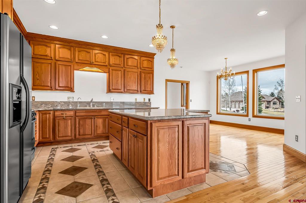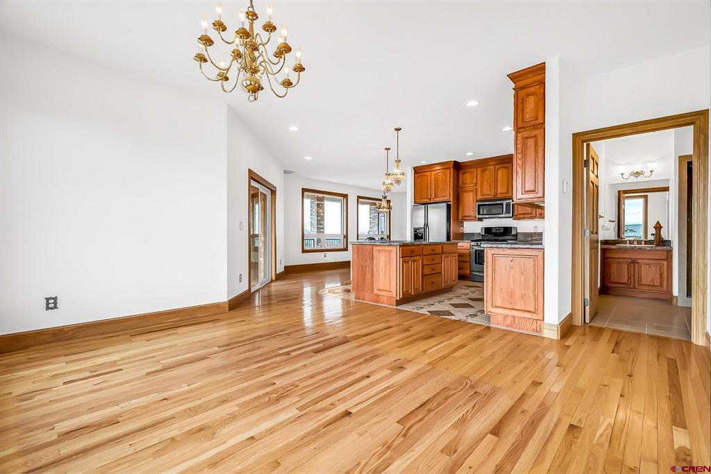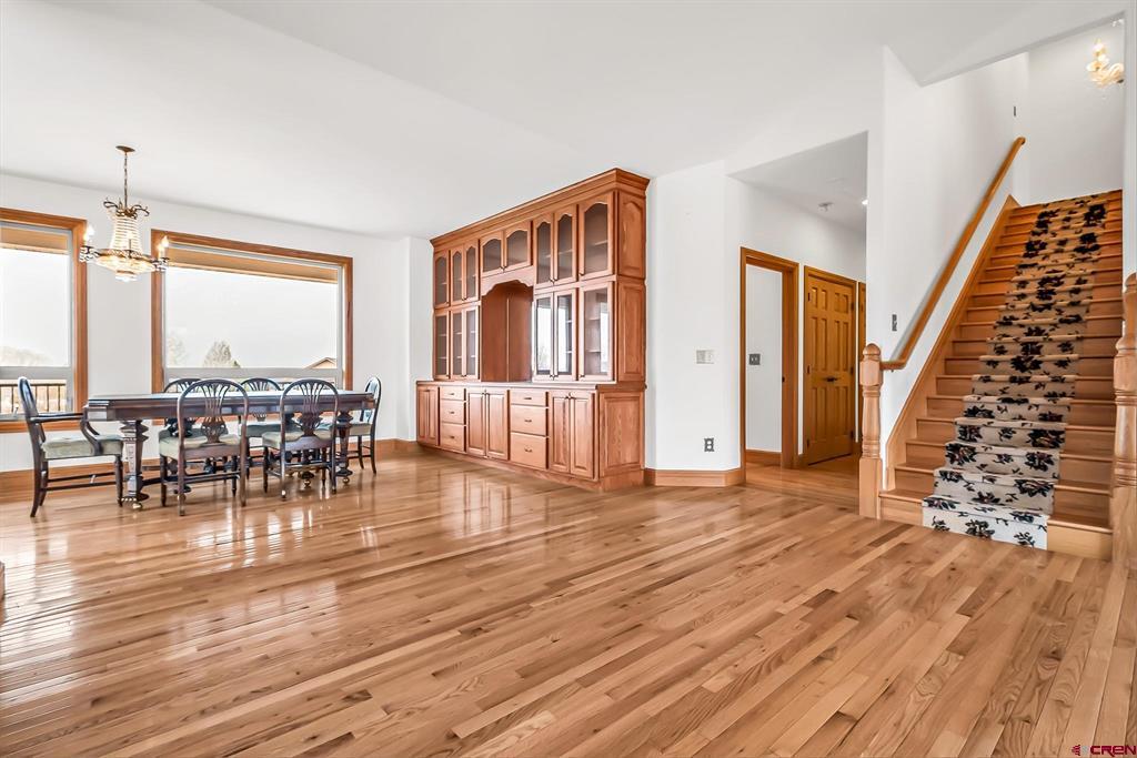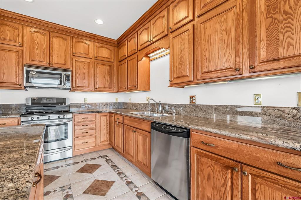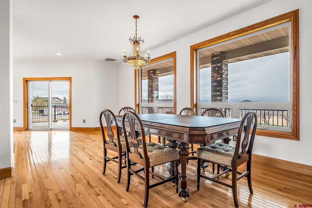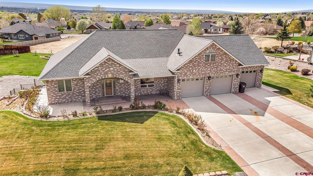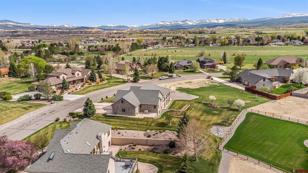 GRAND LUXURY HOME WITH VAST OPEN SPACES AND BREATHTAKING MOUNTAIN VIEWS. Step into this magnificent estate, a dream dwelling spanning an impressive 4,946 sq. ft. nestled on a beautifully manicured 1-acre double lot. This majestic 2-story residence, complete with a walk-out basement and a bonus 392 sq ft room over a 3-car garage, is a rare find that perfectly blends luxury and versatility. As you enter, you are greeted by a spacious, welcoming foyer leading into the living room that boasts solid wood flooring and a cozy gas fireplace, the first of two in the residence. The elegant stairway in the living area ascends to a sizable bonus room that offers limitless potential to become a game room, office, studio or more. Feast your eyes on the ‘eat-in’ kitchen, a cook's delight with granite countertops, stainless steel appliances, a functional island, abundant cabinetry, and a uniquely patterned tile floor. Adjoining the kitchen is a separate formal dining area complemented by a built-in hutch, creating a seamless blend for all your entertaining needs. Sliding glass doors from the kitchen open up to a spectacular wrap-around deck with sturdy wrought iron railing, offering stunning views of the San Juan mountain range – the perfect backdrop for your morning coffee or sunset dinners. On the lower level, indulge in the comfort of a spacious family room that features a second gas fireplace and separate access to the ground floor patio. This level also offers two large bedrooms, an expansive tiled storage room and additional storage under the stairwell. Your living space extends to the manicured outdoor oasis, including two half-acre lots both with water taps. The homeowner's association provides irrigation water to ensure your landscape stays lush and vibrant. The additional lot can be developed further, or sold separately, presenting a unique investment opportunity. Located in a highly desirable area with easy access to local amenities, such as the Montrose Recreation Center, shopping, dining, and medical, this home is not only a luxurious retreat but also a smart investment. Don't miss the chance to own this crown jewel – an elegant fusion of space, class, and convenience. Contact us today to schedule a private viewing.