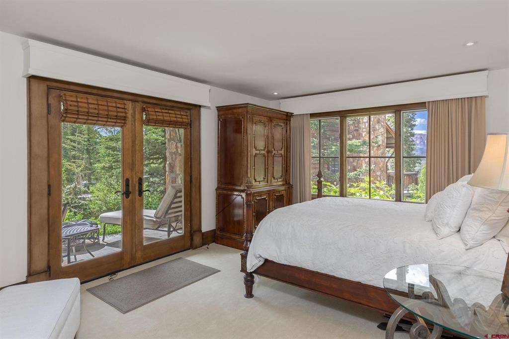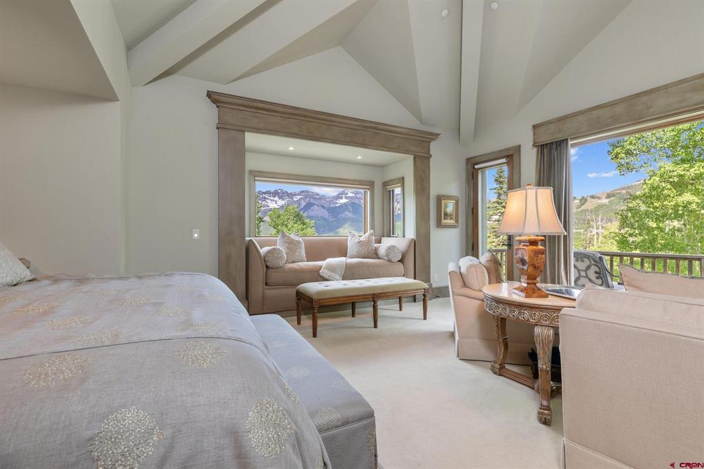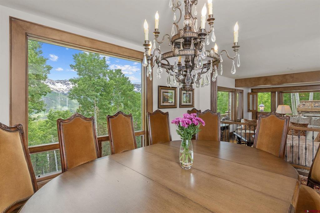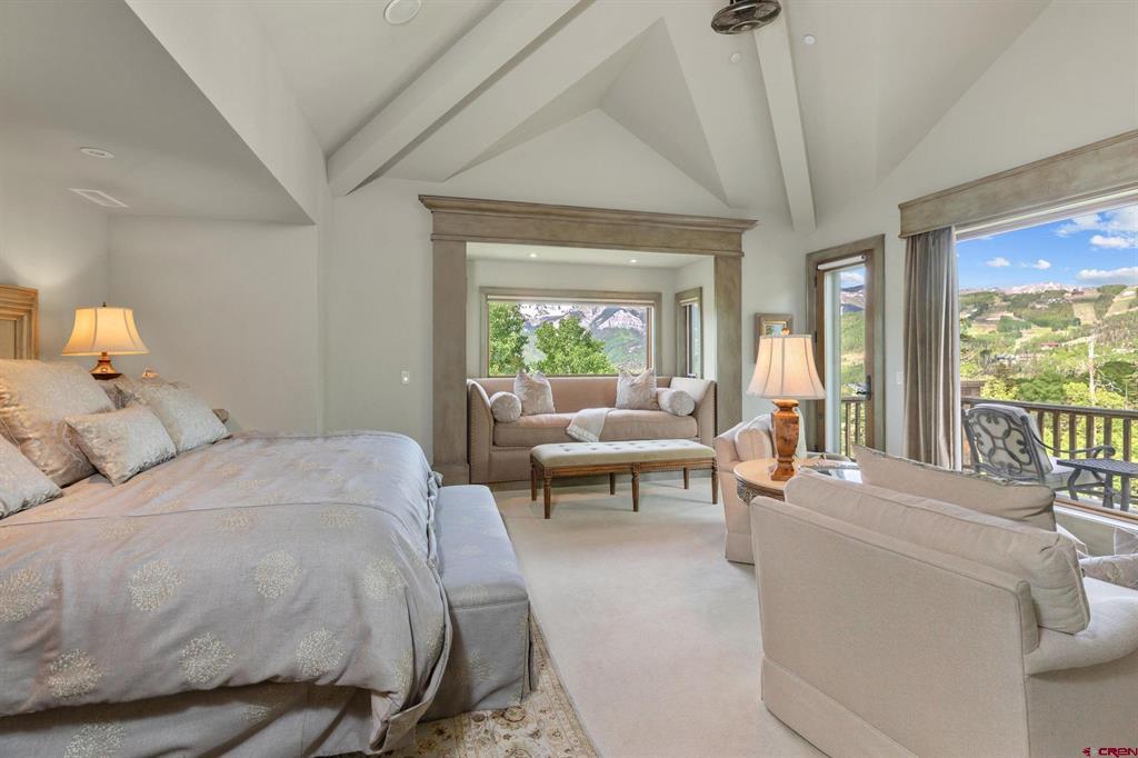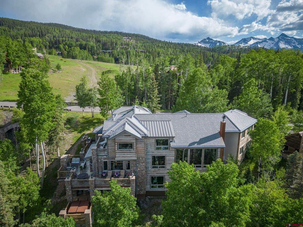 This extraordinary home presents an unrivaled opportunity to own a stunning mountain retreat with direct ski access to the the Bridges ski run. Boasting captivating views of the San Sofia range and the Telluride Ski Area, this home offers an idyllic combination of tranquility and adventure. Step into luxury as you enter the 6,734 square foot main residence. This meticulously crafted home features 5 spacious bedrooms, 5 beautifully appointed bathrooms and two half baths. Complementing the main residence is a charming guest house complete with its own kitchen, living area, two bedrooms and one bath. Each room is designed to embrace natural light and maximize the breathtaking mountain views.