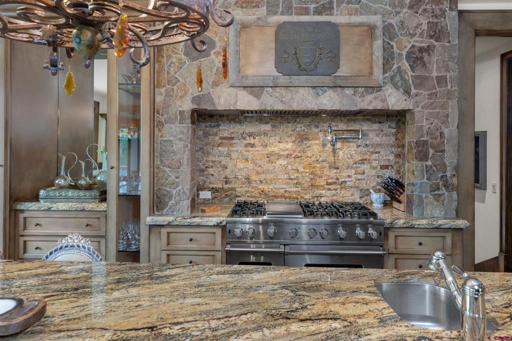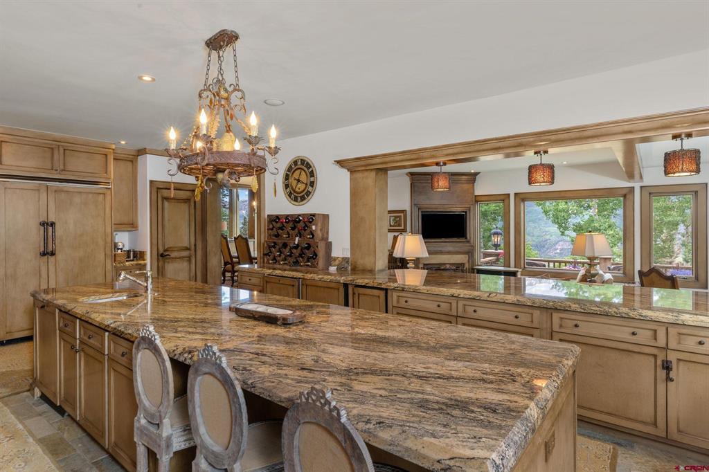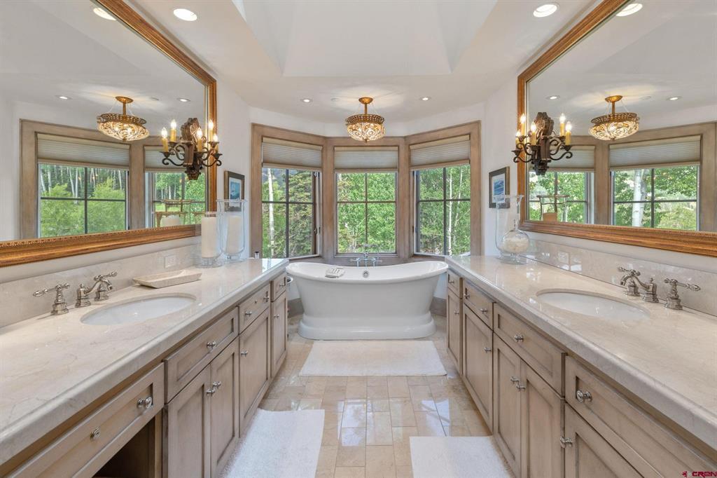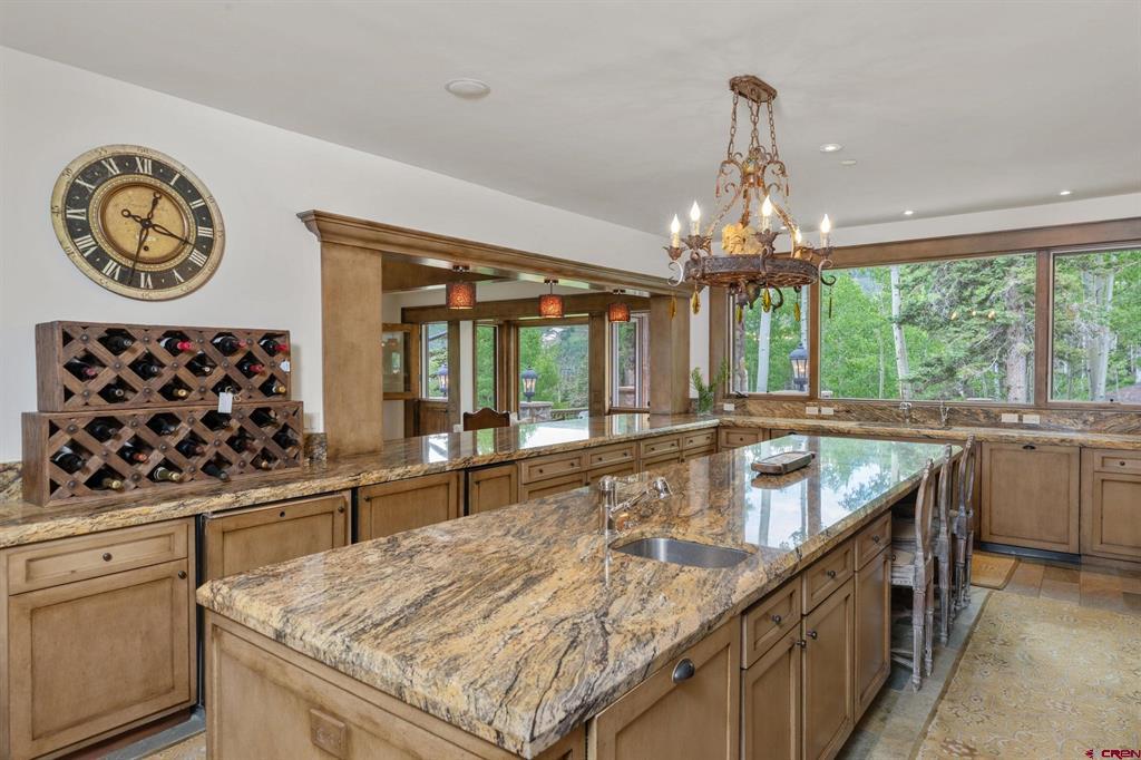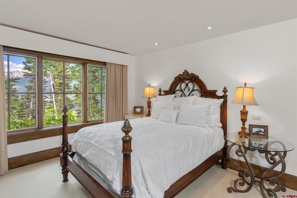 This extraordinary home presents an unrivaled opportunity to own a stunning mountain retreat with direct ski access to the the Bridges ski run. Boasting captivating views of the San Sofia range and the Telluride Ski Area, this home offers an idyllic combination of tranquility and adventure. Step into luxury as you enter the 6,734 square foot main residence. This meticulously crafted home features 5 spacious bedrooms, 5 beautifully appointed bathrooms and two half baths. Complementing the main residence is a charming guest house complete with its own kitchen, living area, two bedrooms and one bath. Each room is designed to embrace natural light and maximize the breathtaking mountain views.