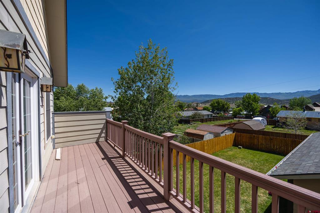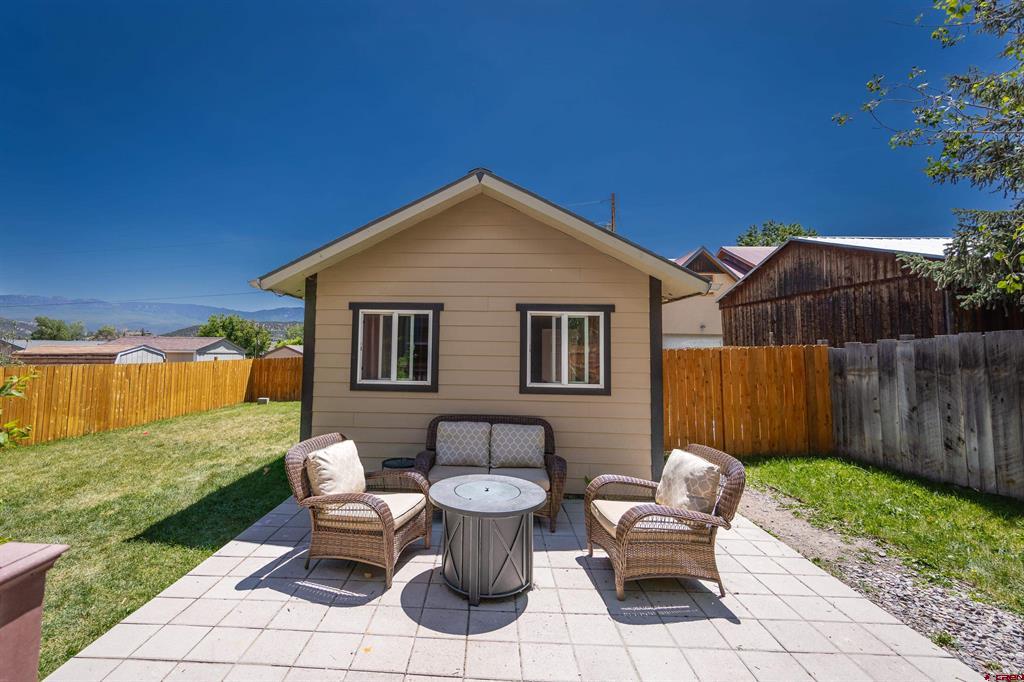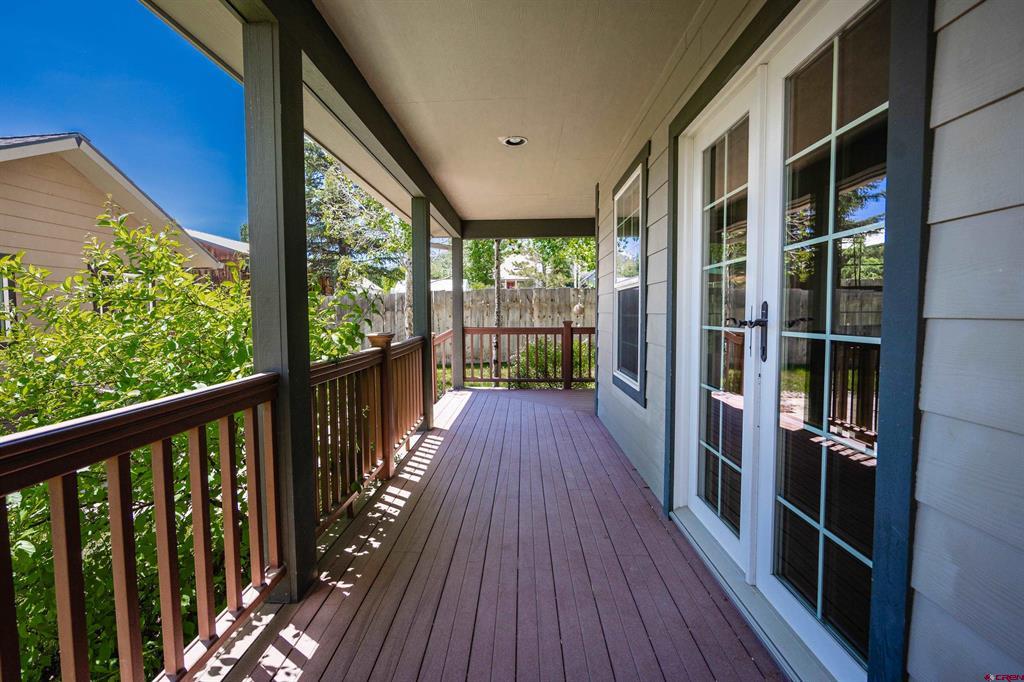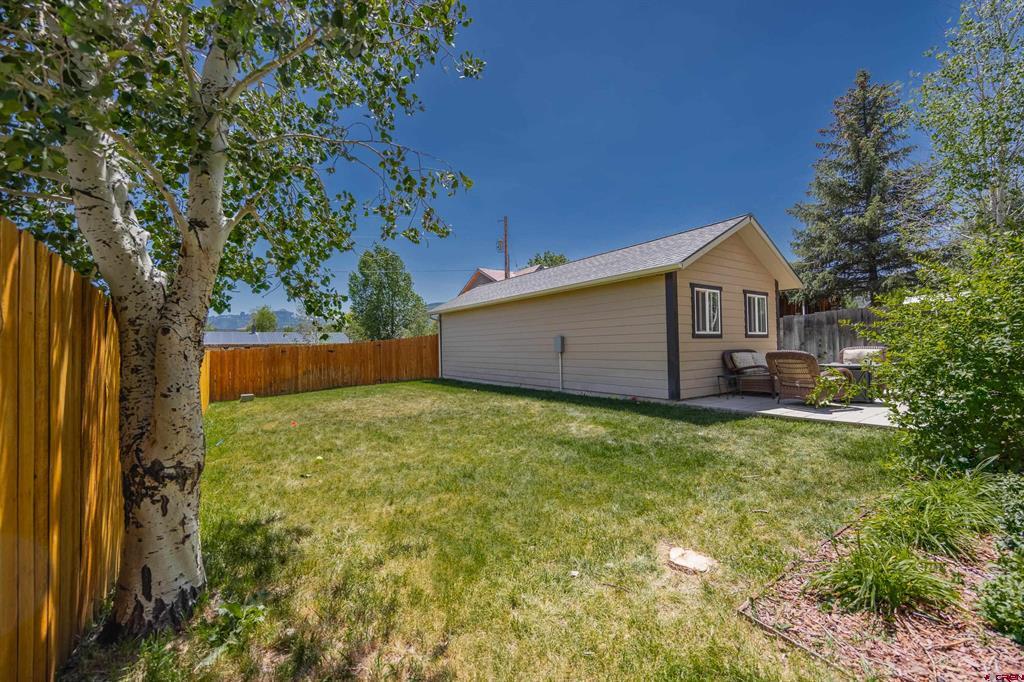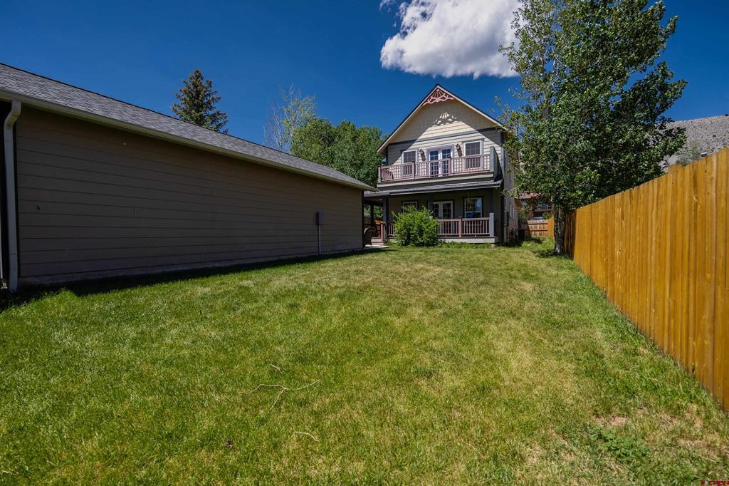 Located in-town and only a few blocks from Ridgway's stores, parks and trails. This 3 bedroom 2 bathroom home has a wrap around porch, fully fenced in yard, in ground sprinklers and a 1 car detached garage. The garage is plumbed and ready for you to build a ADU or workshop. There are a ton of possibilities! The open floor plan is perfect for entertaining guests. There are two bedrooms, a full bathroom and laundry room on the main floor. The master suite upstairs has its own private deck with amazing views, a walk in closet and a spacious master bath. This home has a double lot with a huge yard for the whole family to enjoy!