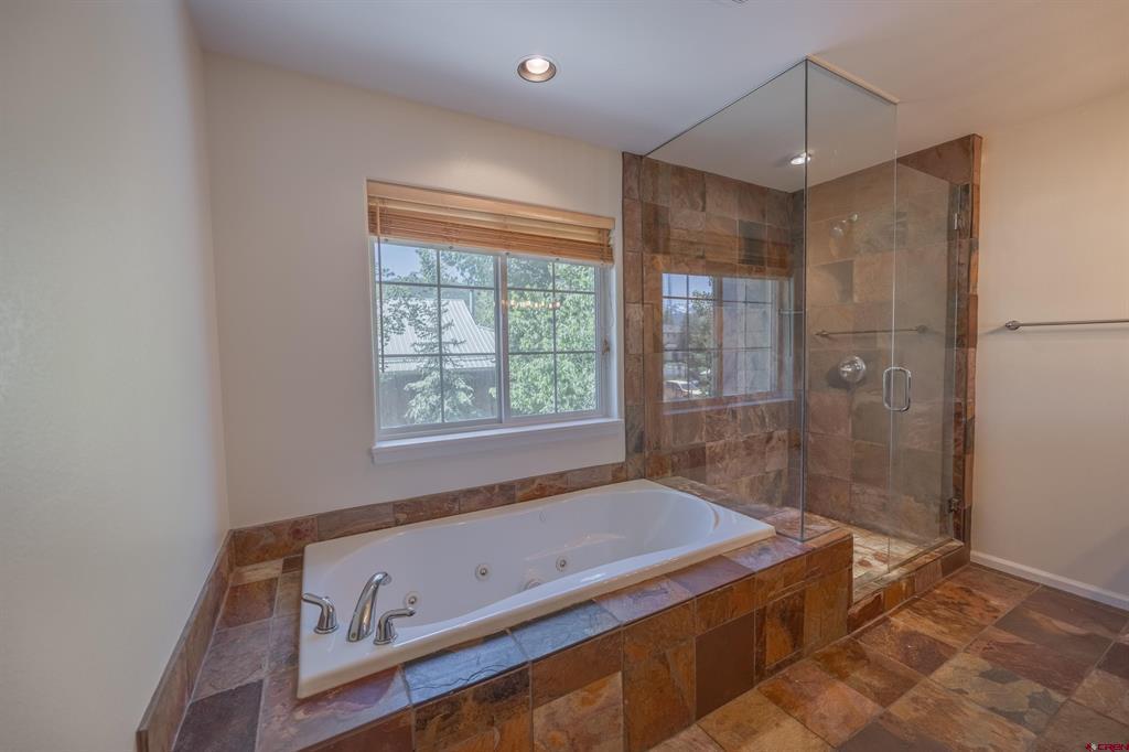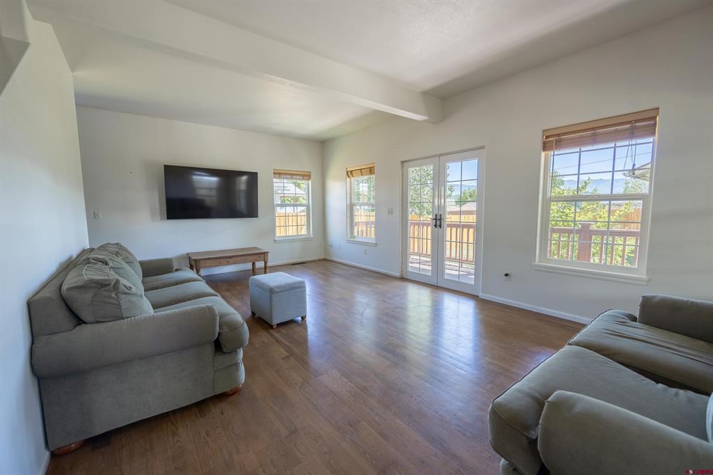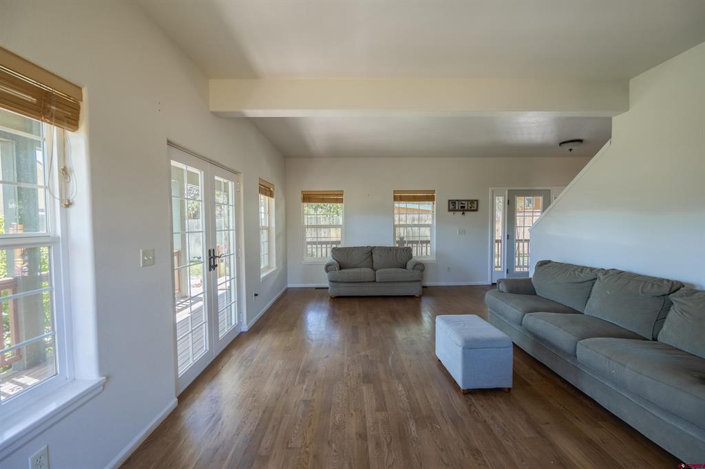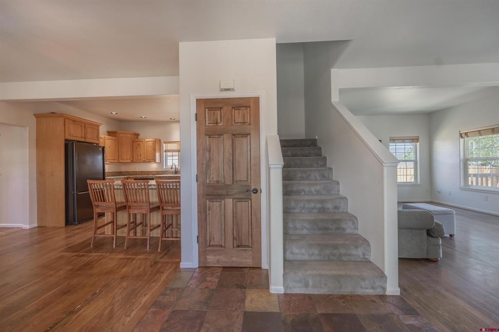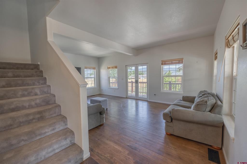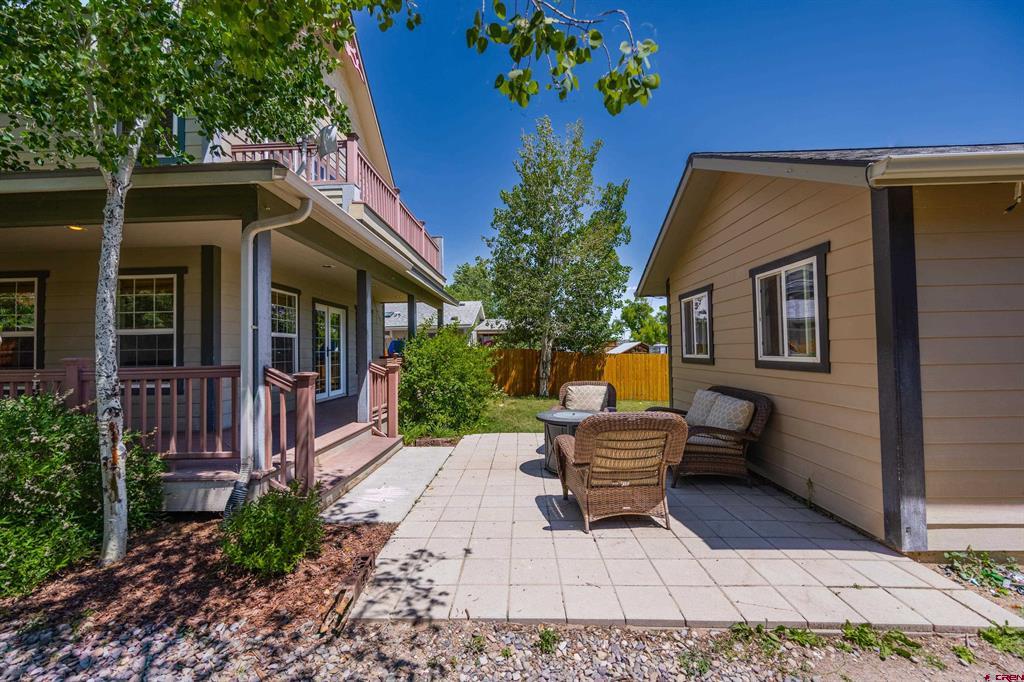 Located in-town and only a few blocks from Ridgway's stores, parks and trails. This 3 bedroom 2 bathroom home has a wrap around porch, fully fenced in yard, in ground sprinklers and a 1 car detached garage. The garage is plumbed and ready for you to build a ADU or workshop. There are a ton of possibilities! The open floor plan is perfect for entertaining guests. There are two bedrooms, a full bathroom and laundry room on the main floor. The master suite upstairs has its own private deck with amazing views, a walk in closet and a spacious master bath. This home has a double lot with a huge yard for the whole family to enjoy!