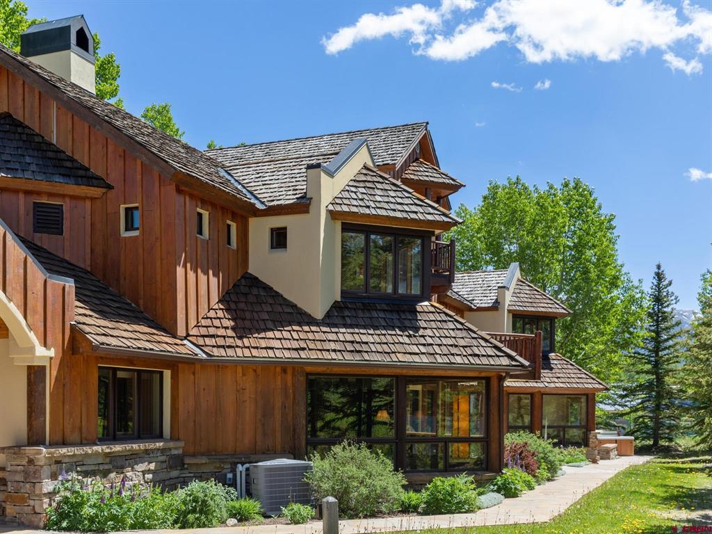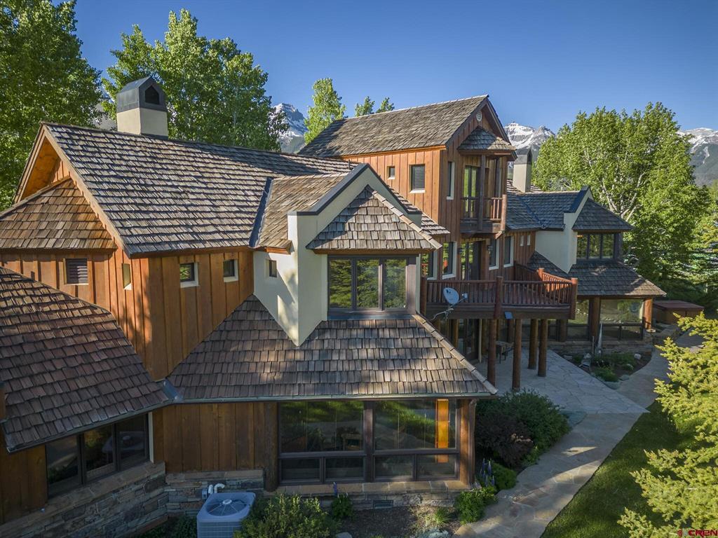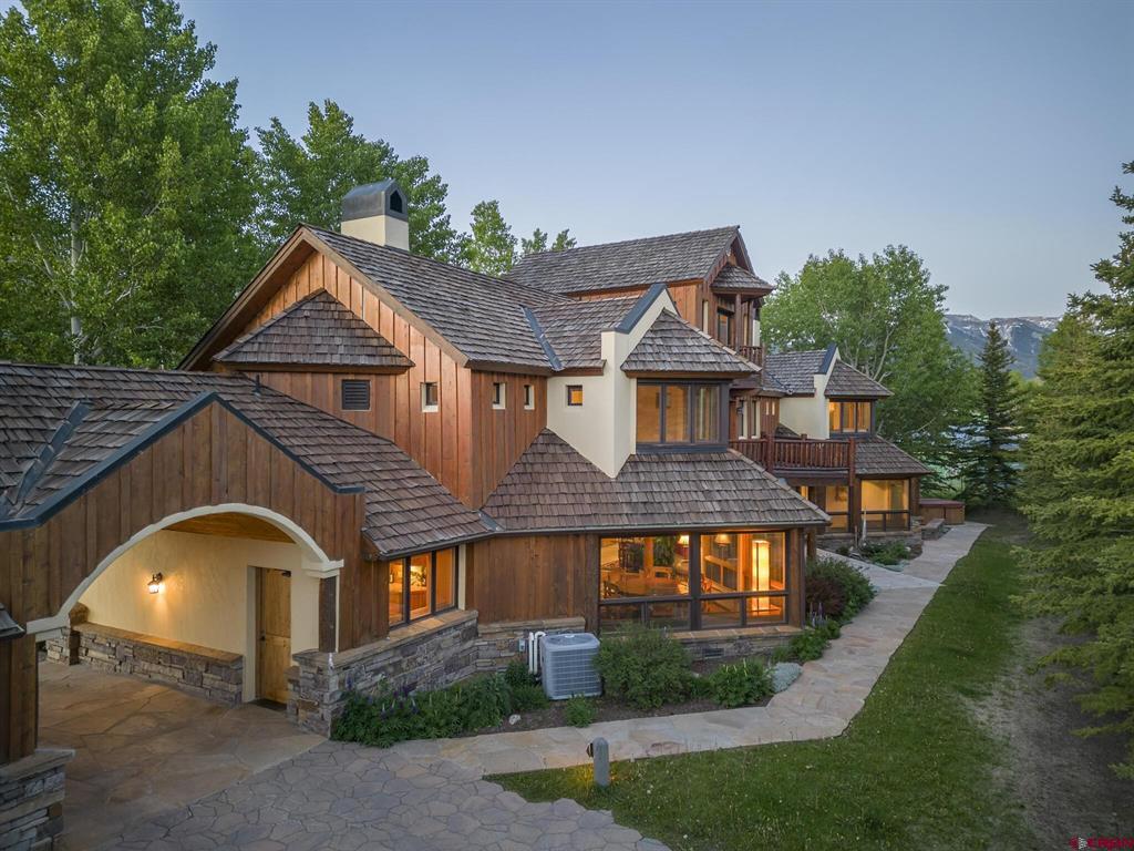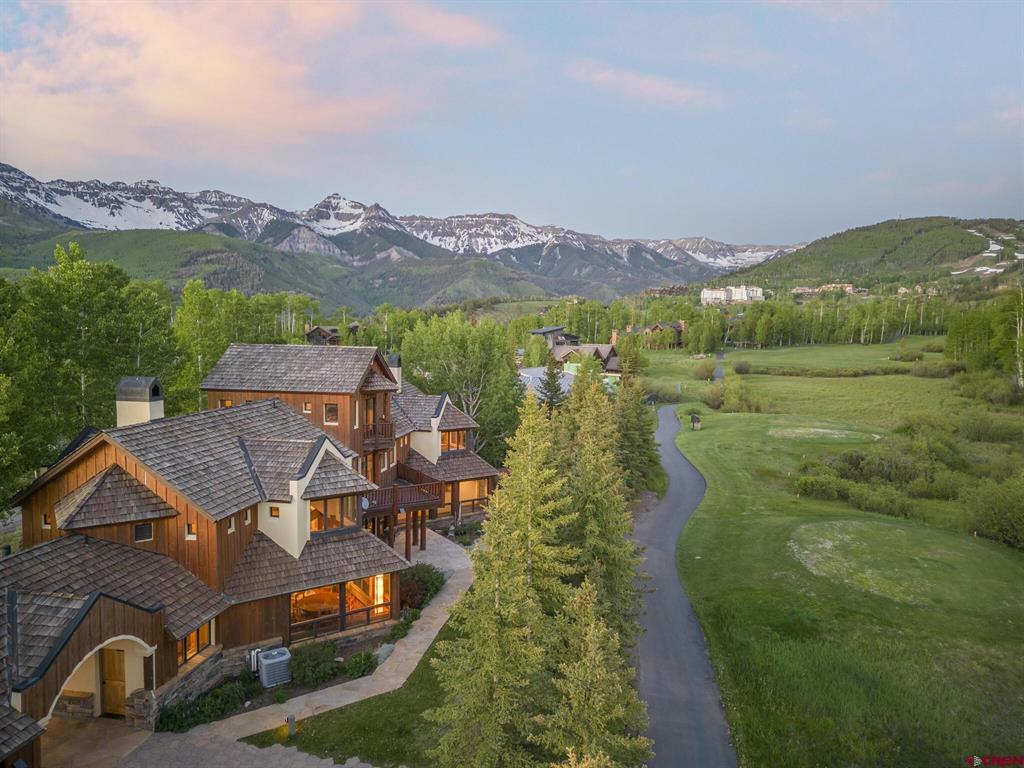 Nestled on the prestigious Russell Drive, this remarkable Mountain Village home enjoys sun-soaked seclusion on the Telluride golf course. With the 15th tee box and winter cross country trails steps away, this spacious residence offers six bedrooms and seven bathrooms perfect for family living and entertaining. The well-appointed kitchen boasts commercial grade appliances, while a covered pathway connects to a roomy garage. Every room showcases panoramic views of the surrounding mountains. The primary bedroom is a tranquil retreat with a cozy fireplace, comfortable seating, and breathtaking vistas. Updates include an oxygen system and cutting-edge AV upgrades, enhancing the home's living experience. Discover the fusion of luxury and functionality in this extraordinary abode today!