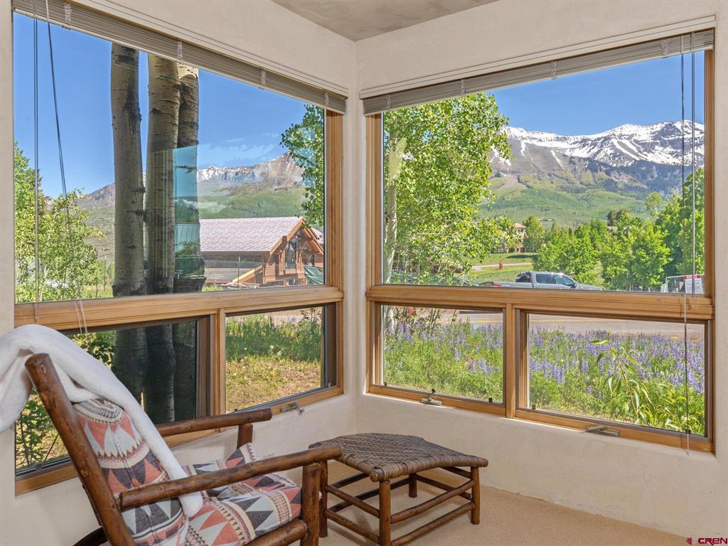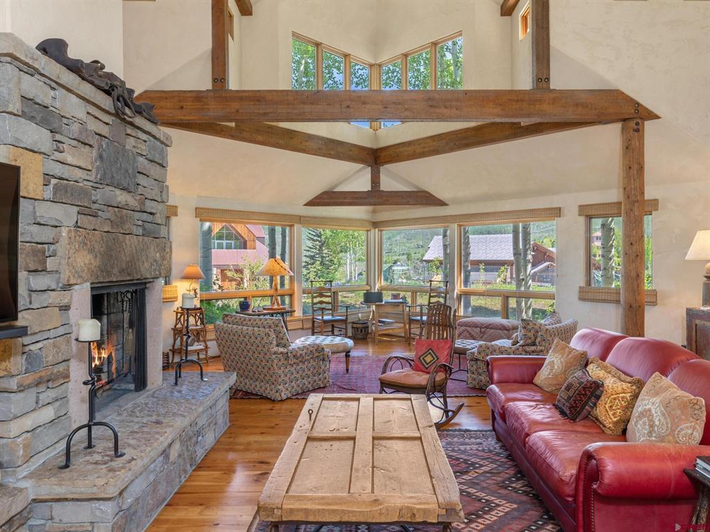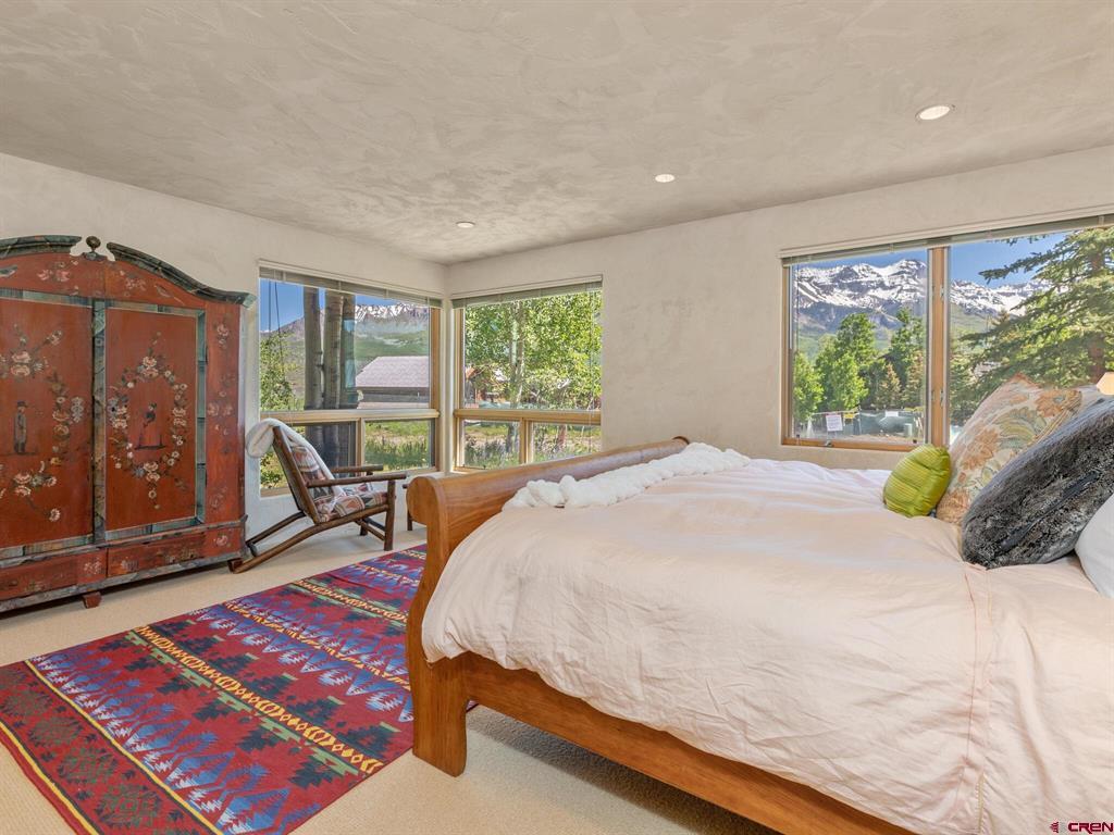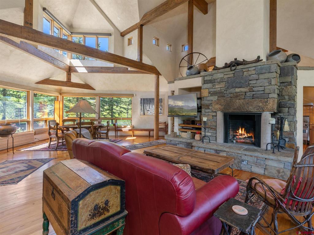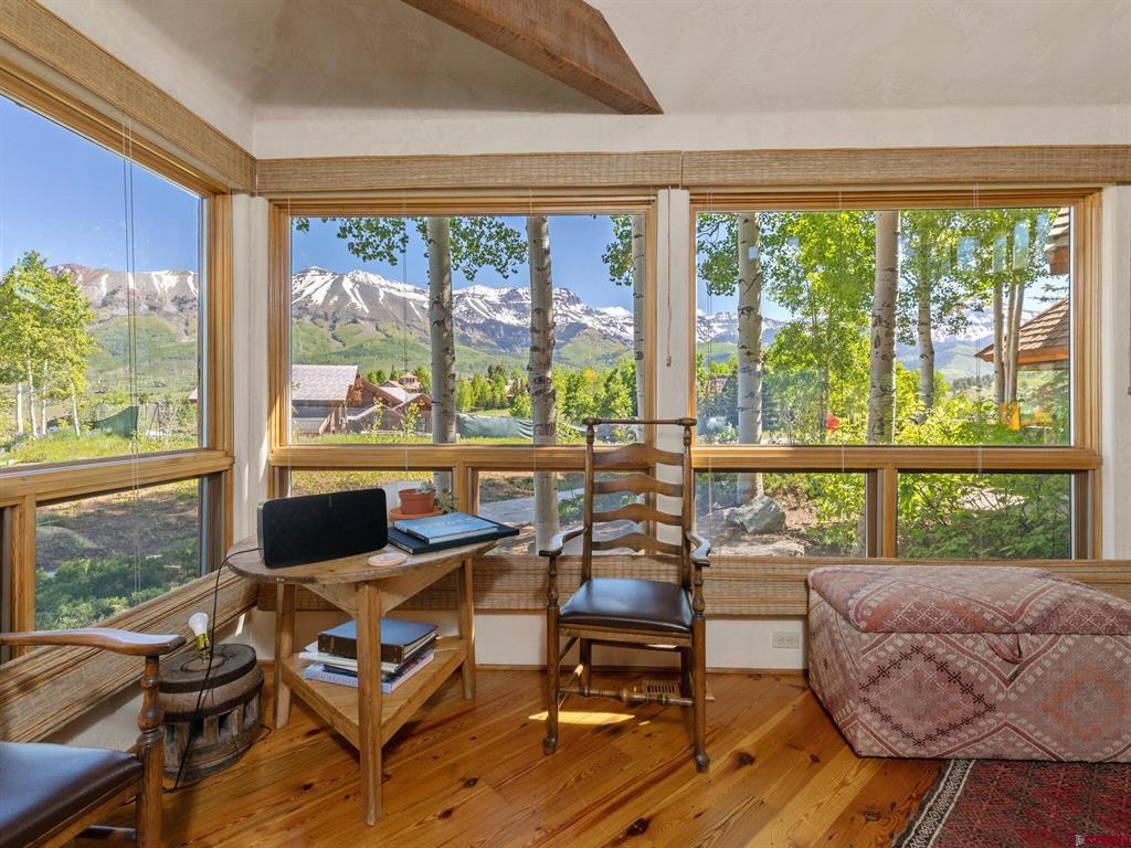 Nestled on the prestigious Russell Drive, this remarkable Mountain Village home enjoys sun-soaked seclusion on the Telluride golf course. With the 15th tee box and winter cross country trails steps away, this spacious residence offers six bedrooms and seven bathrooms perfect for family living and entertaining. The well-appointed kitchen boasts commercial grade appliances, while a covered pathway connects to a roomy garage. Every room showcases panoramic views of the surrounding mountains. The primary bedroom is a tranquil retreat with a cozy fireplace, comfortable seating, and breathtaking vistas. Updates include an oxygen system and cutting-edge AV upgrades, enhancing the home's living experience. Discover the fusion of luxury and functionality in this extraordinary abode today!