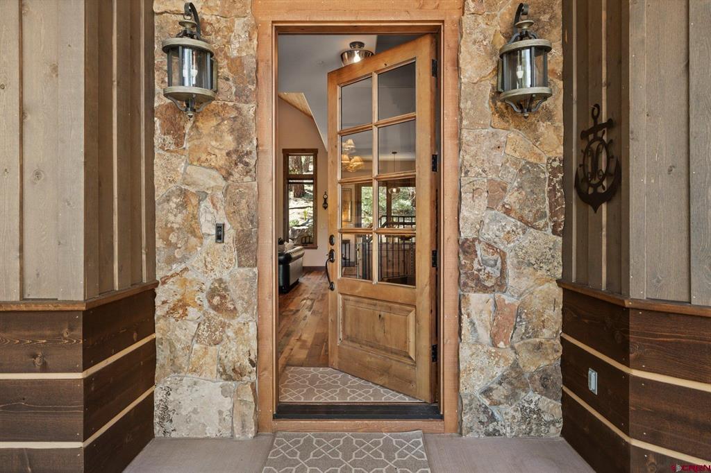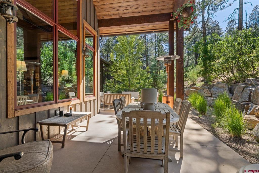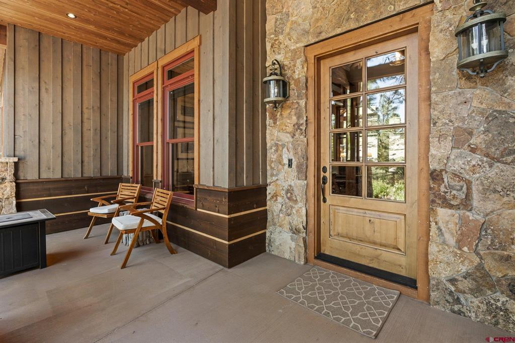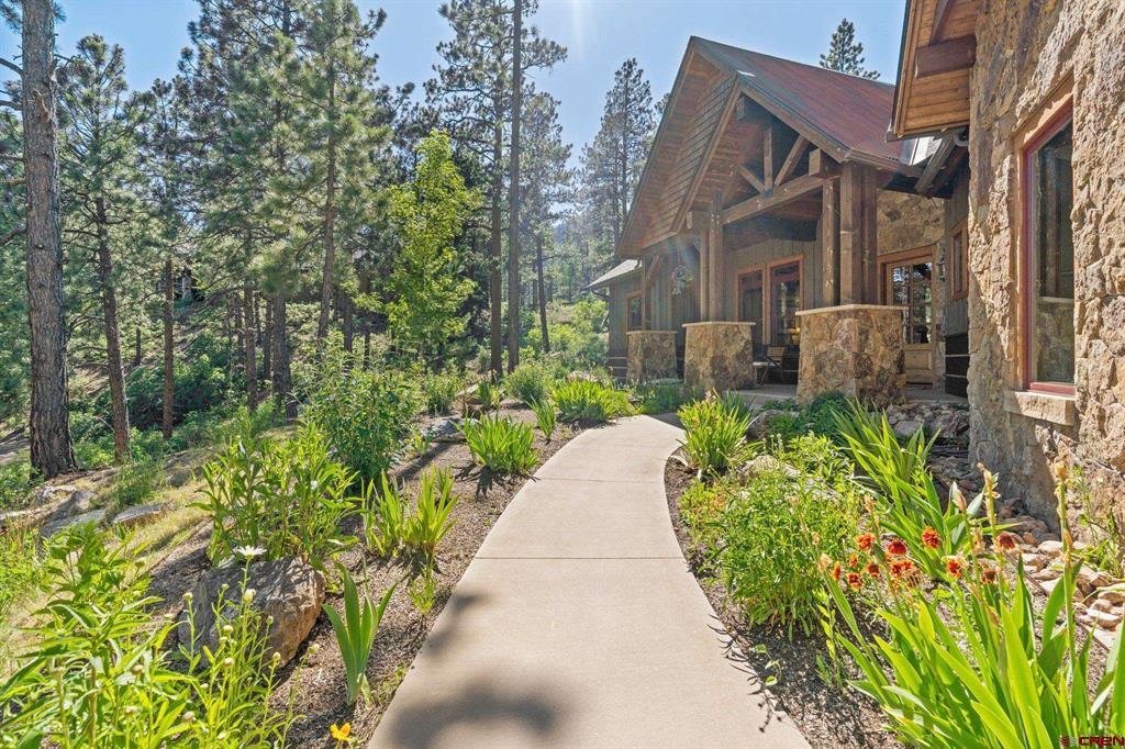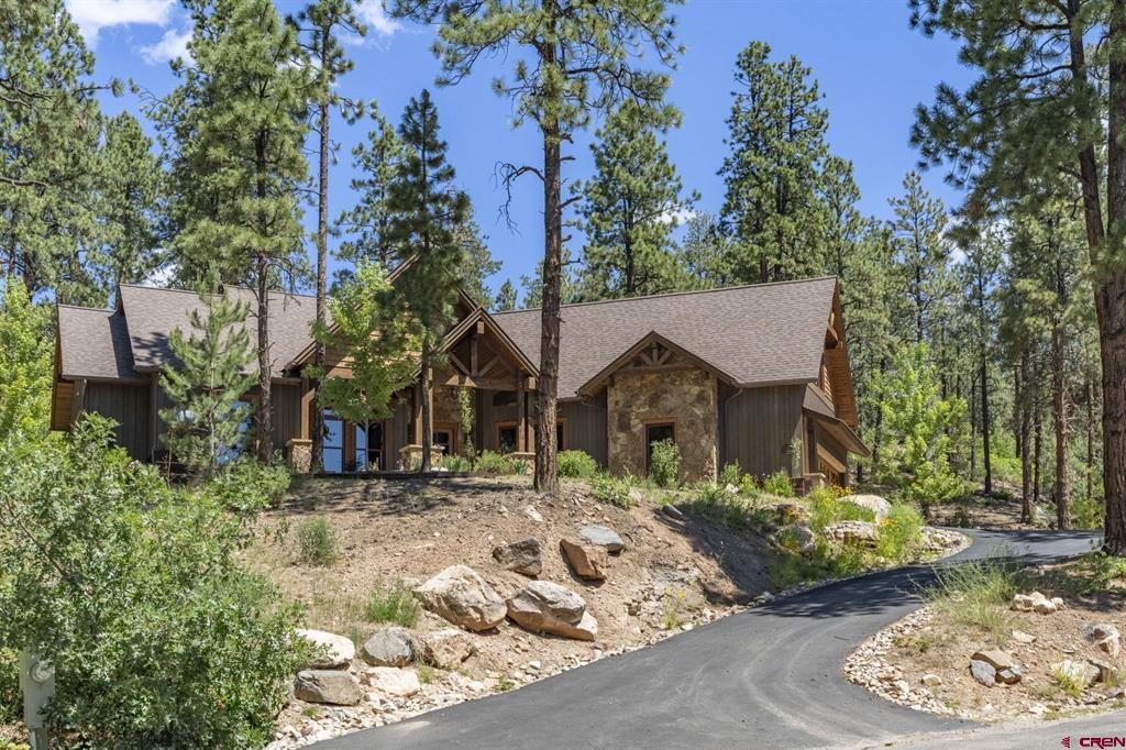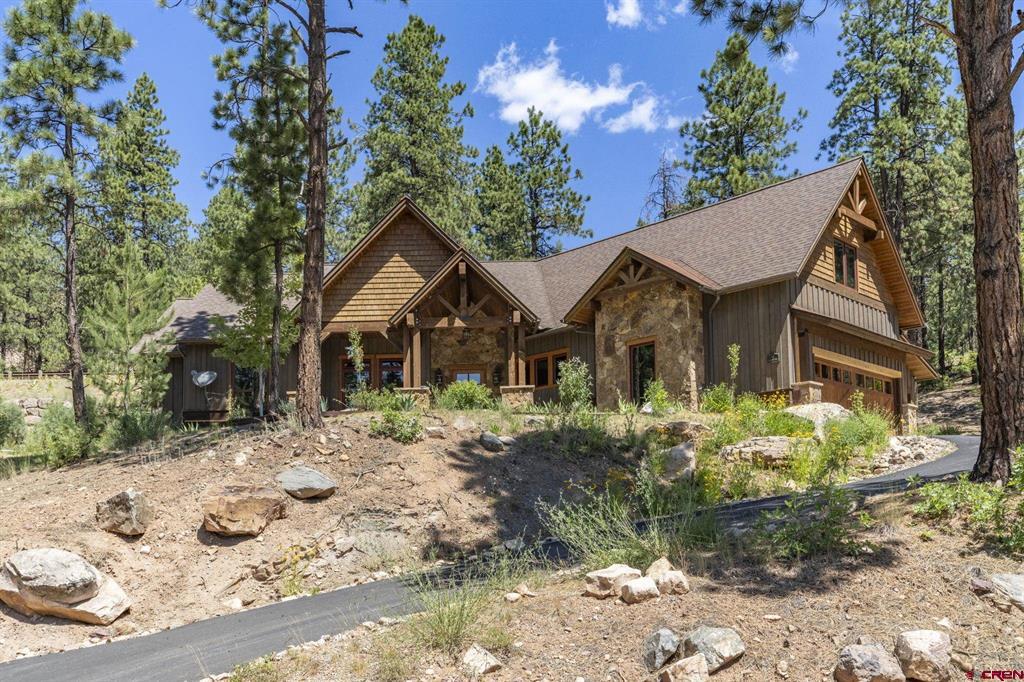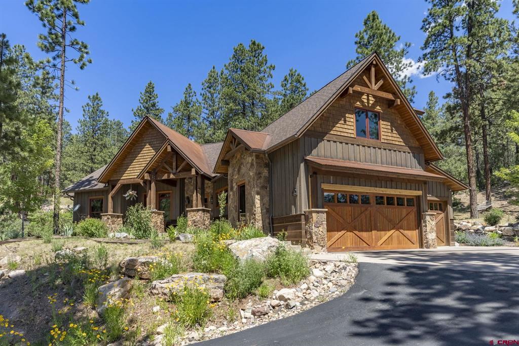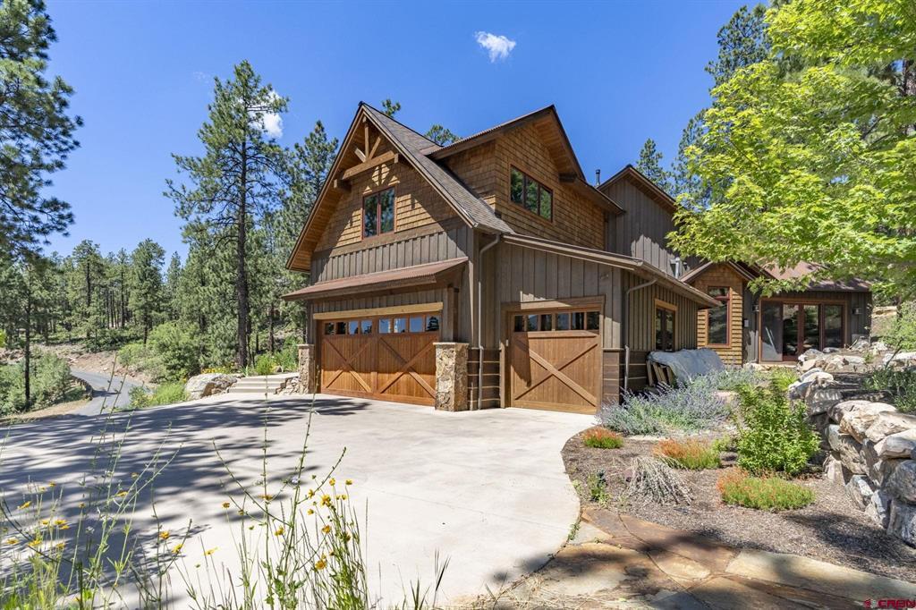 A single-family mountain traditional masterpiece with sweeping views of Missionary Ridge and private outdoor living space in the coveted Glacier community doesn’t come up often and this gem is not to be missed! Built in 2016 by Cerwin Homes, this exquisite home is adorned with extravagant features such as custom finished in place stunning wood flooring with, a two-sided natural stone gas fireplace illuminating both the dining room and living area, tongue and groove vaulted ceilings, and newly upgraded kitchen completed in 2023 with larger island, new granite, and lighting. The spacious and well-equipped kitchen will allow your inner chef to flourish, and the sizeable dining area and separate media room satisfies all your entertainment needs. The main level hosts a guest bedroom, large office that is currently configured as a guest bedroom, as well as the spacious primary bedroom with bath, highlighted by a gorgeous garden tub, offering peace and relaxation after a day playing in the mountains. A heated 3 car garage with recently reconfigured and enlarged opening ensures you have plenty of space and comfort for working on and storing your mountain lifestyle toys. Venturing upstairs you find a large and spacious guest bedroom, as well as a added home office / workout room that can be configured to suit your lifestyle needs. Step outside to one of your two large, private, fully landscaped, outdoor living spaces, to either enjoy dining on the covered patio or to gather around the natural gas fire pit to roast marshmallows and star gaze. This special home truly holds all the elements one seeks in a luxury home and lifestyle. The Glacier community features a plethora of amenities; including, the Mountain Clubhouse, which offers incredible dining, swimming pool, hot tub, and access to 36 holes of pure mountain golf as well as tennis and pickle ball. Also onsite is the Valley Clubhouse, which also hosts excellent dining at the Mineshaft restaurant and features a new fitness facility, two more pools, an additional hot tub, park, playground for the kids and indoor golf simulator in the winter. With Purgatory ski resort just a short 8-mile drive to the north and historic downtown Durango 16 miles to the south, this is an idyllic setting is one of the finest golf communities in the west.