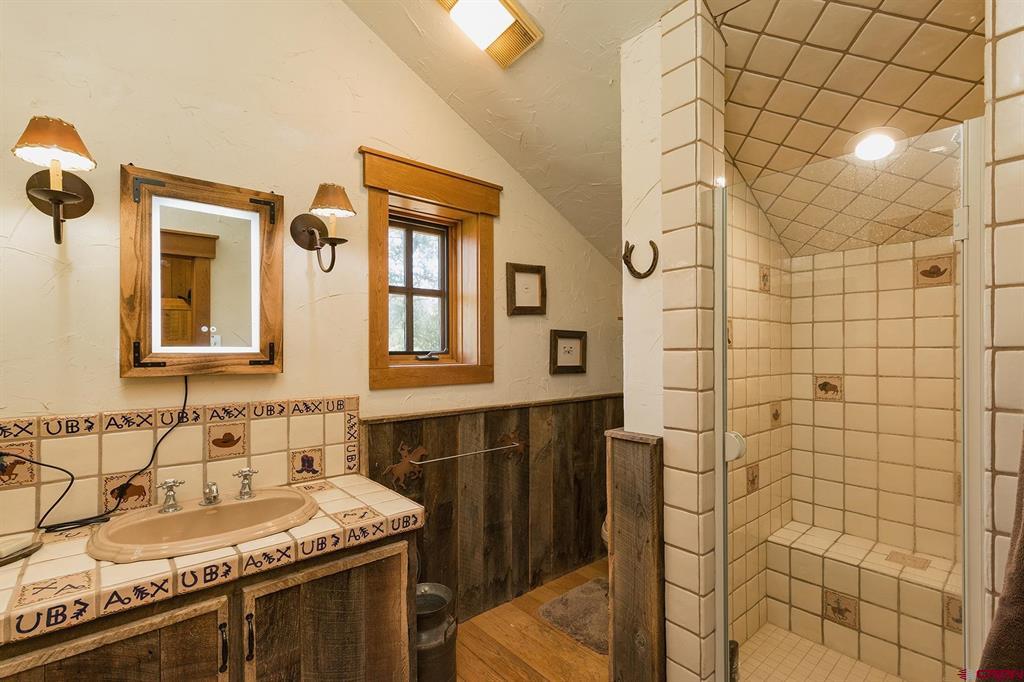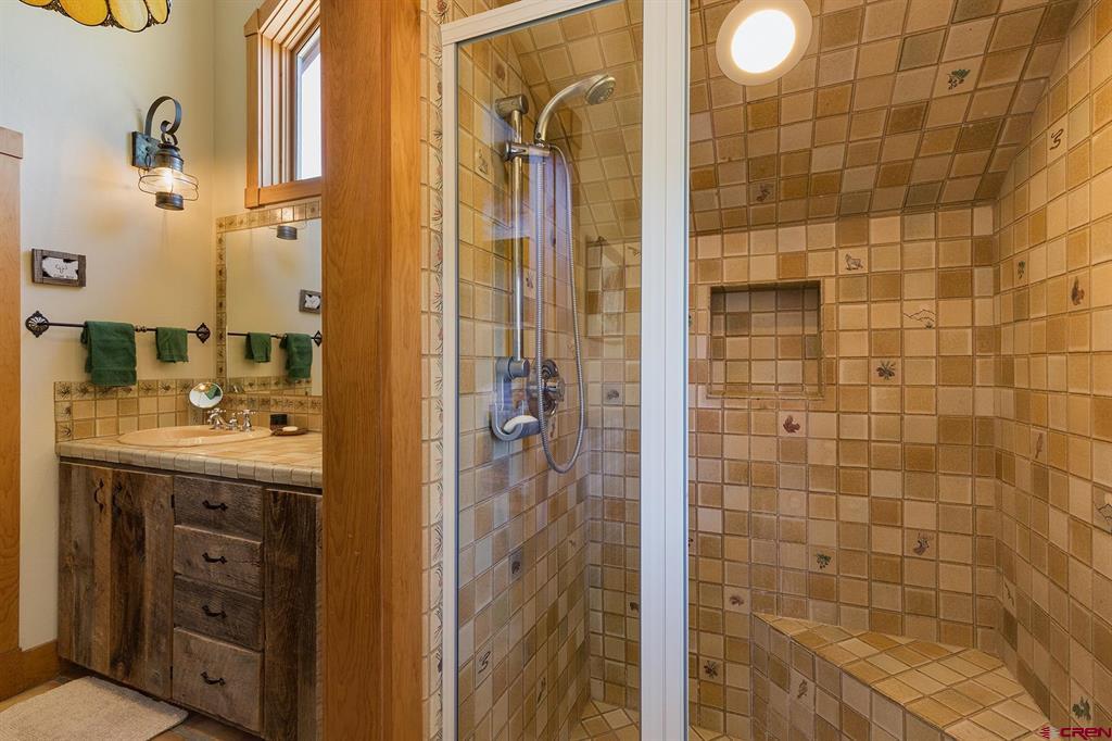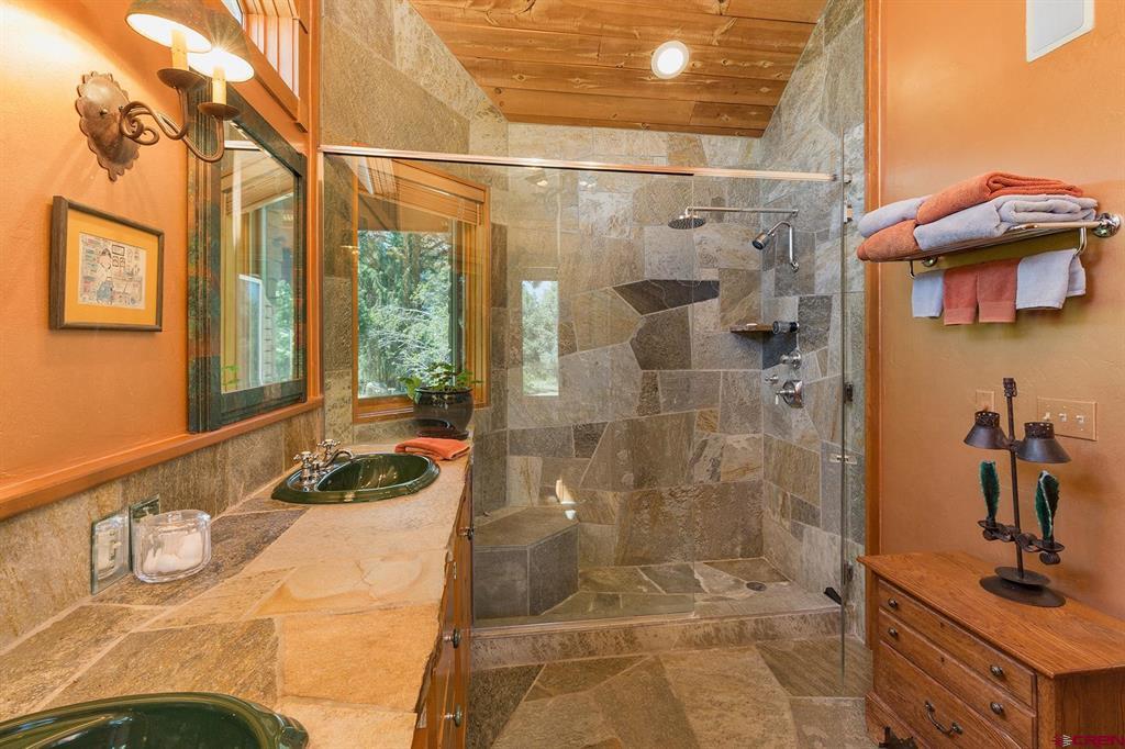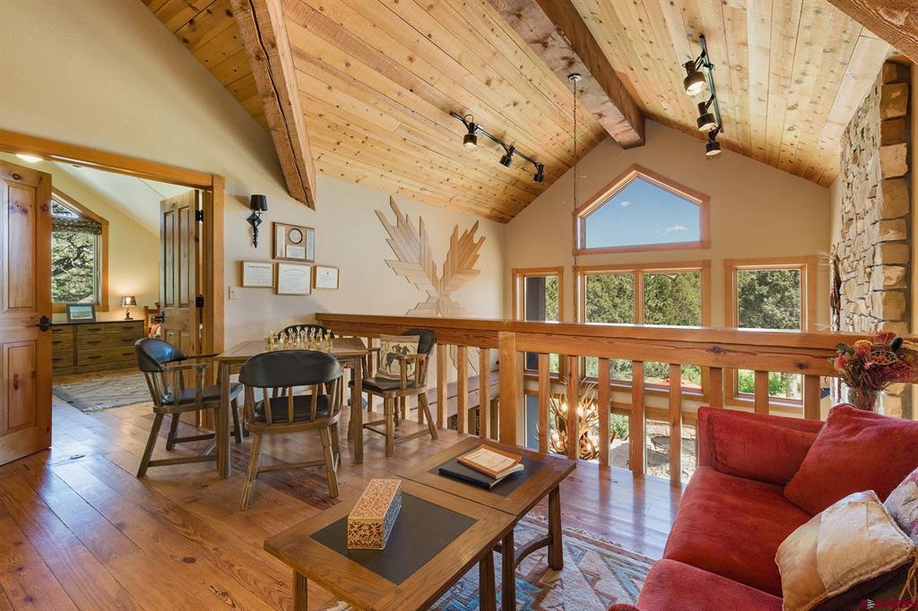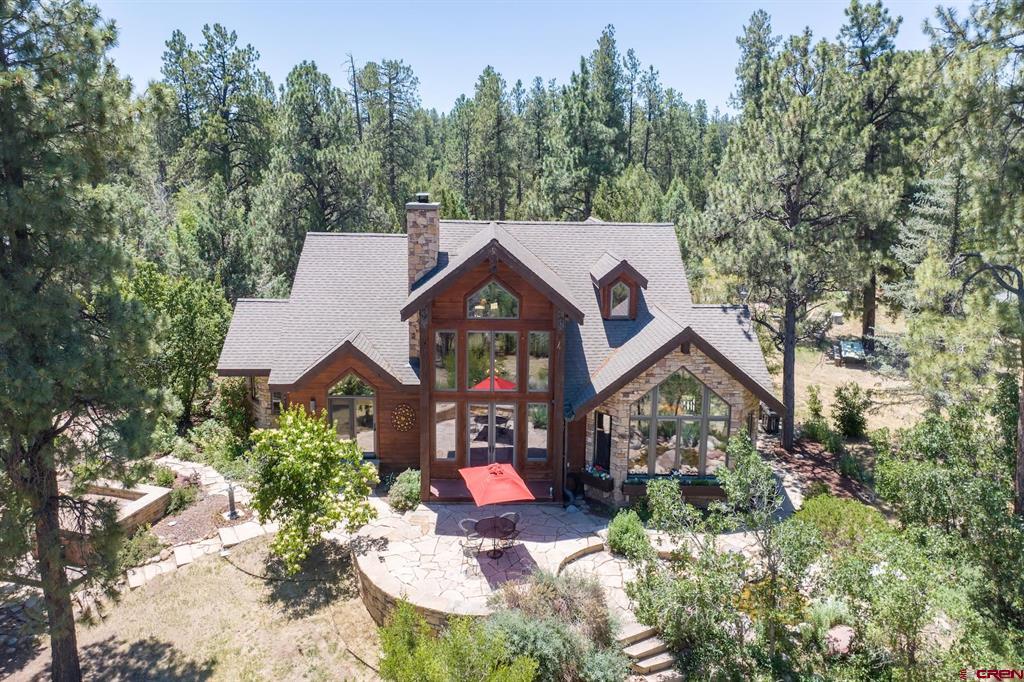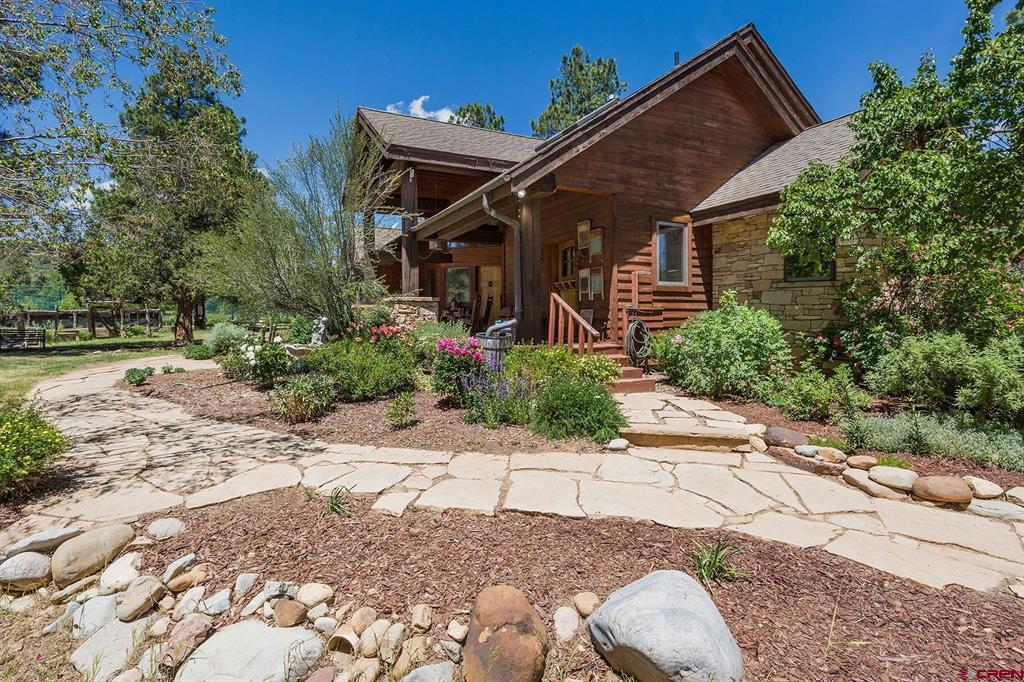 Welcome to 712 Dream Catcher Ln, an amazingly private sanctuary just minutes from downtown Durango. This gorgeous wood and stone home has two bedrooms with en suite bathrooms and a powder room on the main floor, and two more bedrooms and another full bath upstairs, as well as a full apartment above the detached 2-car garage. With two paid water taps to Lake Durango Water Authority, a septic system that can handle more bedrooms, and another building envelope with spectacular views, the potential here for a second magnificent home is already partway realized. This 35 acre property holds a touch of magic in its places to escape to, have fun in and explore. Go camping, play tennis, enjoy a hot tub soak and watch a game at the pub—all without leaving your own property. It can't be captured in 36 photographs, so please take a moment to enjoy the video to understand in just how ways this retreat is perfect for you.