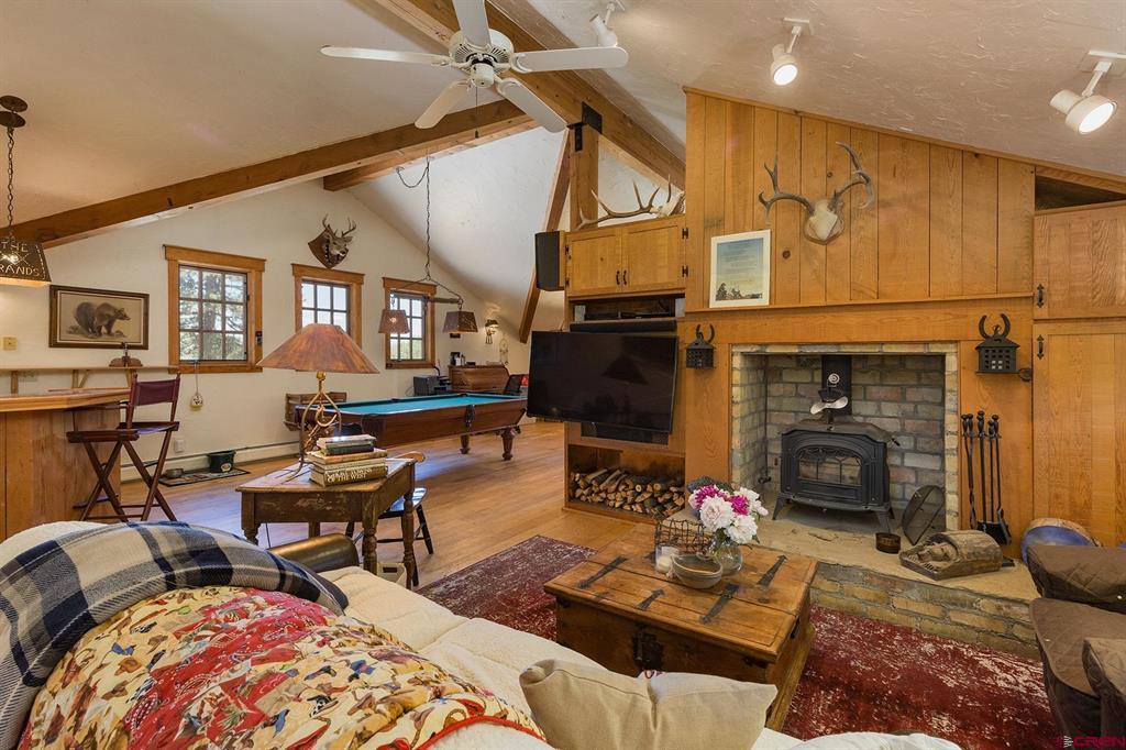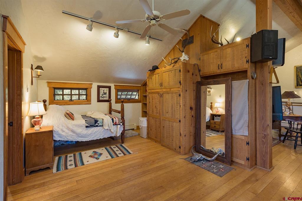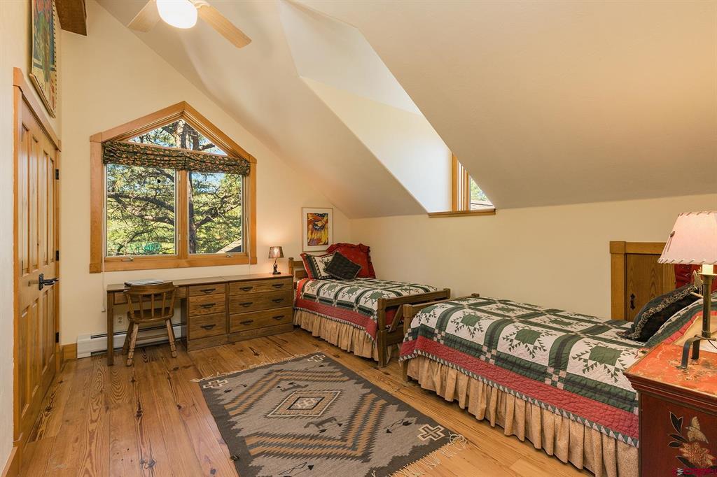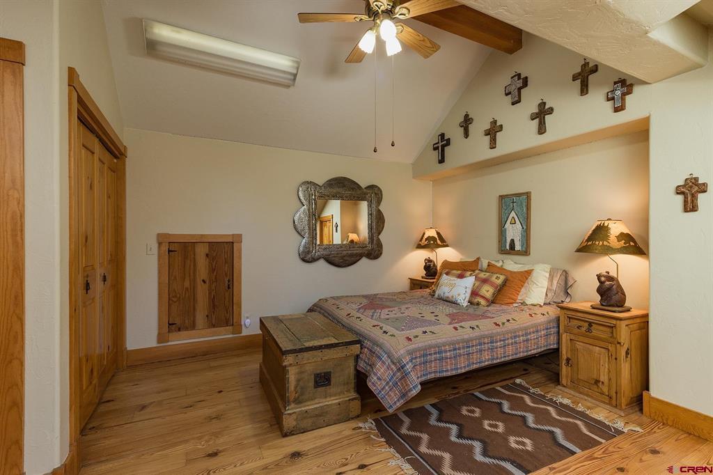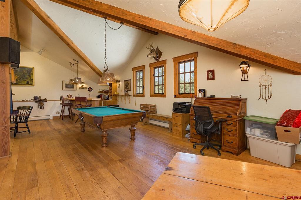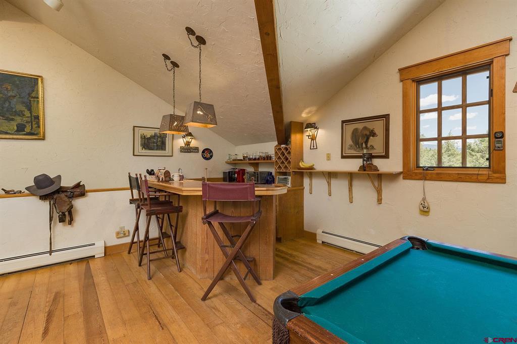Welcome to 712 Dream Catcher Ln, an amazingly private sanctuary just minutes from downtown Durango. This gorgeous wood and stone home has two bedrooms with en suite bathrooms and a powder room on the main floor, and two more bedrooms and another full bath upstairs, as well as a full apartment above the detached 2-car garage. With two paid water taps to Lake Durango Water Authority, a septic system that can handle more bedrooms, and another building envelope with spectacular views, the potential here for a second magnificent home is already partway realized. This 35 acre property holds a touch of magic in its places to escape to, have fun in and explore. Go camping, play tennis, enjoy a hot tub soak and watch a game at the pub—all without leaving your own property. It can't be captured in 36 photographs, so please take a moment to enjoy the video to understand in just how ways this retreat is perfect for you.