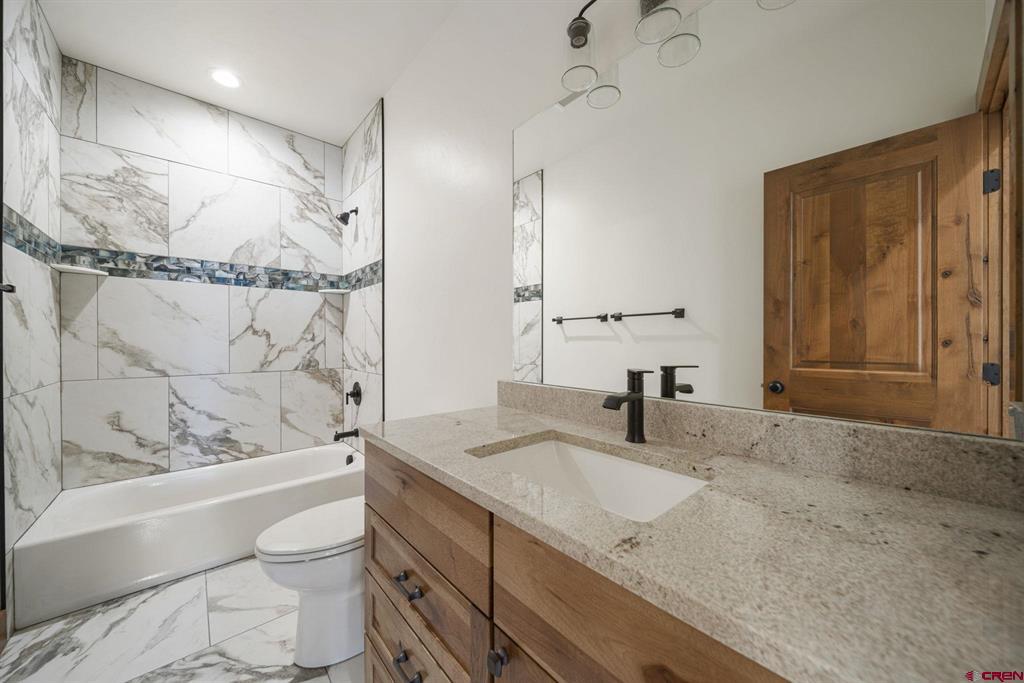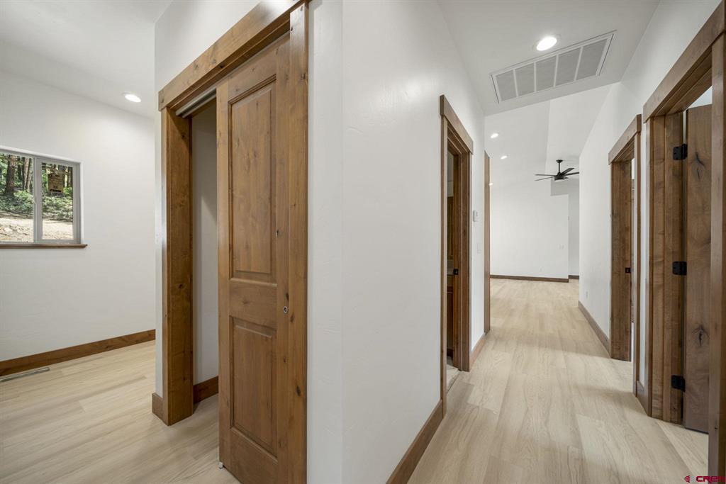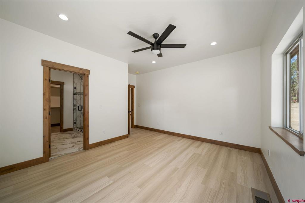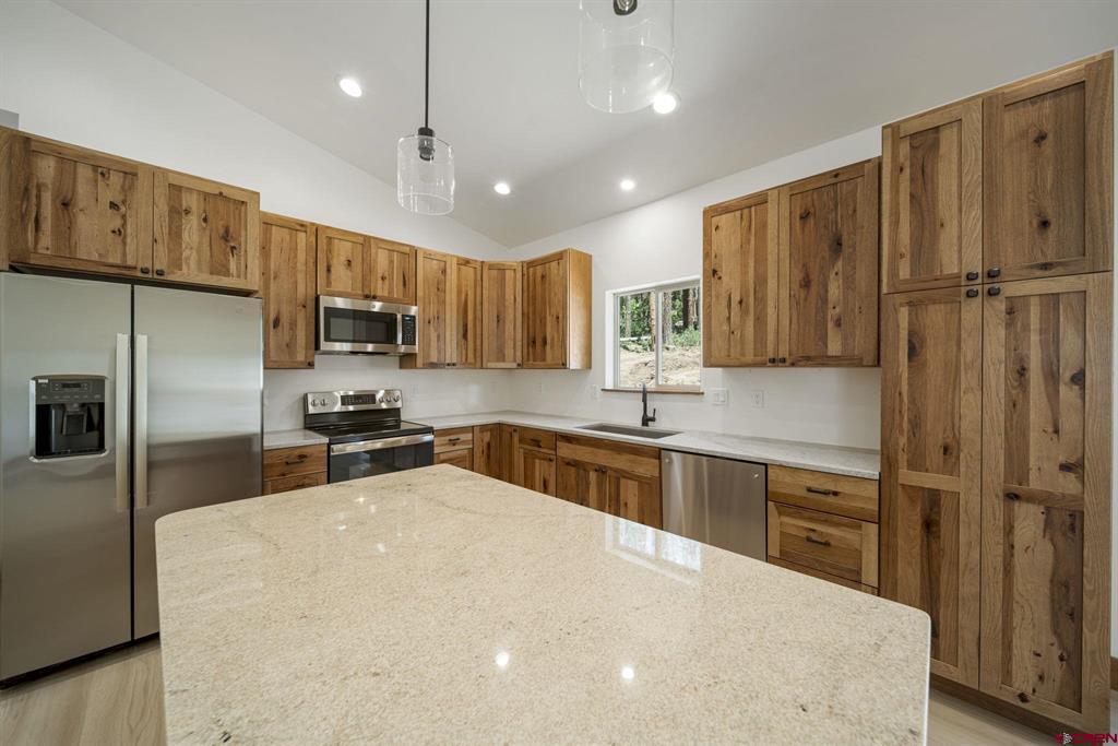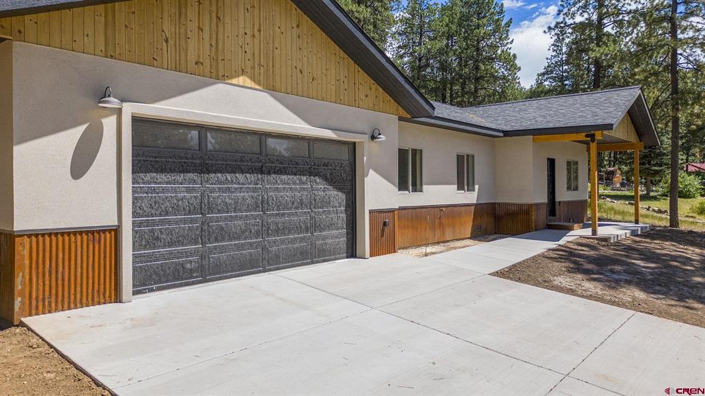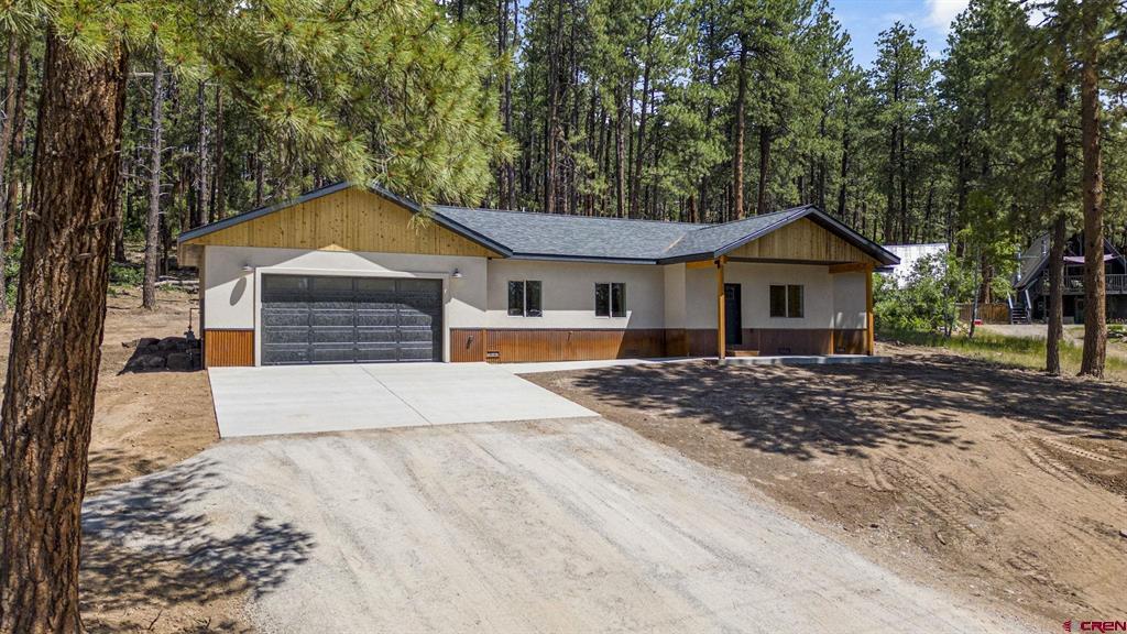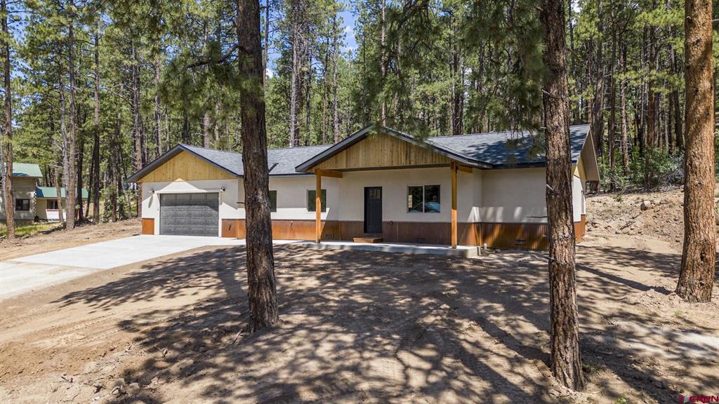 New Construction! This 1,535 SF home is located in the Forest Lakes Subdivision on a great south facing lot with convenient access to Durango and Bayfield. The stucco sided home feature 3 bedrooms and 2 full baths all on a single level. When you enter this mountain modern property you are greeted by a large great room with vaulted ceilings and lots of natural light. The kitchen is nicely appointed with granite counters, stainless steel appliances and upgraded cabinets with soft close drawers. The split floor plan provides privacy for the primary suite with en-suite bathroom with double sinks, tiled walk-in shower and a huge walk in closet. The two guest bedrooms, the second full bath, a nice laundry room and two car attached garage are on the opposite side of the home. The home features low maintenance wood laminate flooring throughout, tile shower surrounds, stained wood trim and doors, forced air heat with A/C, and a high efficiency on demand water heater. There is a nice patio off of the dining area to enjoy the cool Colorado nights. The home has great southern exposure and a concrete pad for easy snow removal. The one acre lot has mature pine trees and provides plenty of elbow room. There is a private lake in the subdivision for great fishing, kayaking, paddle boarding and canoeing. Access to national forest and BLM through the subdivision for excellent mountain biking, hiking and hunting is right out your back door. Call today to see this great home!