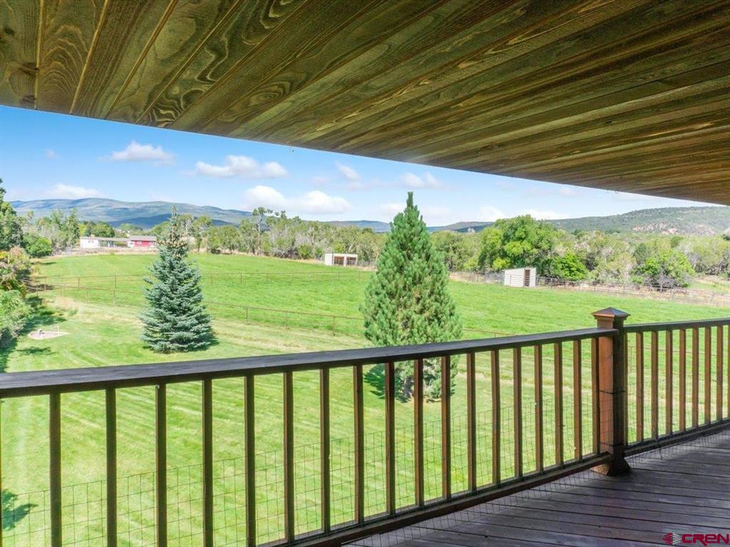 Surface Creek runs along the entire western border of this beautiful equestrian farm and residence. Redwood siding covers the exterior of the home with 780 square feet of multiple level deck overlooking the creek. The upper deck is reinforced for placement of your hot tub and includes wiring in the wall. The house and yard are serviced by a permitted well and there is also an Orchard City water tap with multiple use allowed that services the 65'x45' six stall horse barn and multiple loafing sheds. Four double stall loafing sheds and five single stall loafing sheds are all attached to large dry lots with gates that turn into green pastures. All stalls have rubber floor mats, water, electricity and steel siding and roofs. There is a 75' round pen and a 175'x100' riding arena, tack room and trailer parking area. There are nine irrigated, fenced pastures, cross fenced with welded pipe fencing. The entire perimeter of the property is fenced with 10' elk fence. 1 share of Young Creek Ditch & Reservoir and 1/2 share of Surface Creek Ditch & Reservoir is included and there is a possibility of leasing additional water. The interior of the home is covered with tongue & groove aspen. The upper level is a bedroom, full bath, laundry and walk-in closet. On the main level is the second bedroom, another full bath, living room, dining room and the kitchen. The walk-out basement is the oversized 36'x32' garage with 14' overhead doors, storage, hot & cold water spigots and the water filtering and softening system. There is a 32'x45' concrete pad in the front of the garage with a wash rack for horses. This property is currently used as a horse boarding facility and there is a possibility of including the business with the sale. There are views of the mountains on all sides, the valley below and creek frontage. It's an easy drive to Grand Mesa National Forest and easy access to the towns of Cedaredge and Delta. Be sure to watch the virtual tour & video.