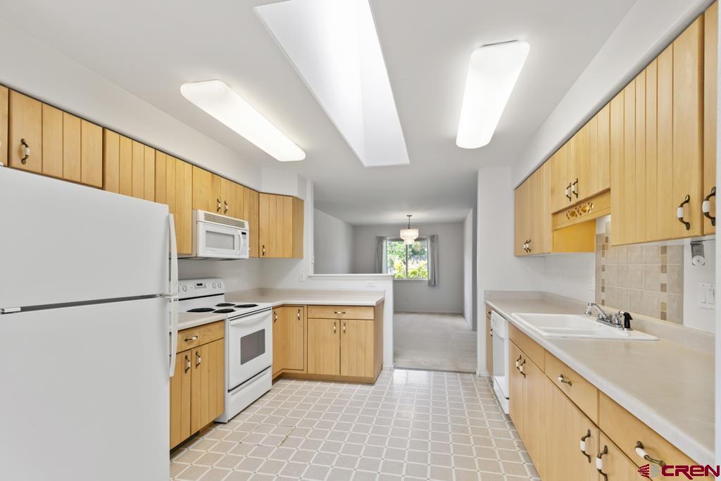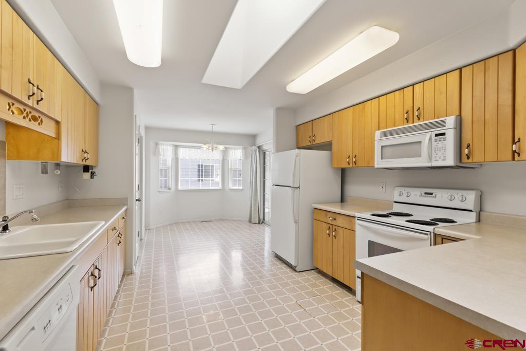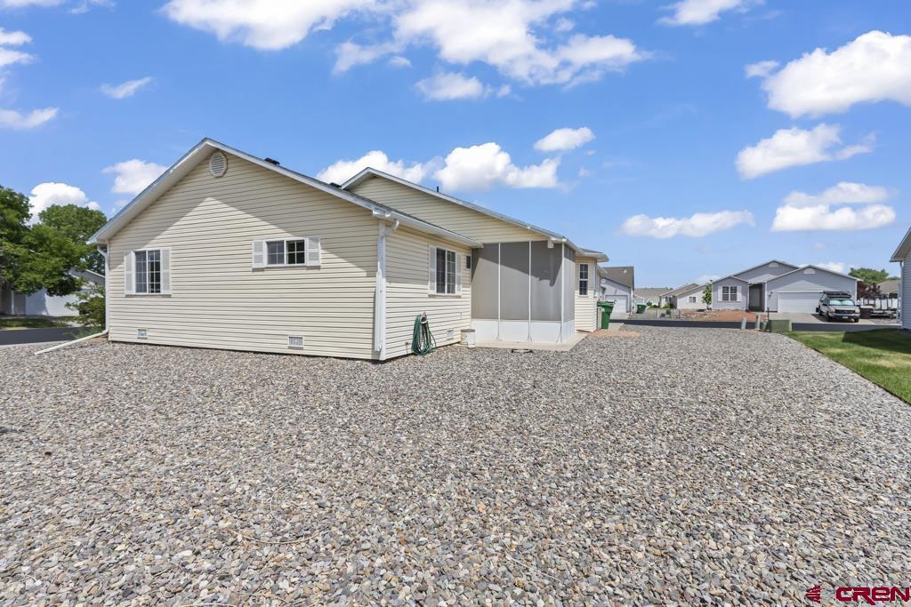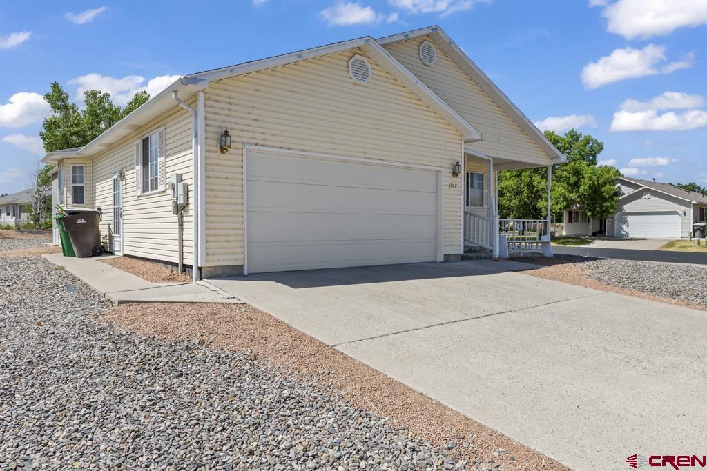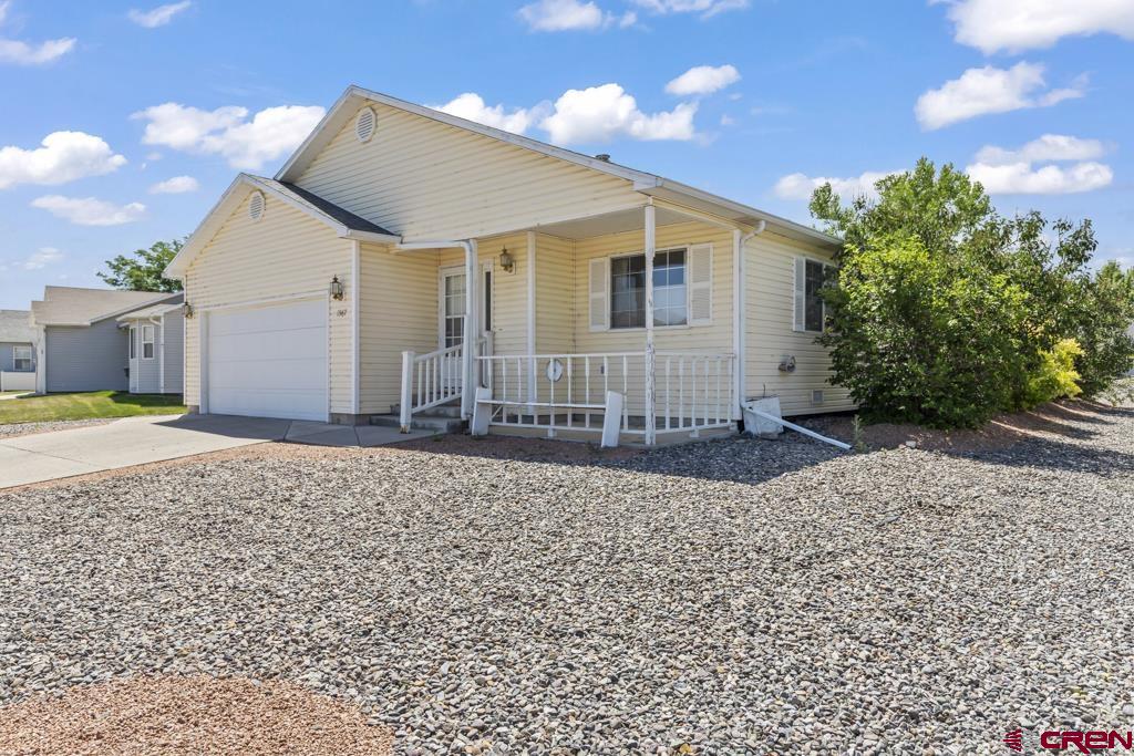 Ranch style home with new roof in July of 2023! Excellent in town location close to City Market south and the Recreation Center. Located on a xeriscaped corner lot this for home is pretty much maintenance free! Roomy kitchen with all appliances included, 2 pantries and breakfast nook with bay window, lots of white maple cabinets with roll-out shelves, skylights, separate dining room.. The master has walk-in closet & master bath includes vanity, his and her medicine cabinets, & even a bidet! Well-insulated home with R-38 and extra insulation under the vinyl siding and a heated garage with workbench and built in shelves. Ample storage in this home with good several closets. Enjoy relaxing in the mornings and evenings on the privacy screened in back porch!