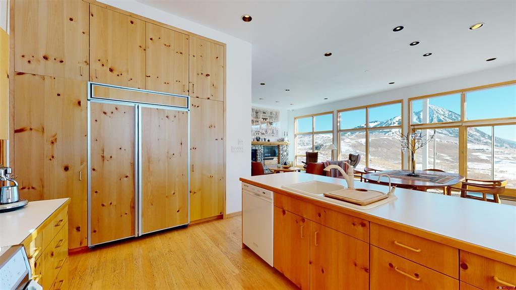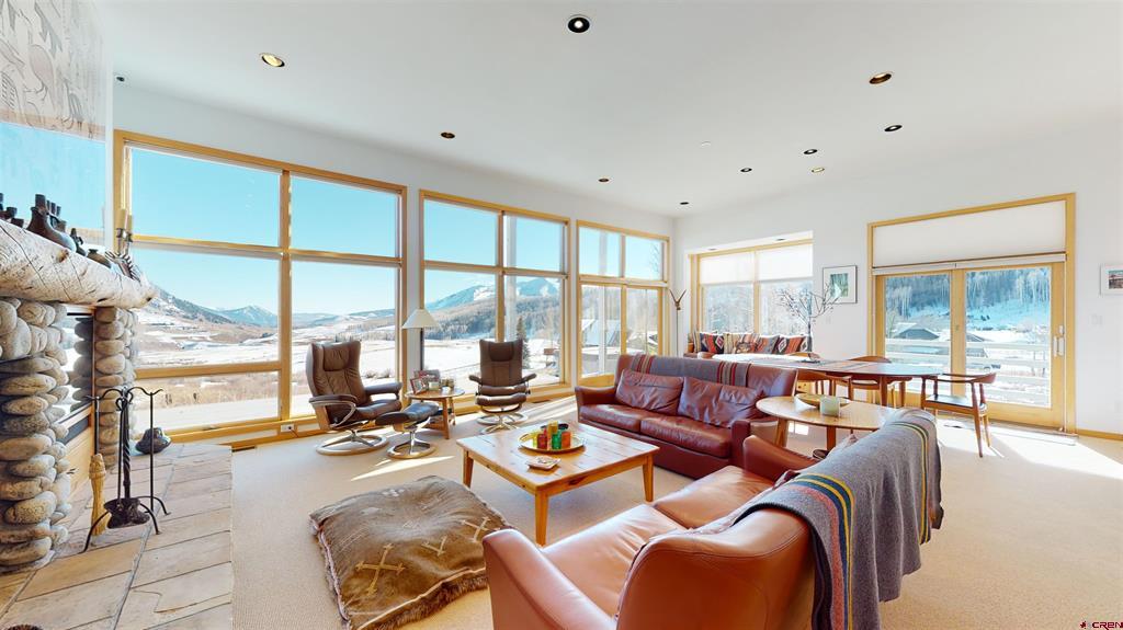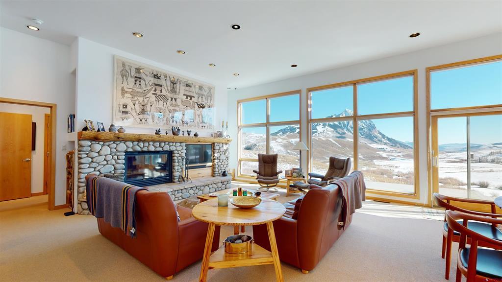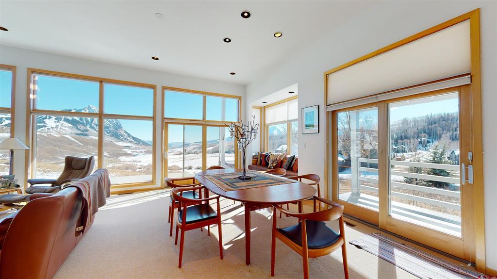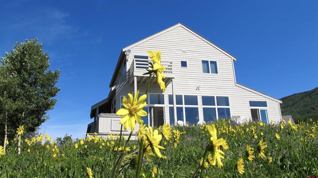 Take in the outstanding year round and protected views from this Meridian Lake Park home. Located on the fence line, you can see for miles down the Gunnison Valley and enjoy the changing colorful landscape every season. Upon entering the home you are met with a large entry area to store all of your outerwear and more. Making your way into the living area, your attention will go straight to the demanding views of Crested Butte Mountain and Whetstone Mountain. The large windows not only offer mountain views, but let in an abundance of sunlight, filling the home with natural light. Entertaining is easy with the open floor plan and the large wood burning, stone fireplace in the living area is the perfect spot to warm up during those Colorado winters. The master bedroom, with his and her closets, is conveniently located on the first floor along with an en-suite bathroom featuring a steam shower and jacuzzi bathtub. Three additional bedrooms can be found upstairs along with a deck and office space. Relax in the hot tub, located on the lower deck, after a long day of playing in the mountains. There is plenty of space in the heated two car garage to store your gear and more. Conveniently just 5 minutes to the resort for skiing and only 10 minutes to historic downtown Crested Butte. Hiking, biking, and skiing are just minutes outside of your front door.