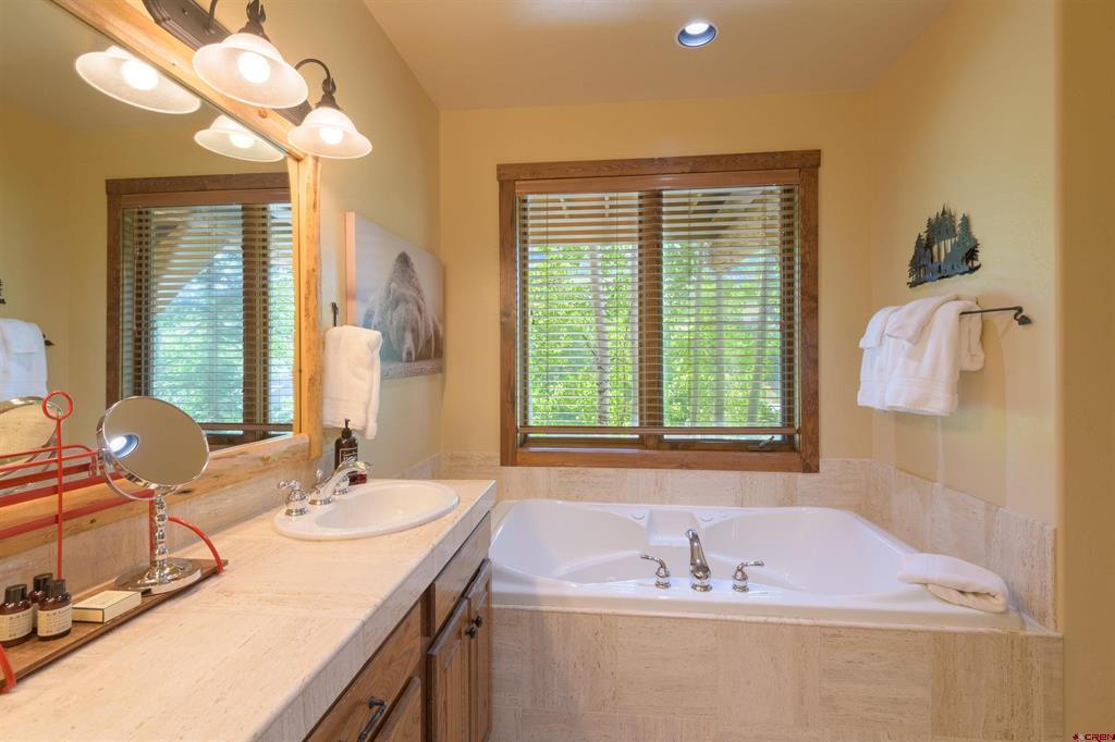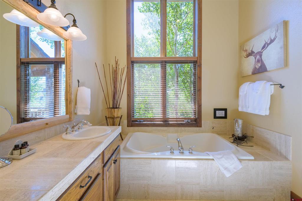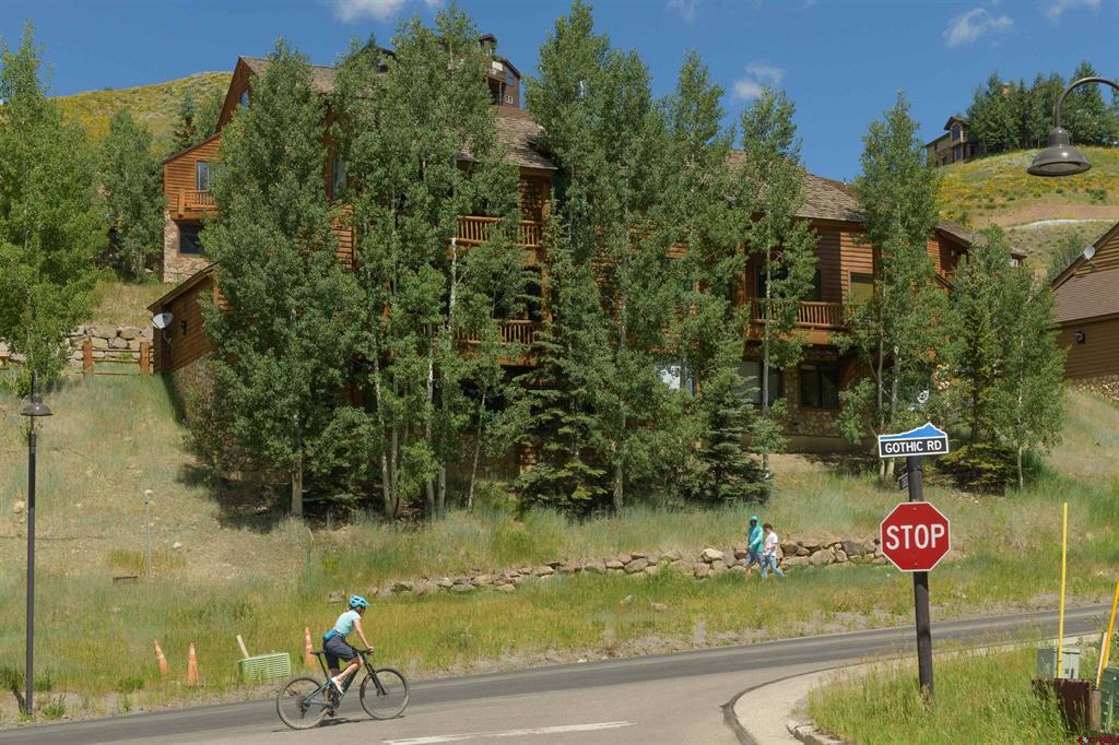 The Villas in Mt. Crested Butte is one of the sought-after properties because of it's 2486 square feet of living space, proximity to the Crested Butte Mountain Resort base area and beautiful views of Crested Butte Mountain, Whetstone Mountain and Axtel Mountain. This turn-key duplex style townhome has 4 bedrooms, 2 full baths, one 3/4 bath, one 1/2 bath, a 1-car attached garage and 2 exterior decks for outdoor living. The main floor consists of a chefs kitchen, living area, dining area with exterior deck access, and powder room. Next, the chef's kitchen includes a 4-burner gas cook-top, wall oven, microwave, side by side refrigerator, dishwasher, ample cabinet storage, pantry, island with storage, granite counter-tops, tile floors and a large picture window that looks at Crested Butte Mountain. Then, the living area has a bar height table and chairs, gas fireplace, built-in book case and front coat closet. Nestled in between the kitchen and living areas is the dining room table and access to the deck. The spacious Primary Suite is located on the upper level and includes vaulted ceilings, gas fireplace, jacuzzi tub, double vanity with granite counter-tops, tiled shower, 2 closets and private exterior deck to enjoy outdoor time. The lower level of the townhome has a second Primary Suite which includes a double vanity with granite counter-tops, tiled shower and jacuzzi tub. Bedroom 3 has a trundle bed that can be used as a single bed, two single beds or one king sized bed. Bedroom 4 has a log bunk-bed system with a twin bed and queen bed. Bedrooms 3 and 4 share a 3/4 bath. Fantastic views from every bedroom! Also a stackable washer/dryer and linen closet are located on the lower level. Other features to know about are: all TV's equipped with ROKU, stereo sound system throughout home, MYSA Smart Thermostat System for electric baseboard heater remote control, there are many owners closets within the property that have locks installed. KUNA security system in place at the front door. The property includes one garage parking space and 3 off-street parking spots and there is overflow parking nearby.