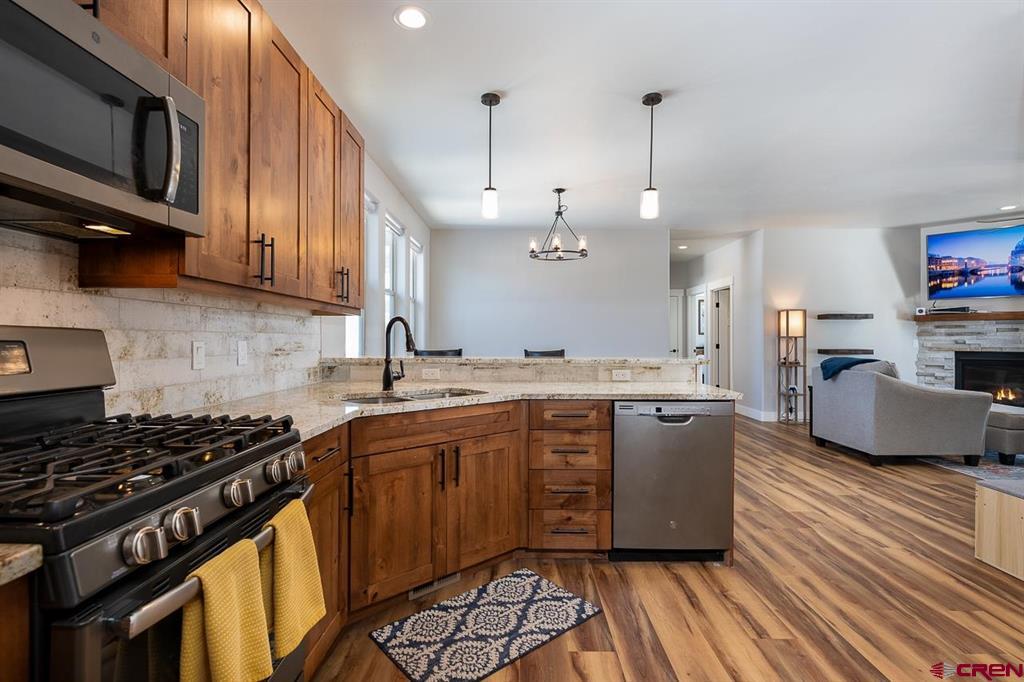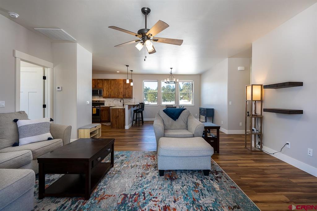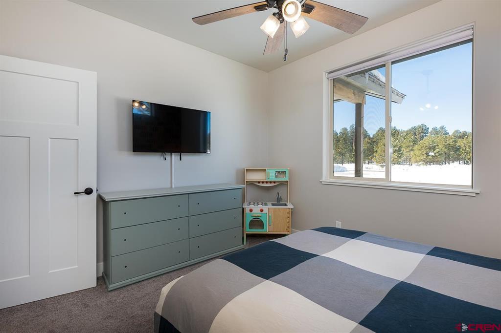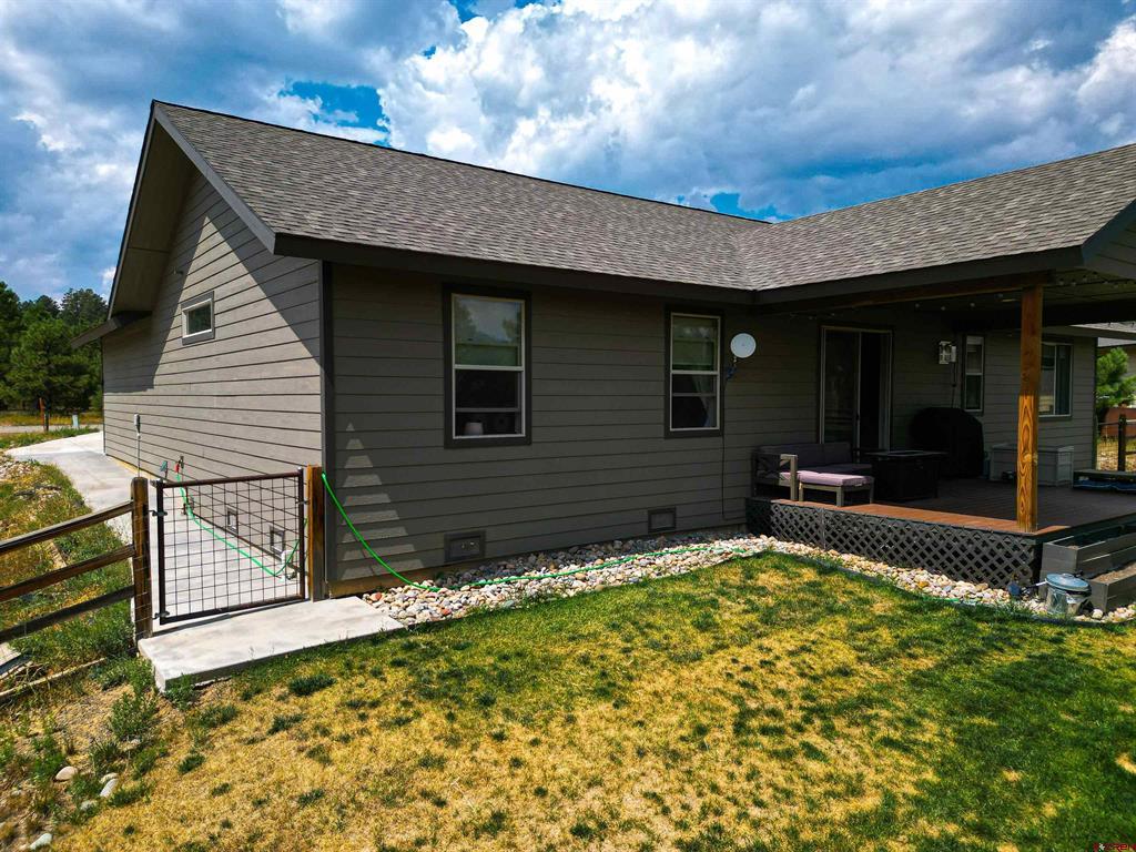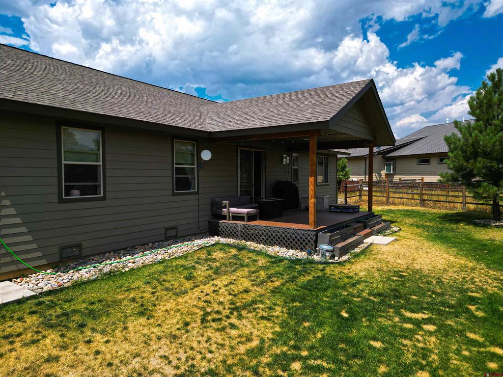 Beautiful Modern Mountain Home on Over a Third of an Acre in the Pagosa Lakes. New Landscape with Aspens, Walking Distance to Forest and Lakes-1558 SF Single Level Split Plan with 3 Spacious Bedrooms, 2 Baths, Quartz Stone Fireplace, Pagosa Peak Views, Fenced Yard, and Covered Deck. Flowing Open Concept with Lots of Natural Light and Crisp Clean Finishes. Low Maintenance and Pure Enjoyment Are Yours Here! Mountain Views right from your Lighted Covered Deck. Open Living With 9' Walls, Oversized Windows, Concrete Drive and Walkway, Covered Porch Entrance, Roomy 2 Car Garage and Fenced Yard backing to open Green Space. Custom Cabinetry with 42" uppers, Hand Cut Granite Counter Tops, Stainless Steel Appliances and White Quartz Stack Stone Gas Log Fireplace with Rustic Charcoal Mantle. His and Hers Closets in the Master Suite Along with Spacious Bath with Double Sink Vanity and Walk In Shower. A Well Designed Open Kitchen with Pantry Makes Organizing Easy And Allows Plenty Of Room For Many To Enjoy Fun Time Preparing and Cooking Meals Together. Eat Casually at the Breakfast Bar or Dine at Table While Always Being Close to Everything Going On. Just Inside The Front Door you'll Find a Perfect Sized Foyer ideal to Sit Down, Remove Shoes And Hang Your Belongings. BBQ, Relax With Cocktails, and Enjoy The Morning Coffee on The Covered Deck Accessed Through The Great Room Sliding Doors. Summertime-Open it Up For Amazing Inside/OutSide Living. New Landscaping with sod, Aspen Clusters, Rock and Black Mulch. Experience The True Feel of The Mountains While Still Having Every Convenience Only Minutes Away. Non-Motorized National Forest Gates, Fish Stocked Lakes, Bike Paths and a Fully Staffed Recreation Center Are All Part of The Pagosa Lakes Property Owners Privileges. Some Of The Best Winter Sports Are Only 25 Miles Away At Wolf Creek Ski Area and The Deepest Hot Springs In The World Are Only 5 Miles Away. Pagosa Springs Has it Going On! Schedule Your Showing.