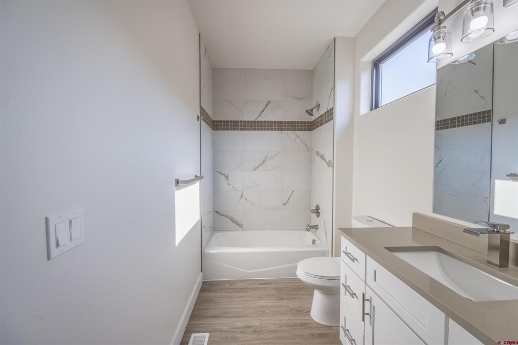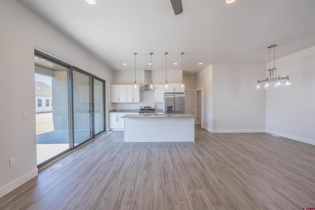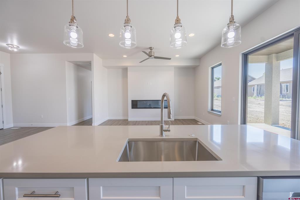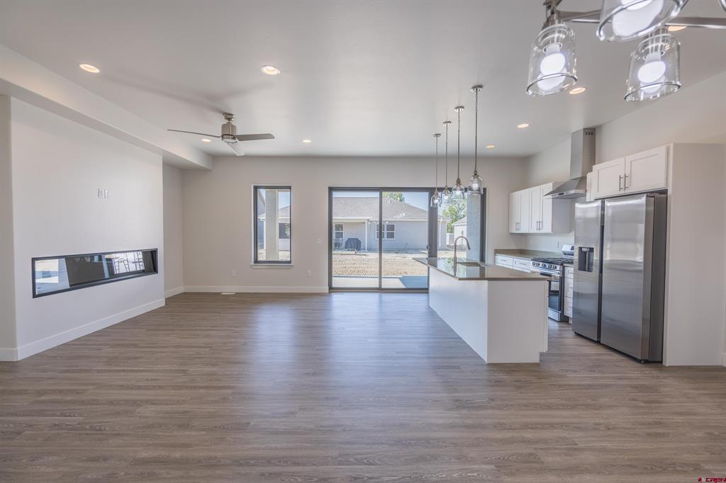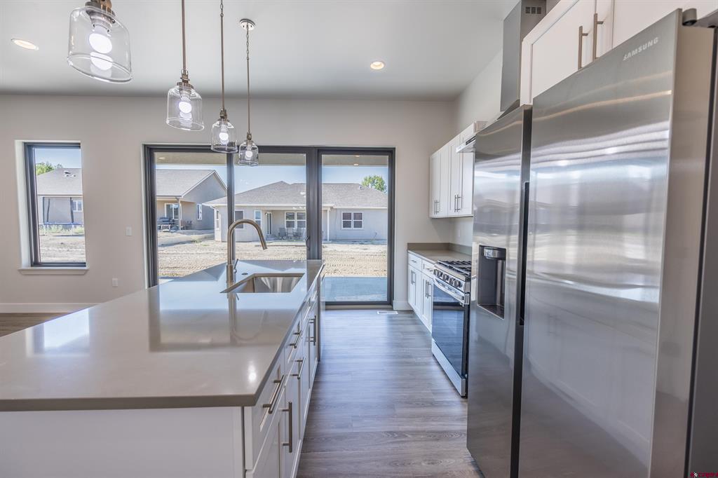 Seller offering a $9000 concession and Academy Mortgage is offering an additional $1000 if you finance with them! ESTIMATED COMPLETION January 2024. The Fiji Floor Plan in Woods Crossing features uniquely modern higher-end finishes, and is offered by reputable Montrose builder, Sandoval Construction. Luxurious polished white quartz countertops with gray veining in the open concept living/dining/kitchen with a convenient and attractive island, deep under mount sink, all-included kitchen appliance package (range/oven, refrigerator, dishwasher, range hood, and sink does include a disposal) and on-trend gray cabinets. This 1555 square foot floor plan offers a functional split floor plan with spacious primary bedroom suite, walk-in closet, and a gorgeous main bathroom with a tiled shower. The oversized Anderson series 100 windows, and contemporary design features like the remarkable 79 x 24 contemporary electric fireplace make a lovely impression, and all in one affordable package. The laundry room is conveniently located just next to the master. Finally, the three car attached garage offers loads of extra storage and parking space for your toys and projects! Visit this and other models to select from 4 floor plans buildable on various lot options, make your selections on location, and make one of these incredible properties your brand NEW home sweet home today!