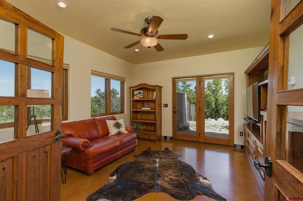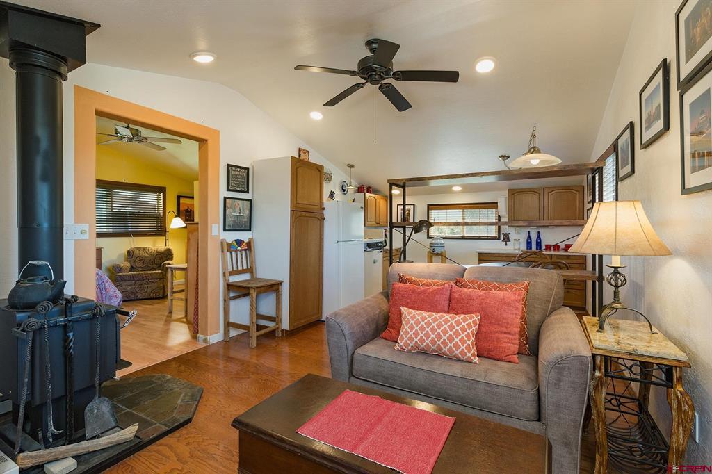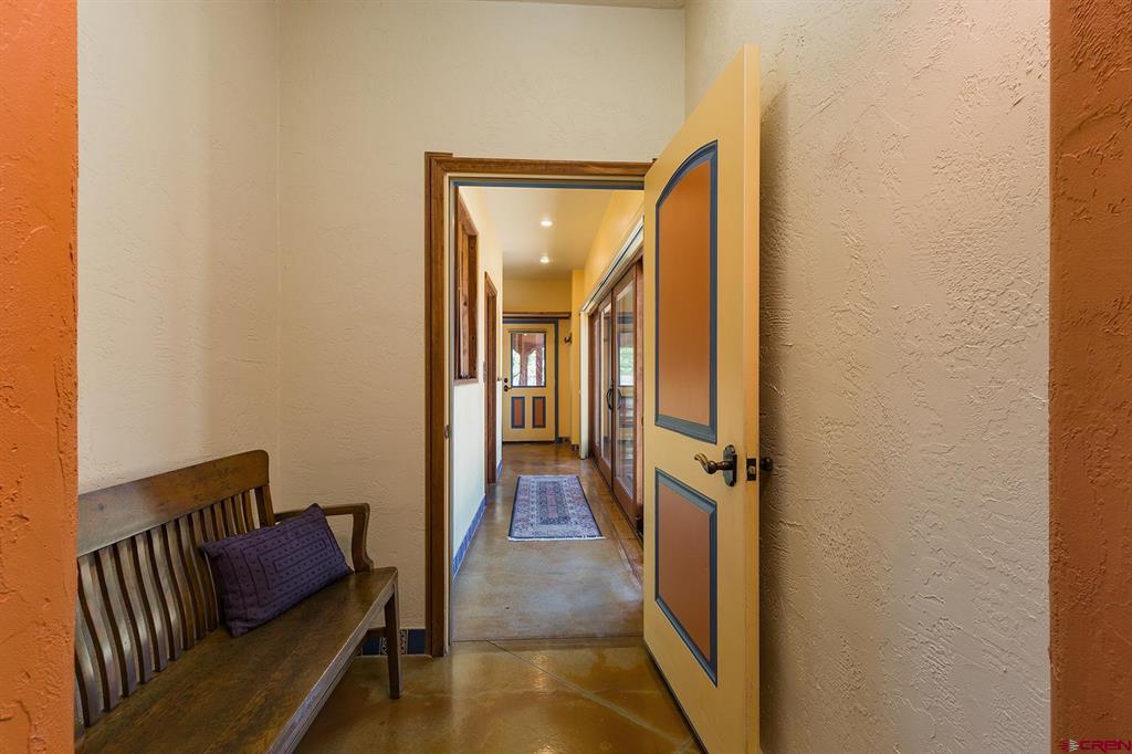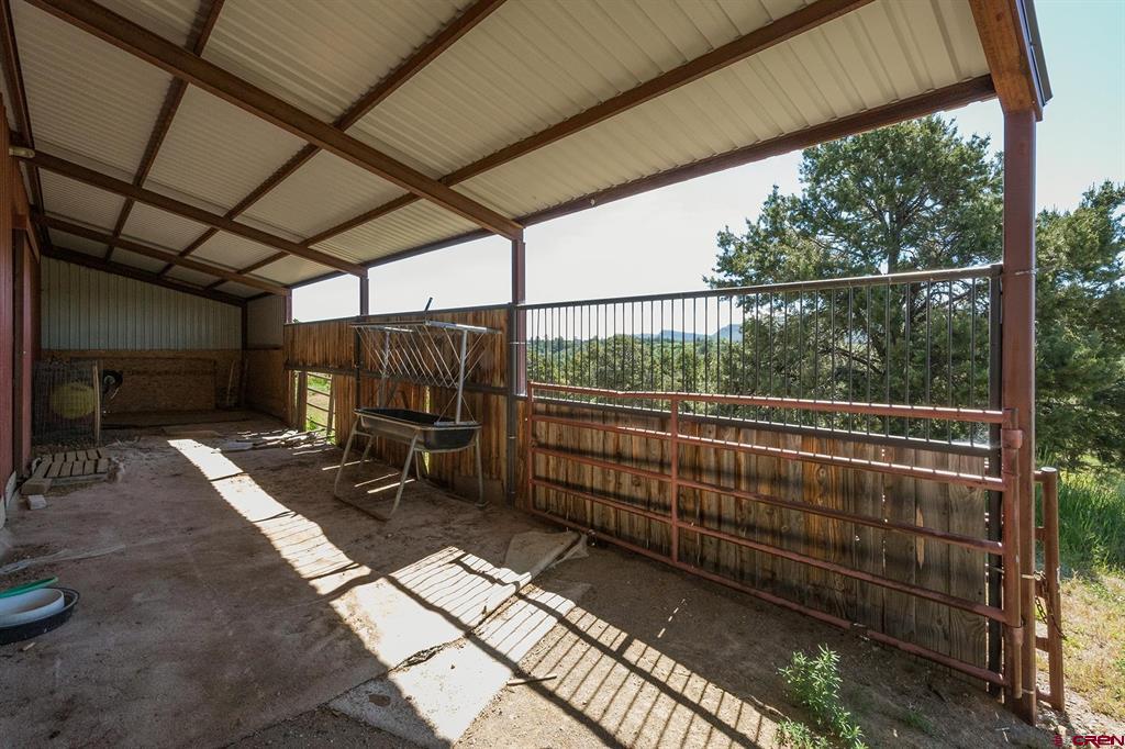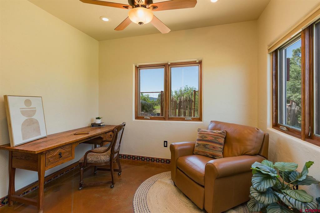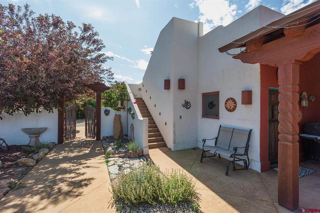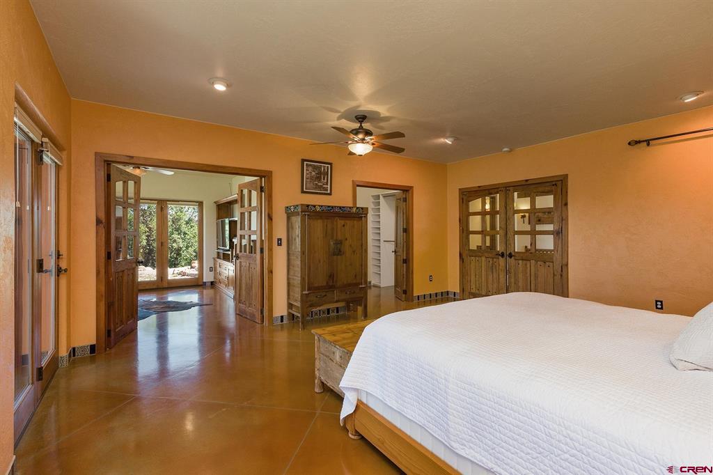 Welcome to this magnificent property which offers 2 single family homes nestled on 35 acres of picturesque land, just 11 miles (approx. 15 min) from downtown Durango, with clear views of the La Plata mountains. Located in a serene and tranquil setting, this property offers a perfect blend of natural beauty, privacy, and endless possibilities. As you approach the property, a private driveway leads you to the three bedroom guest house, the Santa Fe style main house, hay barn, chicken coop, and main barn/garage with studio above. The land boasts a diverse natural landscape with rolling hills, creating a harmonious balance between open spaces and intimate retreats. The property offers ample opportunities for outdoor enthusiasts and nature lovers, anything from horseback riding, gardening, workshop, or simply enjoying the quiet and expansive views. The enchanting Santa Fe style home effortlessly captures the essence of Southwestern architecture and design. The traditional flat roof has stairs leading to it so that it could be used to enjoy the wonderful sunsets and Alpen glow over the La Plata mountains. Upon entering the 2 bed 2.5 bath single level home, you’re welcomed into a spacious open floor plan, featuring an abundance of natural light. The living room includes floor to ceiling windows with doors out to the back patio, concrete floor throughout, and rustic elements. To the right of the living room are the double doors to the master suite including a large walk-in closet with attached laundry room, a spacious office with double doors, an ensuite bath, and a nook currently used as an office/workout/studio space, with double doors out to the patio. The left of the living room includes the kitchen and dining room area with a bar island separating the living room and kitchen area. The kitchen includes a tile island, tile countertops, and a walk-in pantry with built in cabinetry custom to the home. Off the Kitchen there’s a door to the hallway leading to the other bedroom with ensuite bathroom. Beyond that is the utility room/ shop room that leads you out to the covered car port. This home is ADA compliant, wheelchair assessable. The home includes a covered front and back patio, with a beautiful well-kept garden shed and fenced garden. Between the main house and the barn/garage is a center island fenced in garden, along with an adorable chicken coop. Attached to the coop is the barn/garage with a 12 ft. clearance (lets check on this, maybe higher?) and offers endless storage/multiple cars/toys/ranch equipment storage, including an extra room. The stairs in the barn will take you to a non-conforming studio that sits above the garage where a possible caretaker of the property could live or could be used as another storage/office/guest area/etc. Outside the large barn garage is a hay shed. Down the road towards the entrance to the property is the guest house, which was the original house on the property. The 2 story guest house is 2,015 sq ft, 3 bed 2 ½ bath, with a 2 car garage. The guest house offers a large covered partially wraparound deck for outdoor dining and enjoyment of the mountain views. The home has many possibilities, guest house, rental for additional income, or perfect for multi-family living. There is a large fenced-in yard and lots of natural landscaping. New septic system, 3 propane tanks (one for the main house, one for the guest house, one owned for firepit). HOA fee $50 please see associated docs for covenants. Square footage noted in the listing is for the main house only.