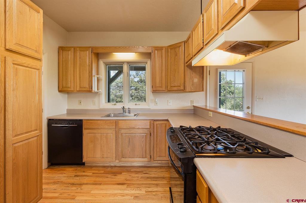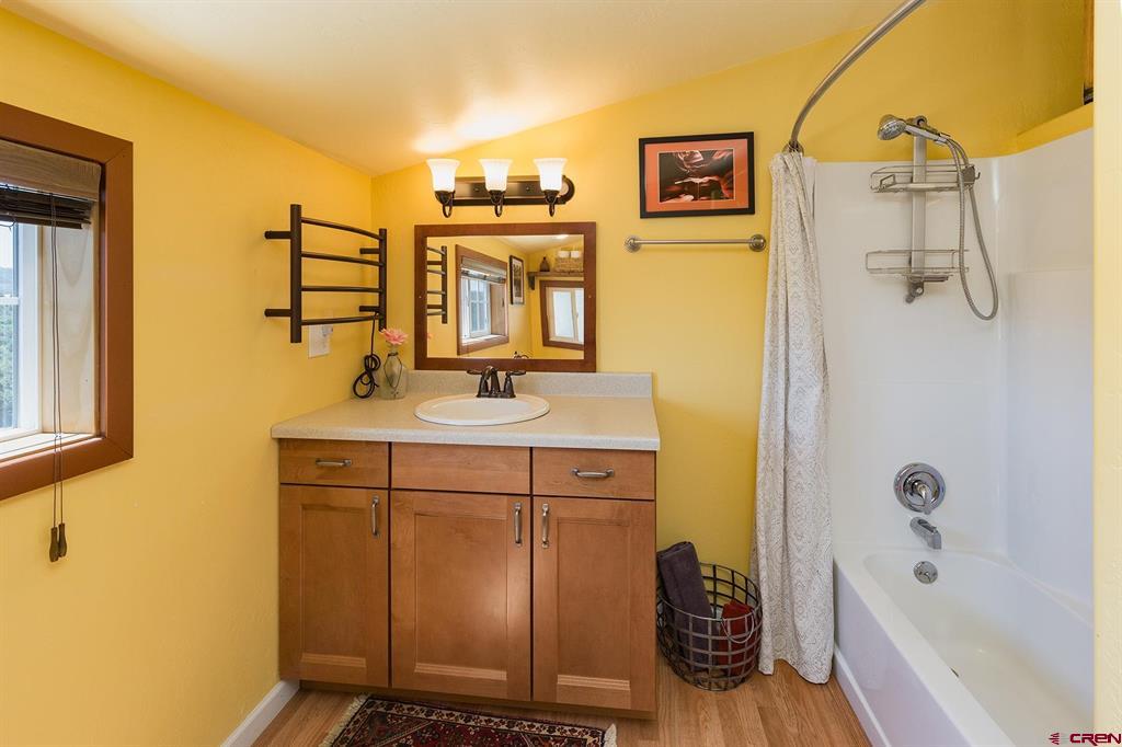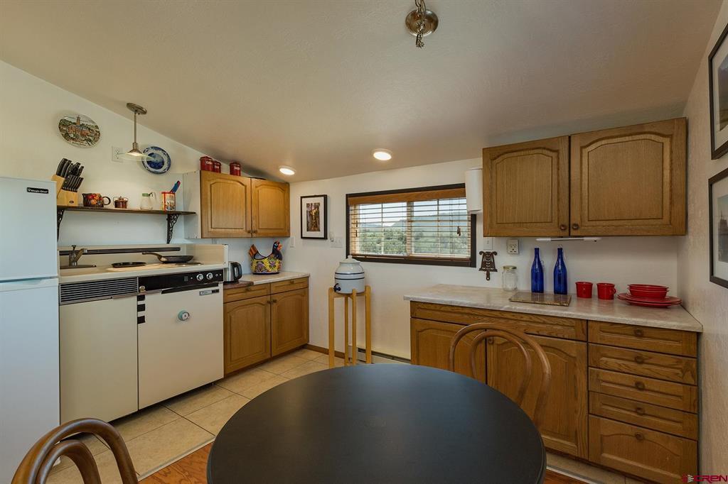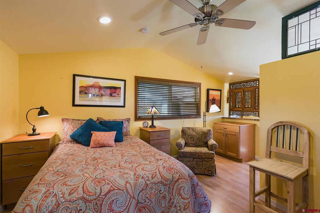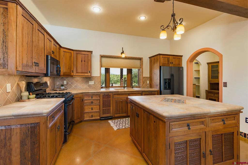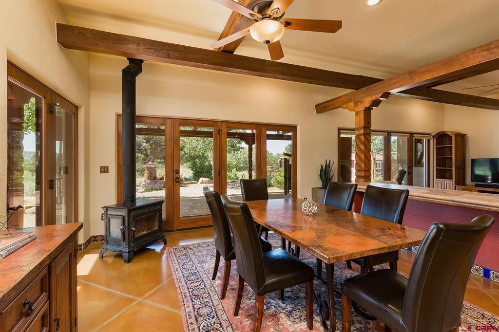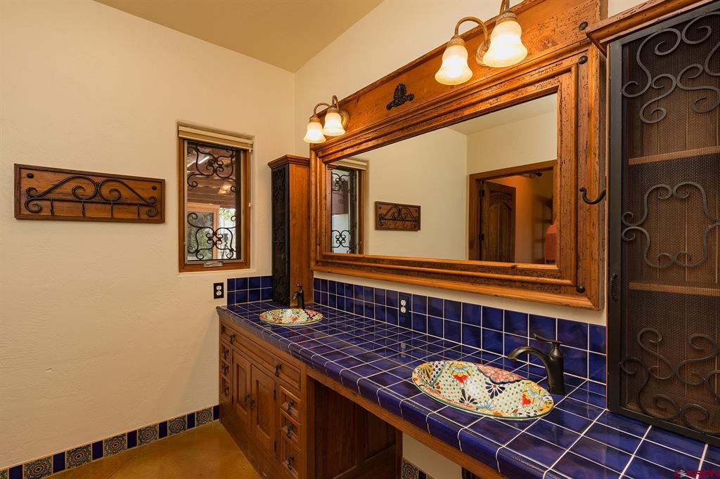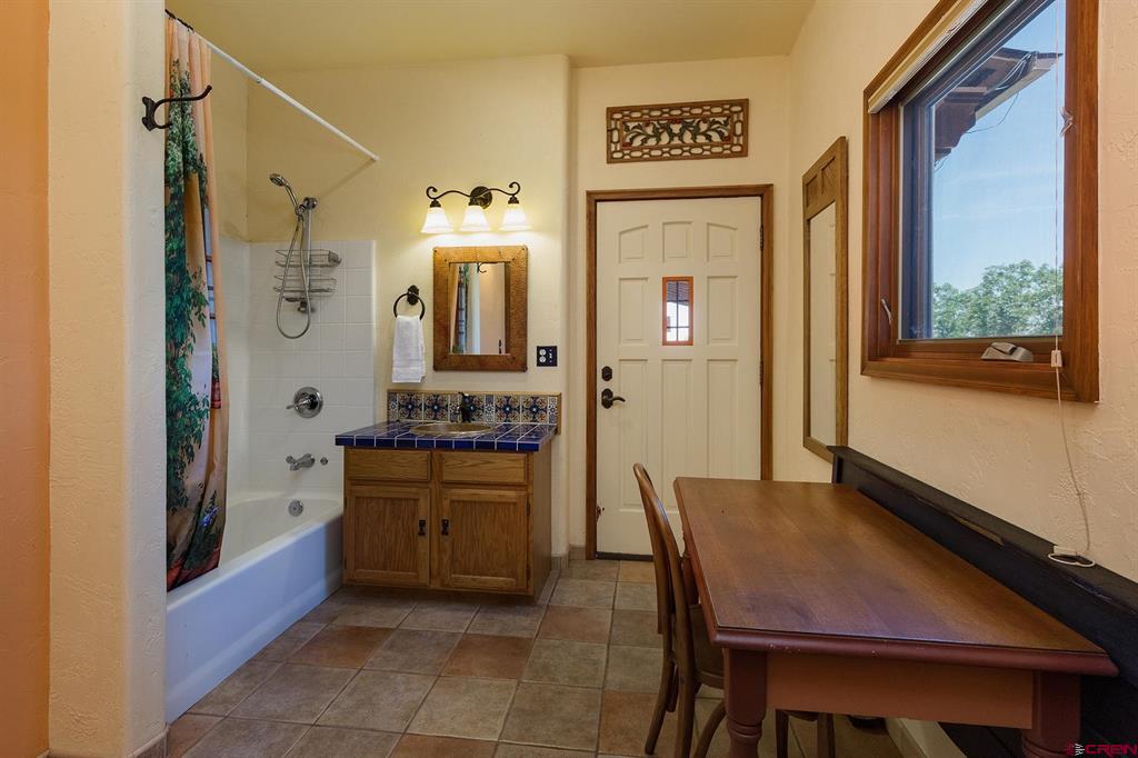 Welcome to this magnificent property which offers 2 single family homes nestled on 35 acres of picturesque land, just 11 miles (approx. 15 min) from downtown Durango, with clear views of the La Plata mountains. Located in a serene and tranquil setting, this property offers a perfect blend of natural beauty, privacy, and endless possibilities. As you approach the property, a private driveway leads you to the three bedroom guest house, the Santa Fe style main house, hay barn, chicken coop, and main barn/garage with studio above. The land boasts a diverse natural landscape with rolling hills, creating a harmonious balance between open spaces and intimate retreats. The property offers ample opportunities for outdoor enthusiasts and nature lovers, anything from horseback riding, gardening, workshop, or simply enjoying the quiet and expansive views. The enchanting Santa Fe style home effortlessly captures the essence of Southwestern architecture and design. The traditional flat roof has stairs leading to it so that it could be used to enjoy the wonderful sunsets and Alpen glow over the La Plata mountains. Upon entering the 2 bed 2.5 bath single level home, you’re welcomed into a spacious open floor plan, featuring an abundance of natural light. The living room includes floor to ceiling windows with doors out to the back patio, concrete floor throughout, and rustic elements. To the right of the living room are the double doors to the master suite including a large walk-in closet with attached laundry room, a spacious office with double doors, an ensuite bath, and a nook currently used as an office/workout/studio space, with double doors out to the patio. The left of the living room includes the kitchen and dining room area with a bar island separating the living room and kitchen area. The kitchen includes a tile island, tile countertops, and a walk-in pantry with built in cabinetry custom to the home. Off the Kitchen there’s a door to the hallway leading to the other bedroom with ensuite bathroom. Beyond that is the utility room/ shop room that leads you out to the covered car port. This home is ADA compliant, wheelchair assessable. The home includes a covered front and back patio, with a beautiful well-kept garden shed and fenced garden. Between the main house and the barn/garage is a center island fenced in garden, along with an adorable chicken coop. Attached to the coop is the barn/garage with a 12 ft. clearance (lets check on this, maybe higher?) and offers endless storage/multiple cars/toys/ranch equipment storage, including an extra room. The stairs in the barn will take you to a non-conforming studio that sits above the garage where a possible caretaker of the property could live or could be used as another storage/office/guest area/etc. Outside the large barn garage is a hay shed. Down the road towards the entrance to the property is the guest house, which was the original house on the property. The 2 story guest house is 2,015 sq ft, 3 bed 2 ½ bath, with a 2 car garage. The guest house offers a large covered partially wraparound deck for outdoor dining and enjoyment of the mountain views. The home has many possibilities, guest house, rental for additional income, or perfect for multi-family living. There is a large fenced-in yard and lots of natural landscaping. New septic system, 3 propane tanks (one for the main house, one for the guest house, one owned for firepit). HOA fee $50 please see associated docs for covenants. Square footage noted in the listing is for the main house only.