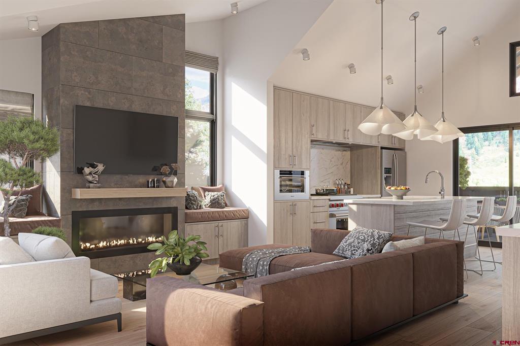 A harmonious fusion of contemporary and historic Telluride, Mears Station at Depot evokes the rich roots of its iconic train depot location while simultaneously embracing the comforts and style of mountain town modernity. Named after Otto Mears, the famous engineer responsible for many of the high mountain train routes surrounding Telluride, Mears Station pays homage to Telluride's history by integrating carefully curated natural wood, stone and bonderized steel inside and out. 4 bedrooms, top-floor living spaces and multi-function flex space are all expertly appointed. Designed by distinguished local architect, Kris Perpar, and built by the renowned Finbro Construction, these two townhomes are the final building in the West Depot block. Scheduled for completion in 2024.