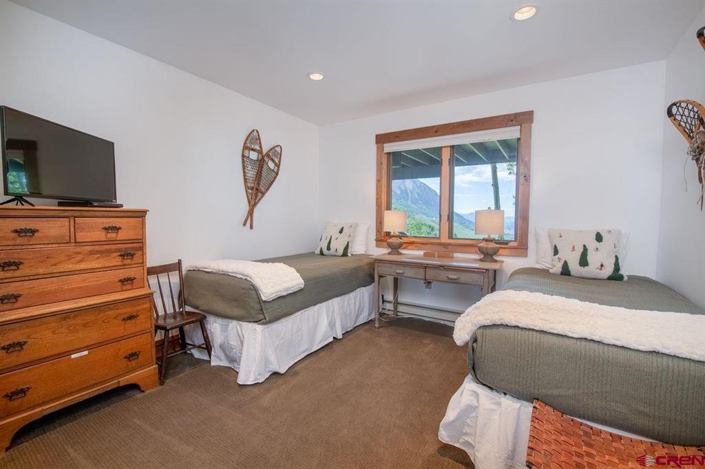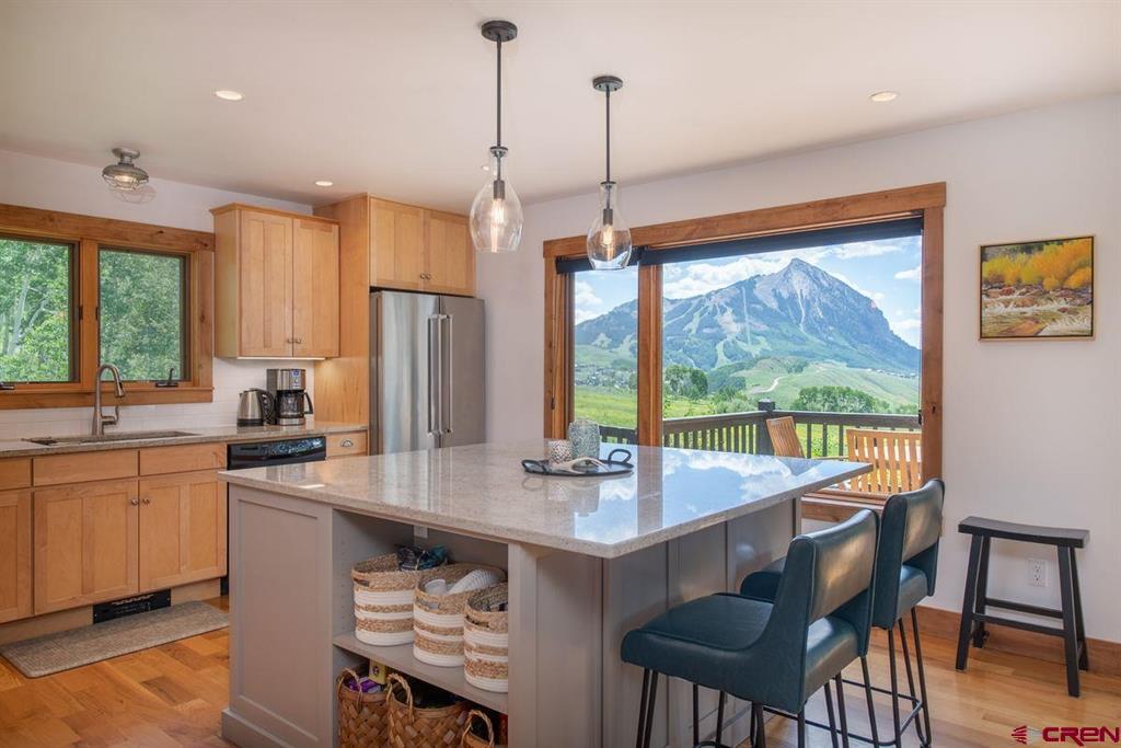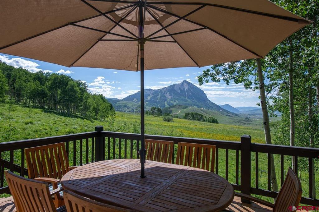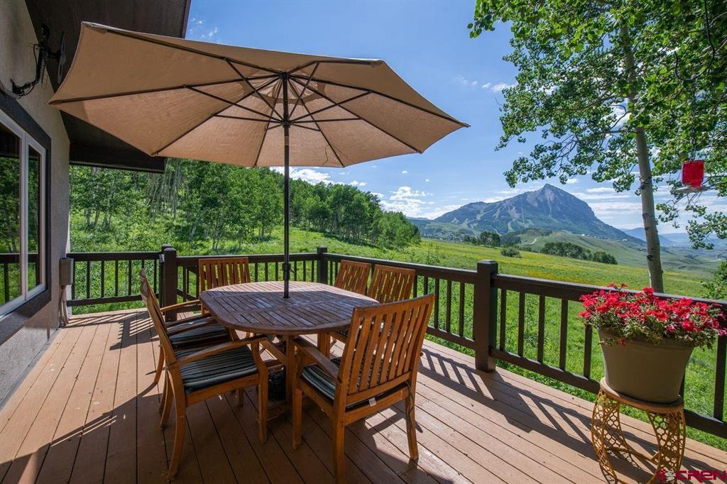 Situated under mature aspens bordering open ranch land, this beautiful four-bedroom home enjoys a secluded location with unparalleled views of Mt. Crested Butte and the valley. Relax with morning coffee or evening cocktails on the generous wraparound deck, and revel in the unbeatable views and fresh mountain air. The upper level consists of open living, dining and kitchen with white oak hardwood floors, large picture windows, and gas fireplace. The kitchen features granite counters, updated cabinets, stainless appliances, and large island. The primary bedroom suite is just off the dining room and enjoys a walk in closet and ensuite bath with double vanity and spacious tile shower. The lower level is home to a second bedroom suite, two additional guest bedrooms, guest bath, laundry room, and large entry. The attached two-car garage is also on this level offering plenty of storage for all your gear and equipment. Recent updates include exterior stucco, paint, metal surround, brick facade around entry, and roof. Located in the Meridian Lake Park subdivision, take advantage of nearby hiking and biking trails or in the winter head to the ski resort for world class skiing. Offered furnished, this attractive home is move-in ready to start living your best mountain life!