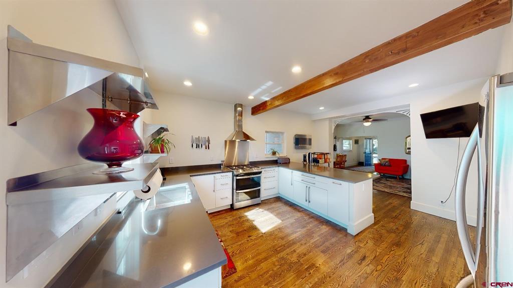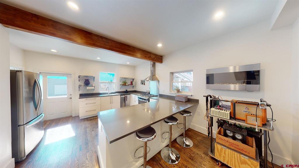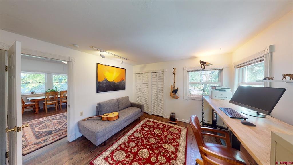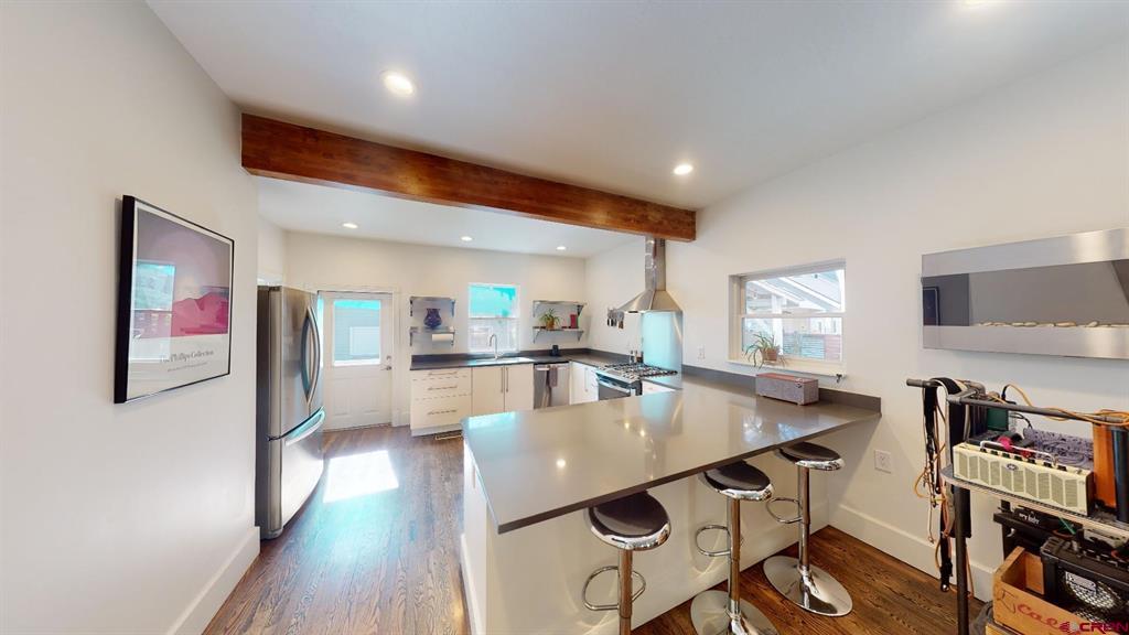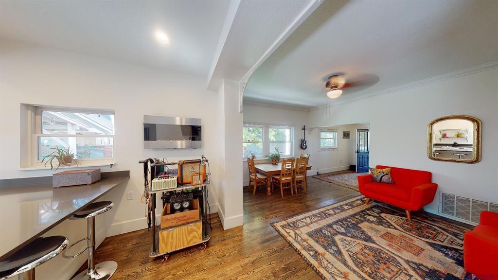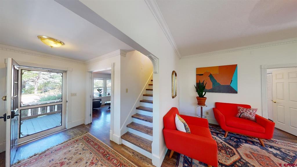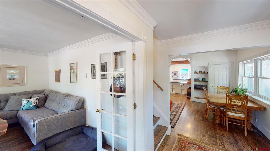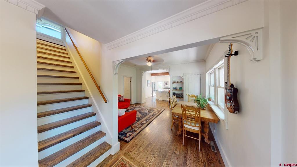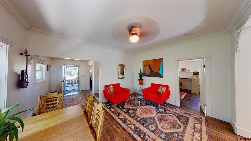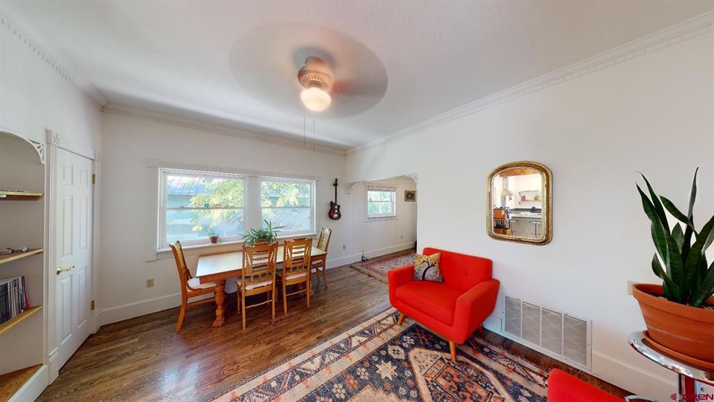 Welcome to the timeless allure of this exquisite 1880's Victorian home nestled within the coveted West Avenues of in-town Durango, Colorado. This charming residence seamlessly blends classic elegance with modern amenities, making it a true gem for those seeking an exceptional living experience. As you step through the front door, you'll be greeted by the warmth of hardwood floors that lead you through the main living areas. The abundance of natural light streaming through the large windows creates a welcoming and airy ambiance, accentuating the home's inviting atmosphere. Modern, remodeled kitchen, a culinary haven awaiting it's new chef, ample counter space, and an entertaining peninsula to chat with your guests. Whether you're an aspiring home cook or a seasoned chef, this kitchen is sure to inspire your culinary creations. A 2-car garage with alley access awaits at the rear of the property, presenting a unique opportunity for an additional dwelling unit (ADU). Plans and ADU permitting for this thoughtful expansion are included, providing flexibility for personal use, rental income, or accommodating extended family members. One of the highlights of this property is its convenient location—just a stone's throw away from the scenic river trail, allowing you to enjoy peaceful strolls and connect with nature effortlessly. Moreover, you'll find the vibrant downtown Durango within easy walking distance, offering an array of shops, restaurants, and cultural attractions for your entertainment and convenience. As you make your way outside, you'll discover a delightful covered porch, where you can unwind with a book or enjoy a cup of coffee while basking in the enchanting charm of the neighborhood. The backyard patio is the perfect spot for hosting gatherings or savoring quiet moments amidst the privacy of your own oasis. This Victorian beauty truly embodies the best of both worlds—preserving the allure of the past while embracing the comforts of contemporary living. Whether you're an admirer of architectural history or a connoisseur of modern amenities, this home seamlessly satisfies all your desires. Don't miss the opportunity to make this enchanting piece of Durango's heritage your own. Immerse yourself in the timeless allure, embrace the warmth, and experience the magic of this distinguished Victorian abode. Welcome home.