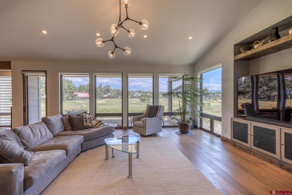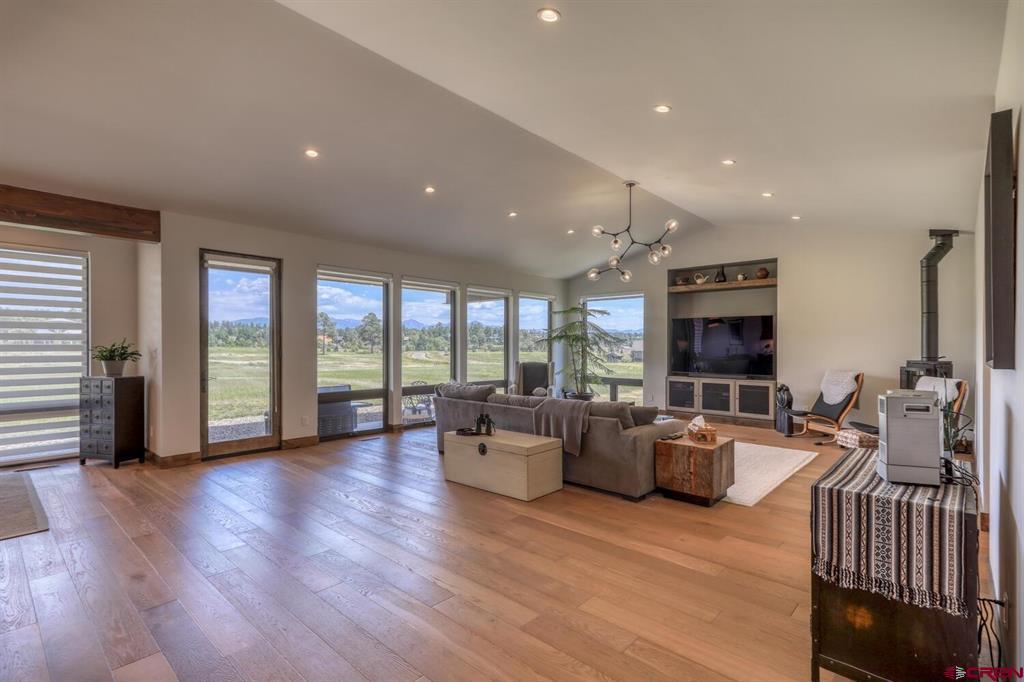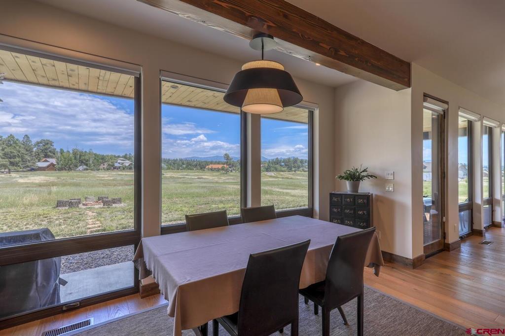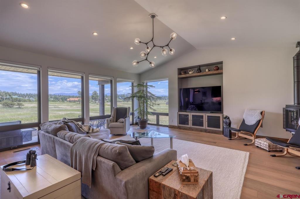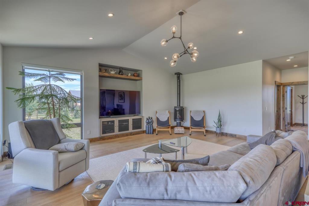 Here is the home you have been waiting for! This stunning mountain home is situated on 1.67 acres with picturesque mountain views. The home is one-level with a modern rustic design, offering the perfect blend of contemporary aesthetics and natural charm. With 3 bedrooms, 2 1/2 baths, an office or sitting room (could also be used as a 4th bedroom) and a two-car garage, this home offers convenience and luxury. As you step inside, you are greeted by floor-to-ceiling windows that allow an abundance of natural light to flood the great room. The breathtaking views of the surrounding mountains can be enjoyed from every window of the great room, creating a serene and tranquil atmosphere. The open floor plan seamlessly connects the living room, dining area, and kitchen, making it ideal for entertaining guests and creating memorable moments. The high-quality craftsmanship is evident throughout the home, with attention to detail in every aspect. The kitchen is a chef's dream, featuring stainless steel appliances, a mix of granite and quartz countertops, and tons storage space in the black walnut cabinets. The island provides a perfect spot for casual dining or gathering with friends and family. The dining area, with its panoramic views, offers a serene setting for enjoying meals and creating lasting memories. The primary bedroom is a sanctuary of relaxation, with its own private en-suite bathroom. The spacious layout provides a comfortable retreat, while the large windows offer beautiful views to wake up to every morning. Two additional bedrooms provide a space for guests that is private on the opposite side of the home away from the primary bedroom. The outdoor space is equally as impressive, with a spacious covered patio that overlooks the sprawling landscape. Whether you are enjoying a morning coffee or hosting a summer barbecue, this area is perfect for outdoor living and entertaining. This mountain home is not just a house; it is a lifestyle. The combination of the gorgeous surroundings, modern rustic design, and high-quality craftsmanship creates a truly extraordinary living experience. This home is in The Ranch Community and is right across the street from almost 170 acres of open space in which only Ranch Community members may use! Don't miss out on the opportunity to make this stunning property your own. Make an appointment today to schedule a private viewing and immerse yourself in the beauty of mountain living.
