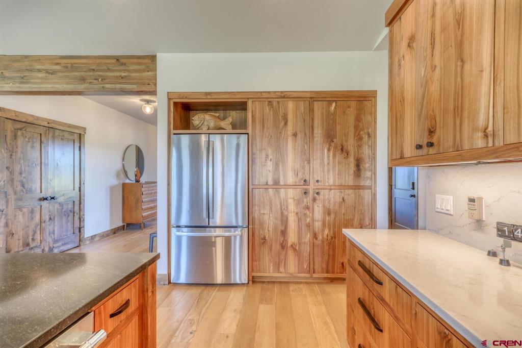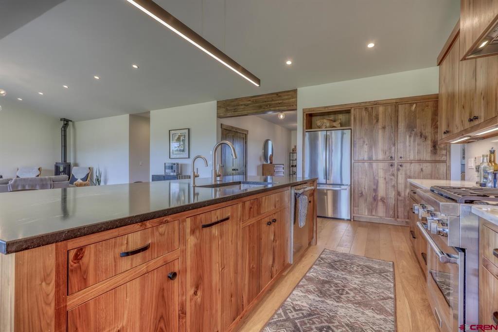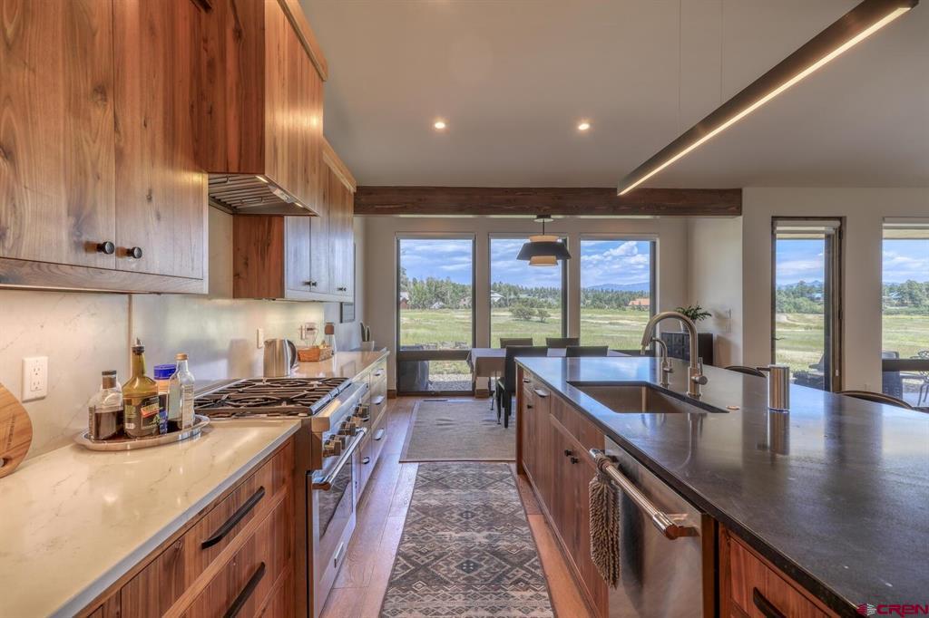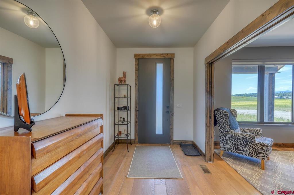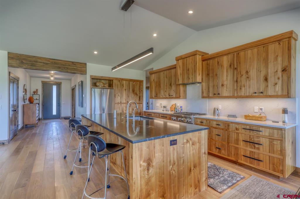Here is the home you have been waiting for! This stunning mountain home is situated on 1.67 acres with picturesque mountain views. The home is one-level with a modern rustic design, offering the perfect blend of contemporary aesthetics and natural charm. With 3 bedrooms, 2 1/2 baths, an office or sitting room (could also be used as a 4th bedroom) and a two-car garage, this home offers convenience and luxury. As you step inside, you are greeted by floor-to-ceiling windows that allow an abundance of natural light to flood the great room. The breathtaking views of the surrounding mountains can be enjoyed from every window of the great room, creating a serene and tranquil atmosphere. The open floor plan seamlessly connects the living room, dining area, and kitchen, making it ideal for entertaining guests and creating memorable moments. The high-quality craftsmanship is evident throughout the home, with attention to detail in every aspect. The kitchen is a chef's dream, featuring stainless steel appliances, a mix of granite and quartz countertops, and tons storage space in the black walnut cabinets. The island provides a perfect spot for casual dining or gathering with friends and family. The dining area, with its panoramic views, offers a serene setting for enjoying meals and creating lasting memories. The primary bedroom is a sanctuary of relaxation, with its own private en-suite bathroom. The spacious layout provides a comfortable retreat, while the large windows offer beautiful views to wake up to every morning. Two additional bedrooms provide a space for guests that is private on the opposite side of the home away from the primary bedroom. The outdoor space is equally as impressive, with a spacious covered patio that overlooks the sprawling landscape. Whether you are enjoying a morning coffee or hosting a summer barbecue, this area is perfect for outdoor living and entertaining. This mountain home is not just a house; it is a lifestyle. The combination of the gorgeous surroundings, modern rustic design, and high-quality craftsmanship creates a truly extraordinary living experience. This home is in The Ranch Community and is right across the street from almost 170 acres of open space in which only Ranch Community members may use! Don't miss out on the opportunity to make this stunning property your own. Make an appointment today to schedule a private viewing and immerse yourself in the beauty of mountain living.