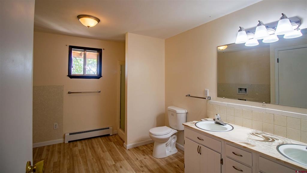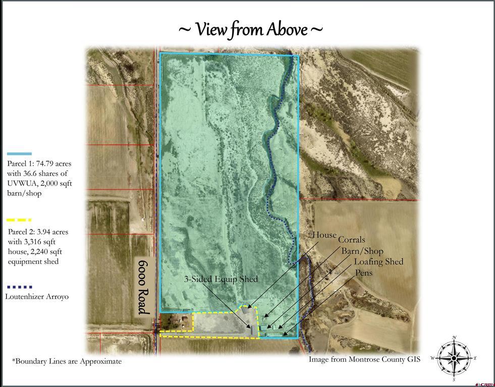 Come home to Country Living! Two deeded, sub-divided parcels totaling 78.73 acres: first parcel contains a 3,316 sqft (5BD/3BA) home on 3.94 acres with picturesque San Juan views; the second parcel contains 74.79 acres with 36.6 shares of UVWUA. The house has a walk-out basement, and each floor is laid out with full kitchen, dining area, living room, bedrooms, and bathroom. Ideal arrangement for a mother-in-law floor or potential renter. Home also boasts new carpet and flooring. Several outbuildings that include: 2,240 sqft, three-sided, equipment shed; as well as 2,000 sqft shop with stables and metal-fencing. A great opportunity for horses and livestock with corral, concrete feed bunks, loafing shed, concrete pens, and two frost-free hydrants. Property has no covenants or HOA. The whole property blends freedom, solitude, and panoramic views with farm, ranching, and equestrian lifestyles. Farm ground has some underground piping from headgates, but it has not been cultivated for several years.