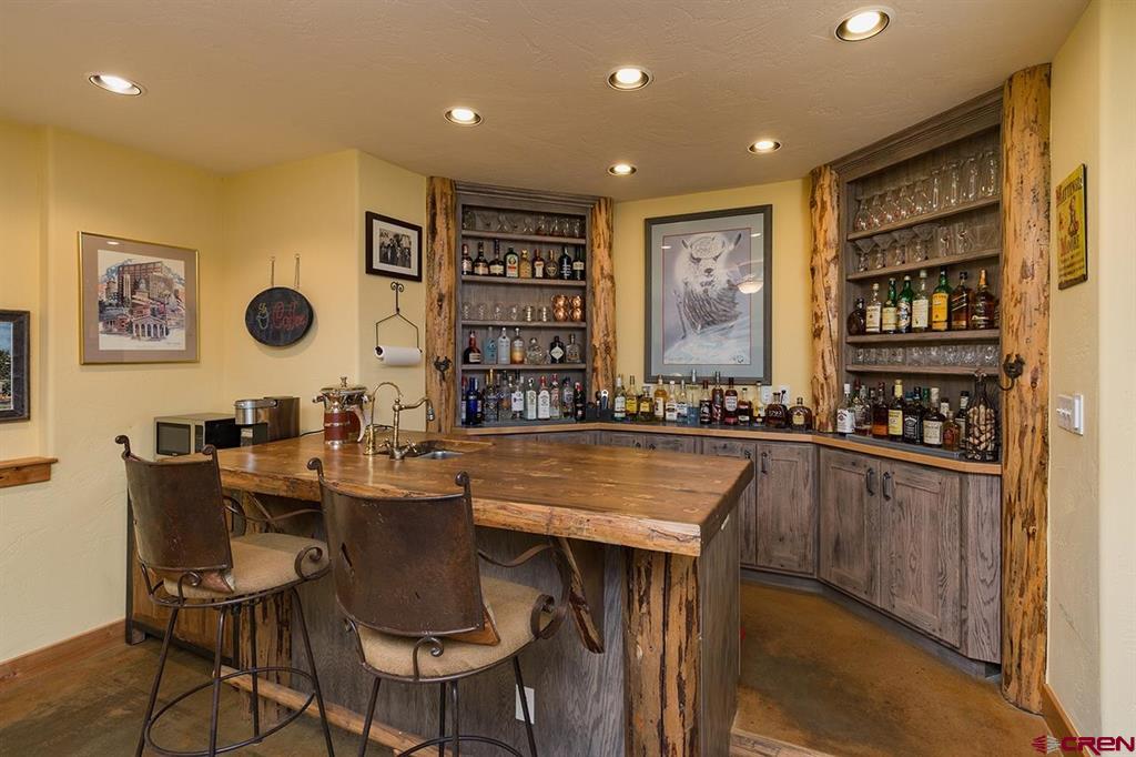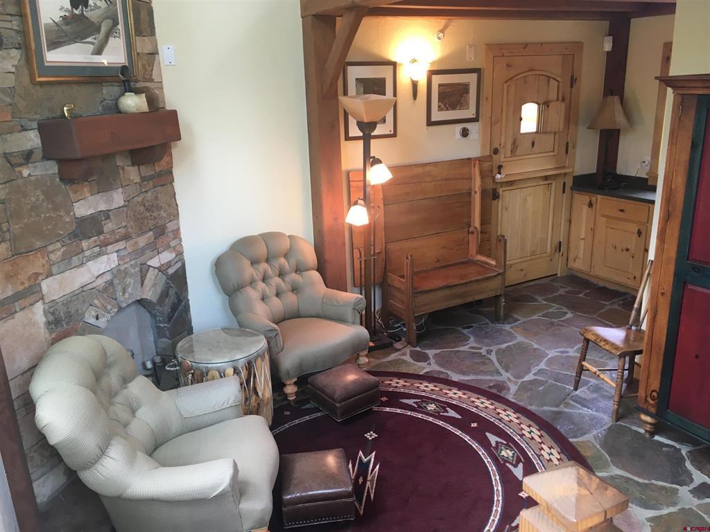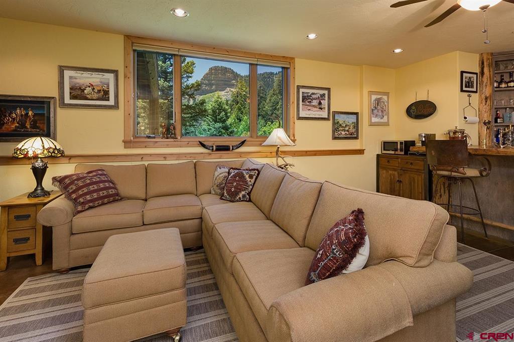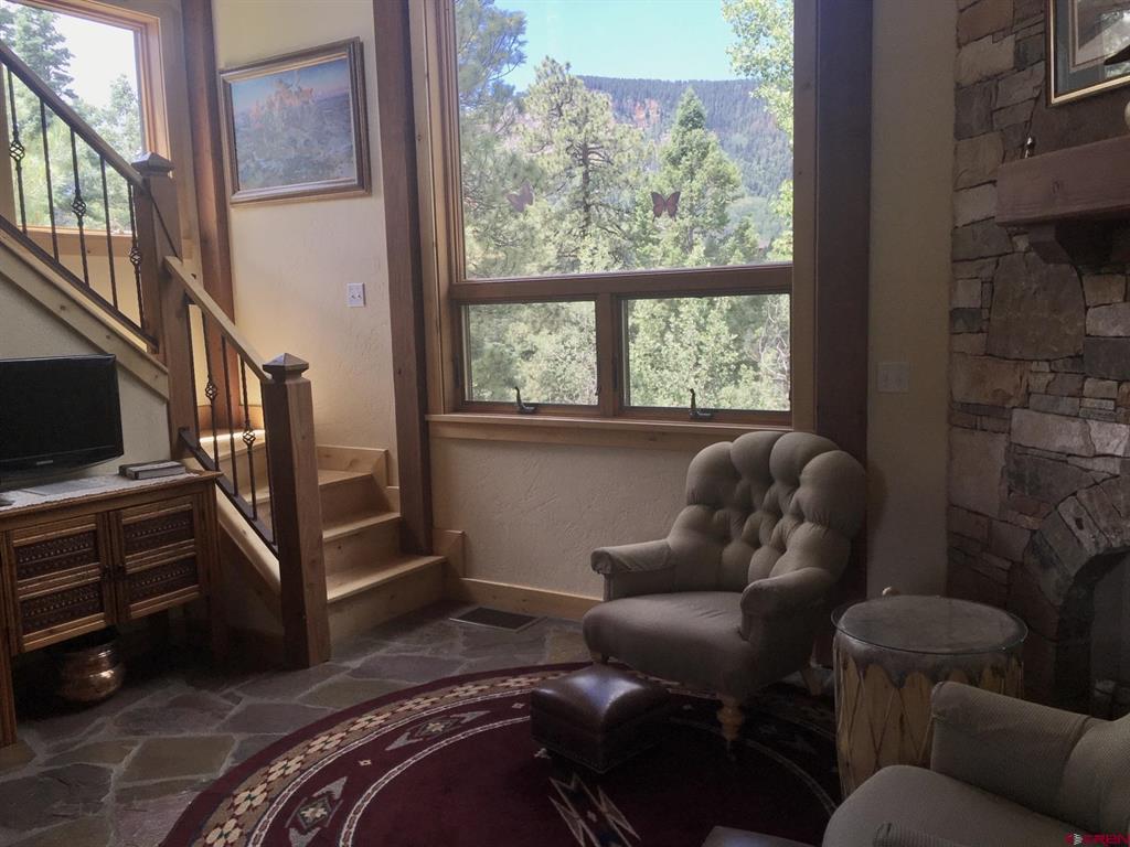 ~~~ A spectacular property in the ultimate idyllic mountain setting! This quintessential Engelmann Spruce custom log home is tucked amongst pine and aspen groves with dramatic views of the Hermosa Cliffs, the Needles 14,000 foot peaks and backs directly to thousands of acres of the San Juan National Forest, literally right out the back door. What more could you ask for? …. Except to be less than two miles from the ski resort, with privacy and serenity unrivaled in the area! ~~~ The homes’ classic elegance is deliberately designed to reflect traditional log style with burnished plank tile, and stone floors, wood burning fireplaces, large split log sills, handsome tile countertops and fixtures, plus a refurbished 1900’s parlor stove for heat and vintage character! Old world craftsmanship is evident in the exquisite dry-stack masonry with the tower-like curved exterior walls and in the stunning stone floor-to-ceiling Rumford fireplace in the great room, designed to reflect the Hermosa Cliffs formation to the West. The level of care taken with design and construction of this log gem is apparent both in the aesthetics and behind the scenes. ~~~ The vaulted great room, with huge vertical windows, captures the magnificence of Castle Rock and is open to the formal dining area and the kitchen, with a cozy breakfast nook looking east at the fabulous view of the Needles Mountains. Wake up to another amazing vista from the main floor Primary suite, hang out on the window seat or in the jetted tub with its own picture window. The upper level is a spacious loft bedroom with its own bath and yet another panorama. Then everyone’s favorite… the charming stone guest cottage complete with kitchenette and full bath…which is attached by a unique covered porch featuring an outdoor fireplace and east/west views! The walk-out lower level hosts the family room, complete with a period bar, plus a large multipurpose bonus room potentially an extra guest space, work-out, game, or media room with access to the outdoor patio and covered hot tub. There are just so many sweet spots to curl up with a book or just stare at the views it is hard to decide. ~~~ The attention to detail is not just on the surface, it carries through into the systems running the home. The in-floor heat, with a new 2022 boiler, has multiple zones for fine tuning as needed. Plus a new state-of-the-art remotely controlled security system with nine cameras, plus automated lighting and thermostats. Not to mention the backup systems: for heat with the wood burning parlor stove and gas started fireplaces, for water with a 1500 gallon water cistern in the utility room serviced by a good producing well, and for power with a propane fueled generator. Note that electricity is underground beneath the Forest Service and subdivision access road. There is also ice melt, water detection and fire suppression systems in the home along with lightening rods. Nothing has been overlooked for comfort and functionality! ~~~ Columbine Subdivision POA annual fee is variable and covers the Trash dumpster out front, Road maintenance and Snow removal which is based on linear distance of road (and for snow includes driveway). There are some other variable or optional fees. Short time rentals are not permitted in subdivision. ~~~ All that remains is to enjoy both unparalleled privacy and convenience! This little-known neighborhood, with only a few homes and landlocked by Forest Service, is only ¾ mile off the Hwy 550 corridor but one of the rare locations in the north county where you can’t see or hear the highway. ~~~ Unlock this hidden secret, with its private access and views everywhere you look!!!