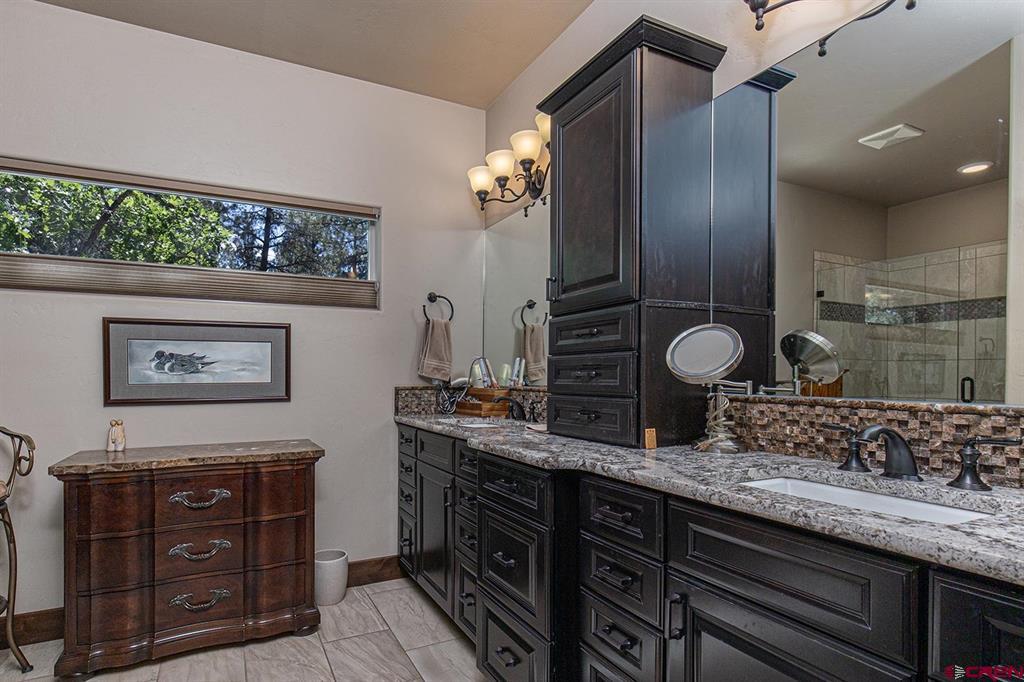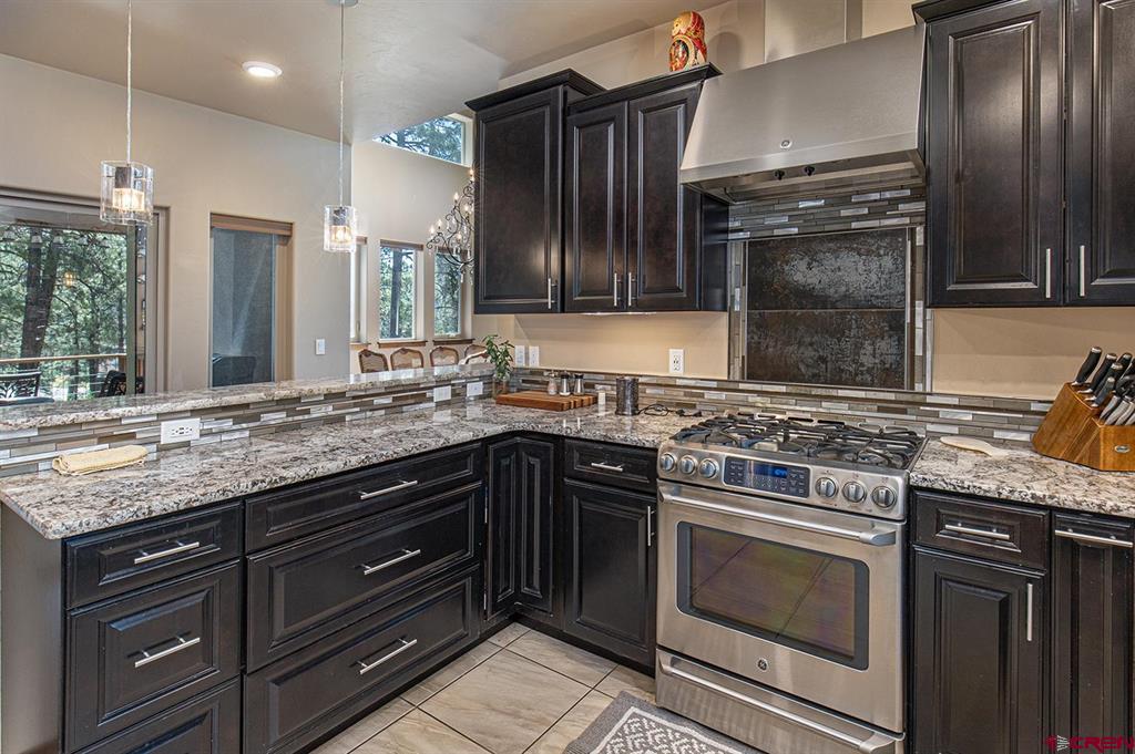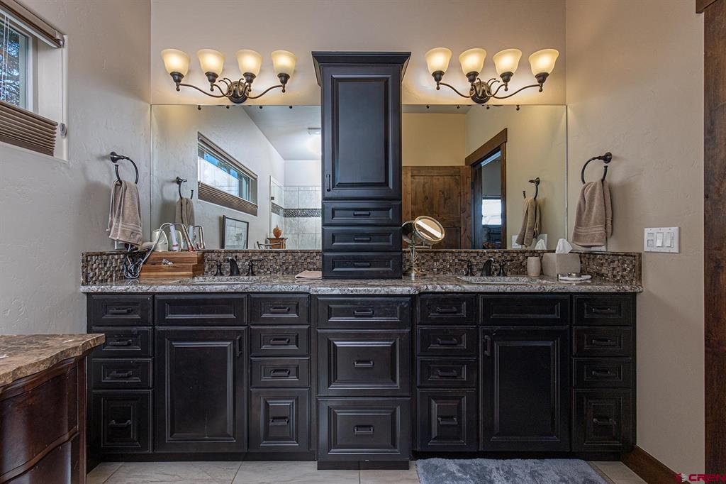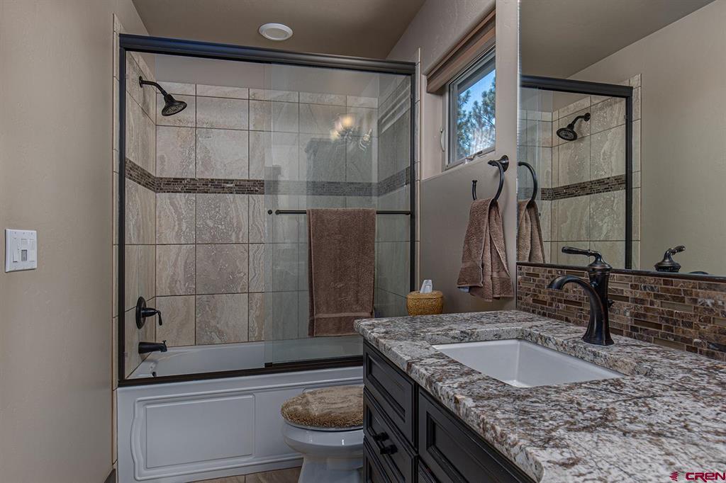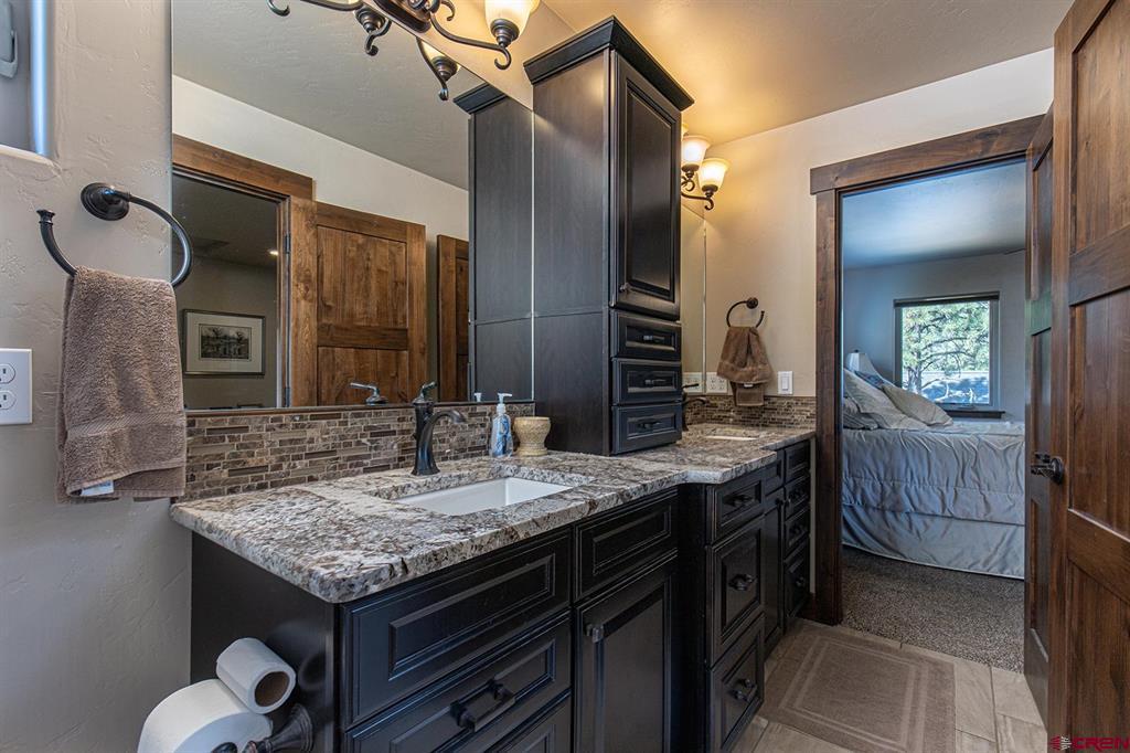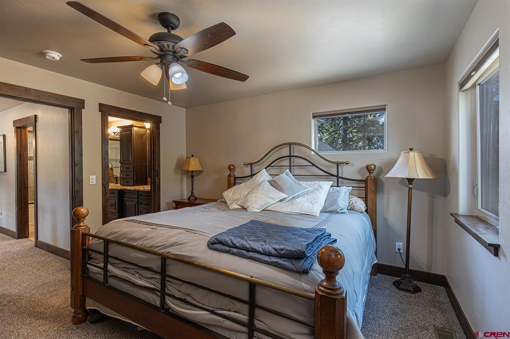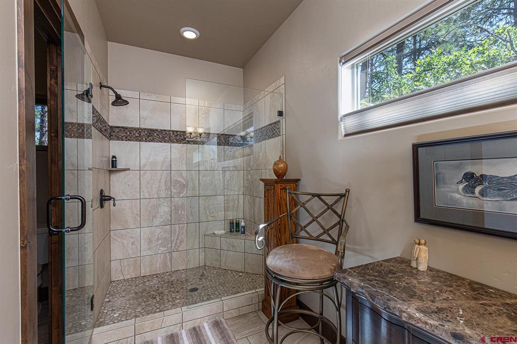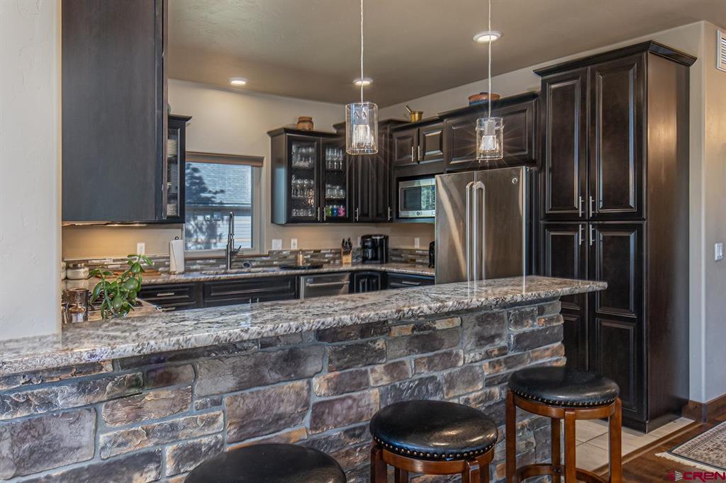Located in the desirable Edgemont Highlands neighborhood, this meticulously maintained 4-bedroom home built by Tailor Made Custom Homes offers the quintessential Colorado experience from the moment you step inside with an ideal floor plan and luxury finishes. Attention to detail is apparent with the beautiful engineered wood floors leading you into the living and dining areas with vaulted ceilings and a wall of windows bringing in plentiful natural light while showcasing the surrounding pines, and floor-to-ceiling stone fireplace as the great room's focal point for large gatherings or a cozy evening at home. The gourmet kitchen features custom designed cabinets with glass insets, granite countertops, breakfast bar with a brick accent wall, farm sink, pantry with pullout drawers, 6-burner GE Cafe gas range with griddle, GE range hood, refrigerator and microwave, and a Maytag dishwasher. Entertaining is easy with sliding doors leading you to an exterior courtyard space, sheltered from the elements with views of the surrounding pines. The functional floor plan also offers a main level primary suite, an additional half bath with glass vessel sink, and mudroom/laundry room with built-in storage leading you to the oversized 2-car garage, perfect for all of your gear. The second level of the home hosts two bedrooms with a full bath in between, as well as a large 4th bedroom which easily functions as bonus/game room, home office, or guest quarters with generous closet and storage space. Other features of the home include air conditioning, tankless on-demand water heater, high efficiency furnace, an oversized 2-car garage, and a large concrete driveway with extra parking spot on the side of the house. Encompassing over 500 acres, of which almost 200 acres is devoted to open space, the Edgemont Highlands community is located just five miles from downtown Durango and features private access to over 1.5 miles of Florida River hiking and blue-ribbon fishing, a beautiful Community Center just a short walk away, and over ten miles of private hiking and walking trails, including the Pioneer Trail on the far western end, providing bicycle friendly direct access to the National Forest.